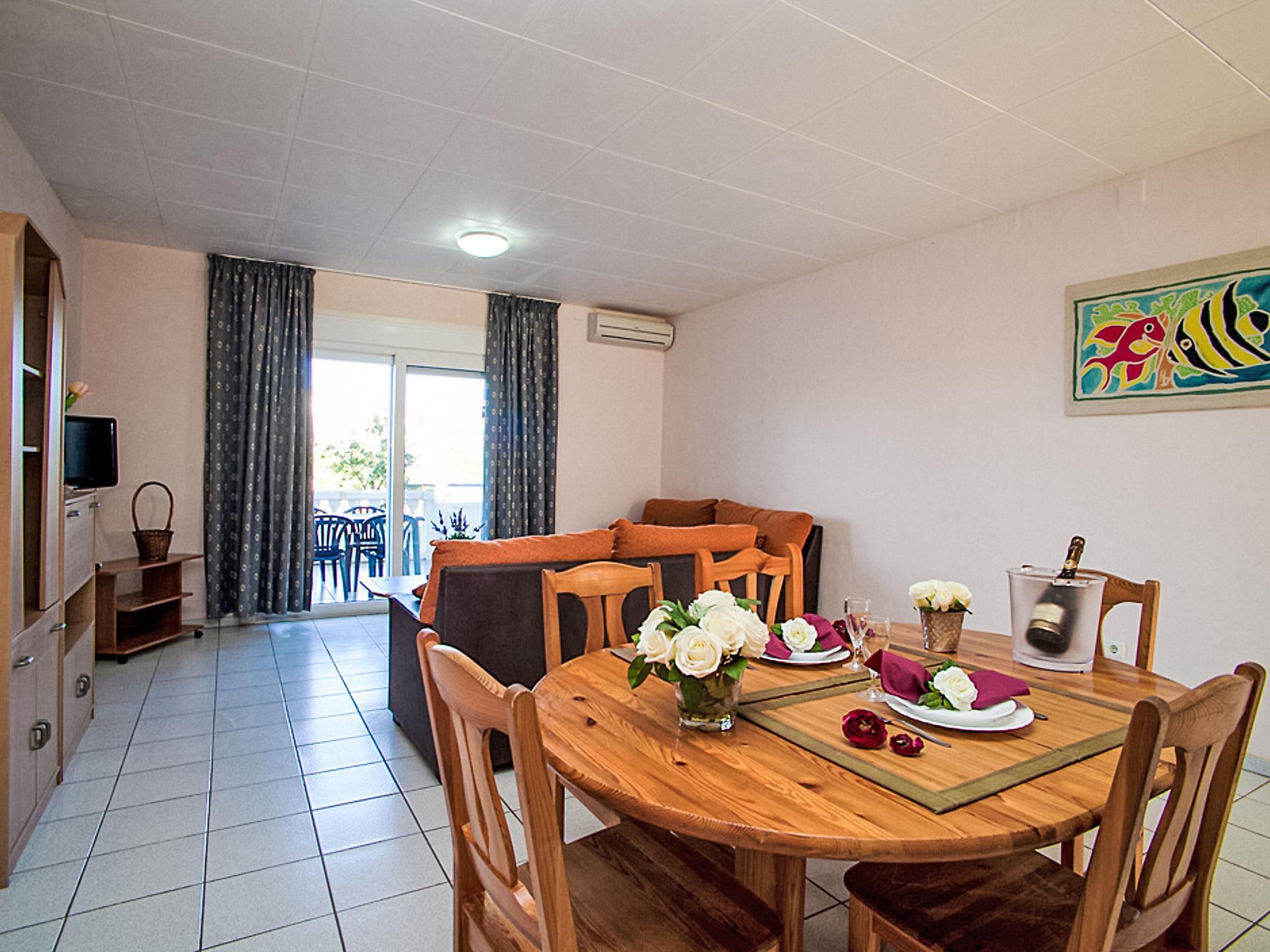 Riumar 10 km from Deltebre: Child friendly, beautiful apartment block "Royal Delta", 2 storeys, surrounded by fields. 20 apartments in the residence. In a quiet, sunny position, 50 m from the sea, 50 m from the beach, direct access to the beach. For shared use: beautiful garden with lawn, swimming pool angular (20 x 10 m, seasonal availability: 01.Jan. - 31.Dec.) with internal staircase. Children's pool, outdoor shower, tennis, barbecue. In the house: WiFi. Parking on the premises. Shop, restaurant 100 m, bus stop "Riumar" 1 km. Please note: baby equipment on request. Groups of teenagers on request only. The photograph shows a typical example.