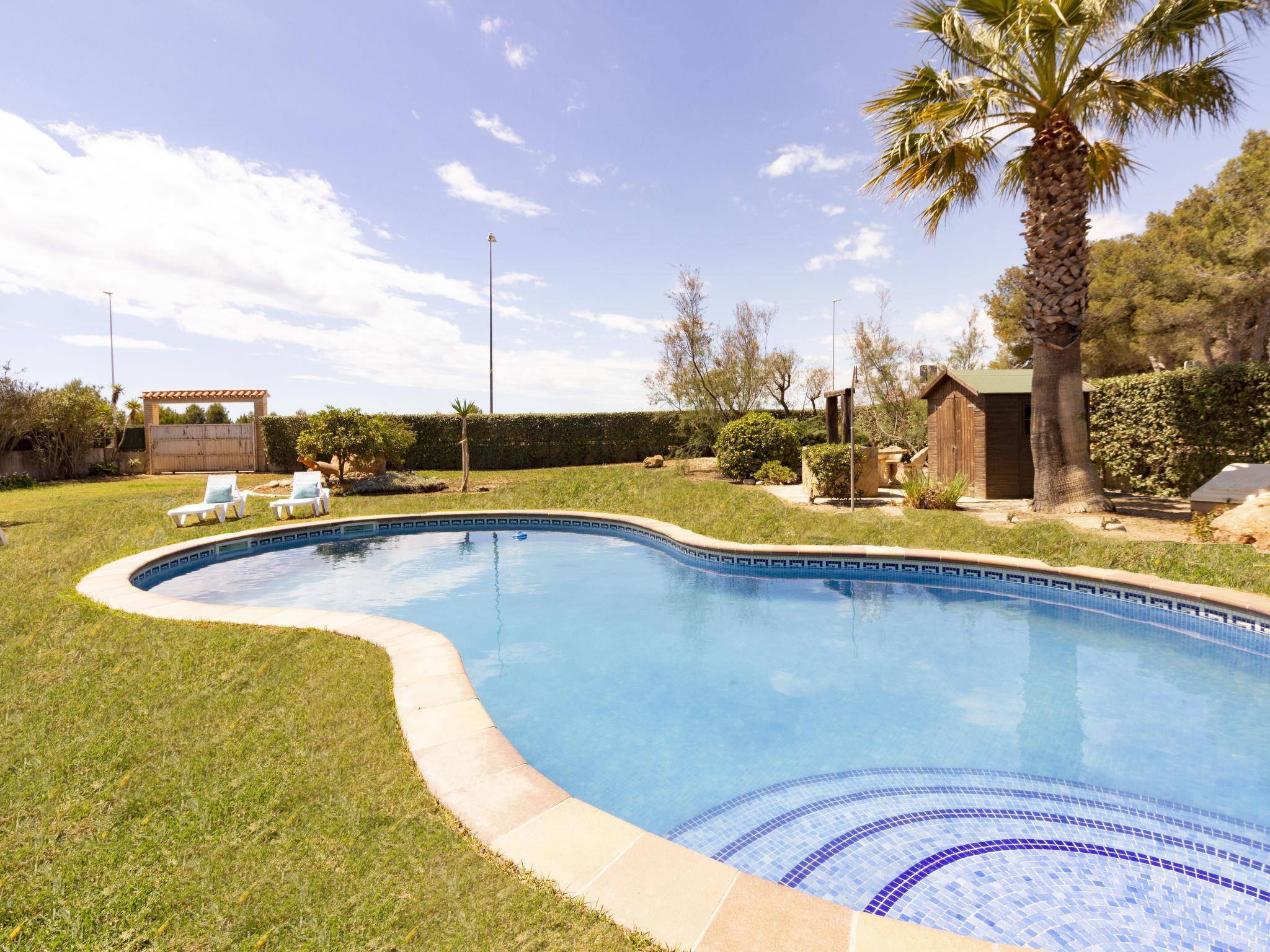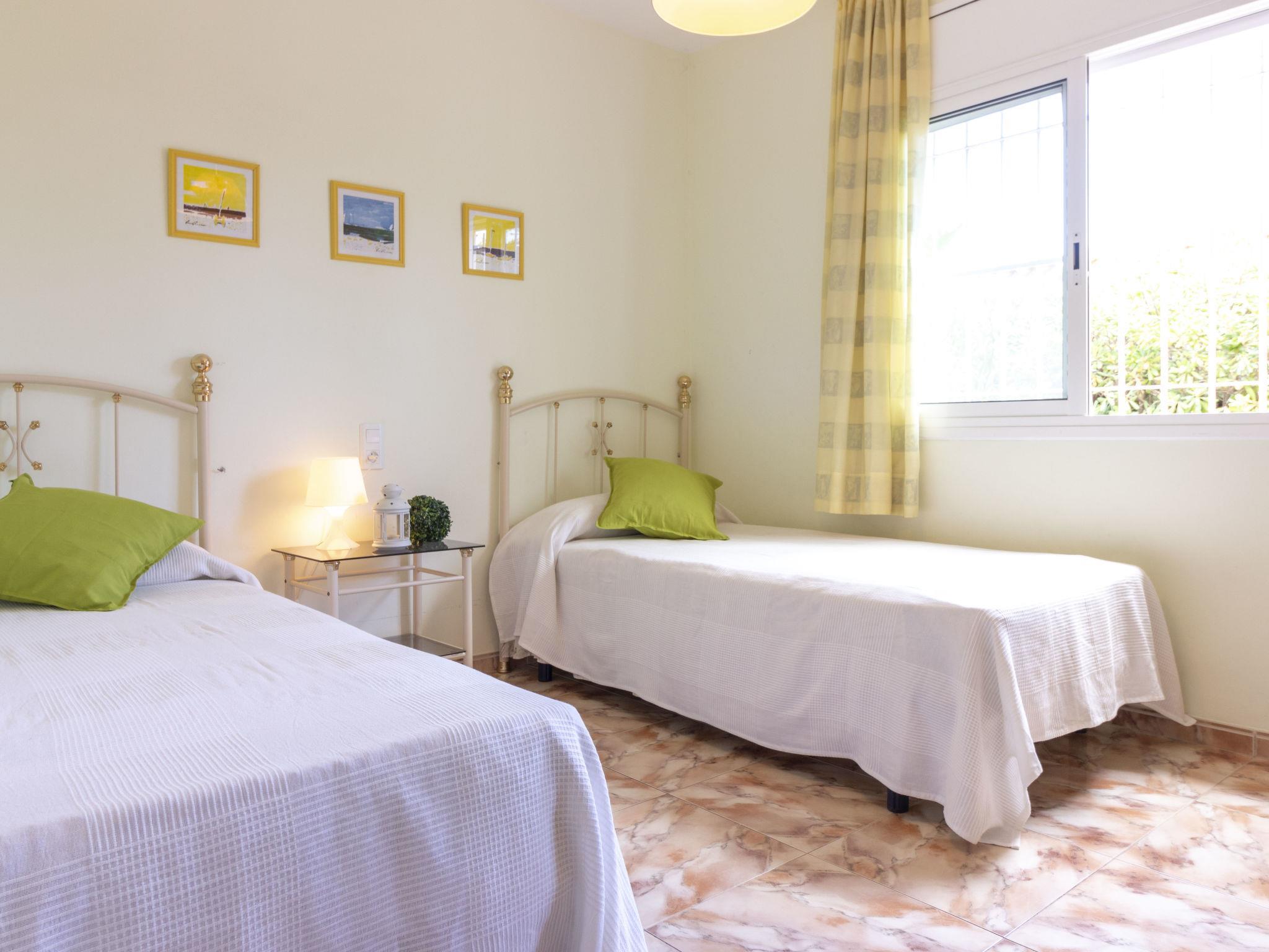 "Jardi", 4-room house 140 m2, on the upper ground floor. Spacious, comfortable and cosy furnishings: living/dining room with satellite TV. 2 rooms, each room with 2 beds. 2 rooms, each room with 1 french bed. Kitchen (4 hot plates, oven, dishwasher, microwave, freezer) with dining table. Bath/bidet/WC, 2 showers/WC. Air-conditioning, forced-air heating. Terrace 50 m2, large garden, lawn. Terrace furniture, barbecue, deck chairs, covered balcony. View of the swimming pool and the garden. Facilities: washing machine, safe. Internet (WiFi, free). Parking (fenced 2 cars). Suitable for families. Maximum 2 pets/ dogs allowed. HUTTE001095 // Reg. Nr.: ESFCTU000043019000117897000000000000000OHUTTE-0010958