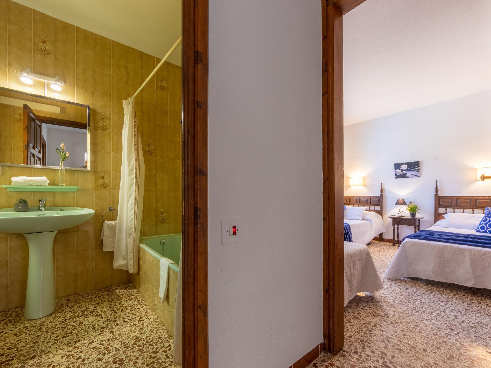 "Ibicenca", 4-room house 90 m2. Comfortable and cosy furnishings: living/dining room with open-hearth fireplace (only for decoration), dining table, digital TV and international TV channels. Exit to the patio. 1 double bedroom with 1 bed (90 cm, length 190 cm), 1 french bed (135 cm, length 190 cm), hip bath/WC, air conditioning and forced-air heating. 1 double bedroom with 3 beds (90 cm, length 190 cm). 1 double bedroom with 2 beds (90 cm, length 190 cm). Kitchen (4 hot plates, oven, dishwasher, toaster, microwave, freezer, electric coffee machine). Hip bath/WC. Air-conditioning, forced-air heating. Heating not available in all rooms. Patio. Terrace furniture, barbecue, deck chairs. Facilities: washing machine, iron, mosquito net. Internet (WiFi, free). Parking at the house. Suitable for families. Maximum 2 pets/ dogs allowed. HUTTE000347 // Reg. Nr.: ESFCTU0000430190000913020000000000000000HUTTE-0003471