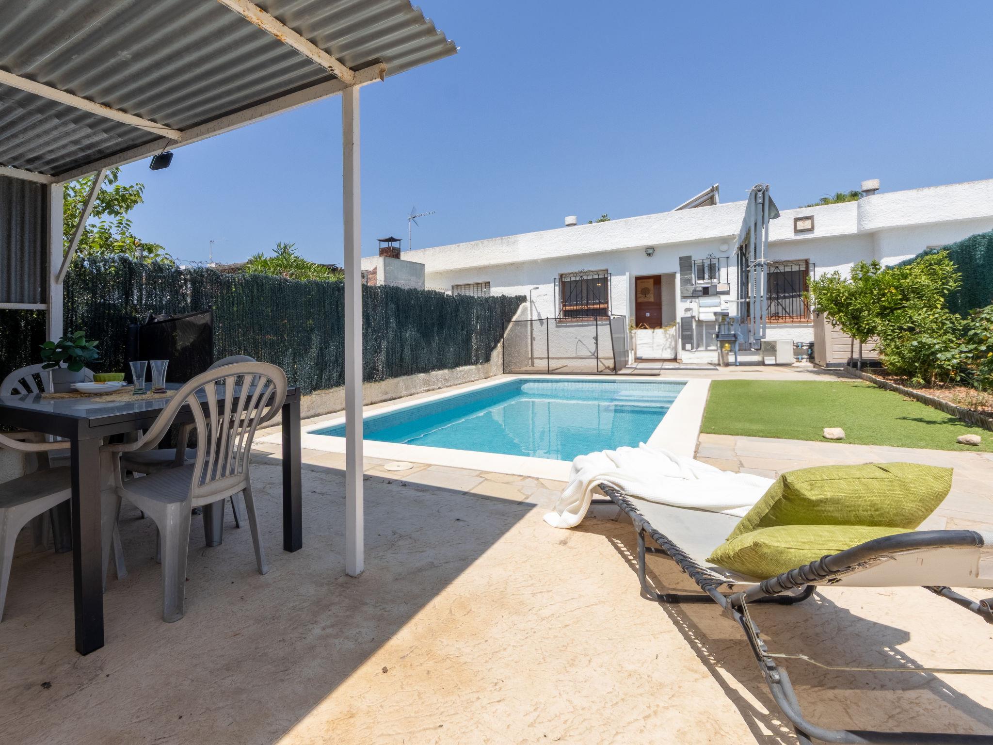 Riumar 10 km from Deltebre: Cosy, comfortable house "Nono". In a quiet, sunny position, 300 m from the sea, 300 m from the beach. Private: property (fenced), swimming pool angular, fenced (3 x 7 m, depth 160 cm, seasonal availability: 01.Jan. - 31.Dec.). Pergola, terrace, garden furniture. In the house: WiFi, air conditioning, washing machine. Public parking on the road. Supermarket 500 m, restaurant, bar 300 m, bakery 700 m, bus stop "Riumar" 650 m, railway station "Aldea- Amposta" 25 km, sandy beach "Riumar" 300 m. Sports harbour 1 km. Nearby attractions: Parque natural Delta del Ebro 2 km, Tortosa 35 km, Playa el Trabucador 29 km, Barcelona 190 km, Port Aventura 70 km. Hiking paths: Parque natural Puerto Tortosa Beseit 52 km, GR 92 15 km. Please note: car recommended. Suitable for families.