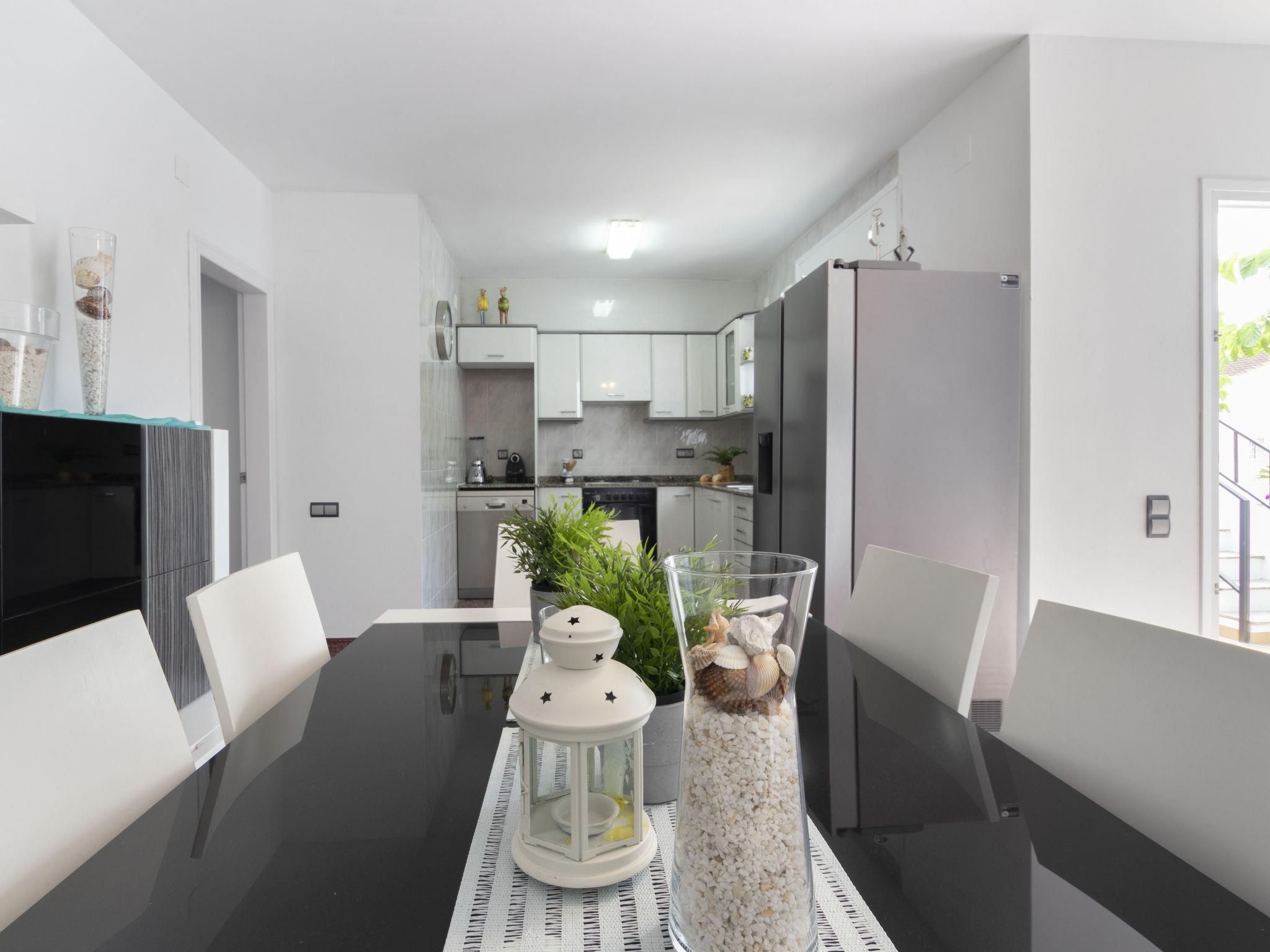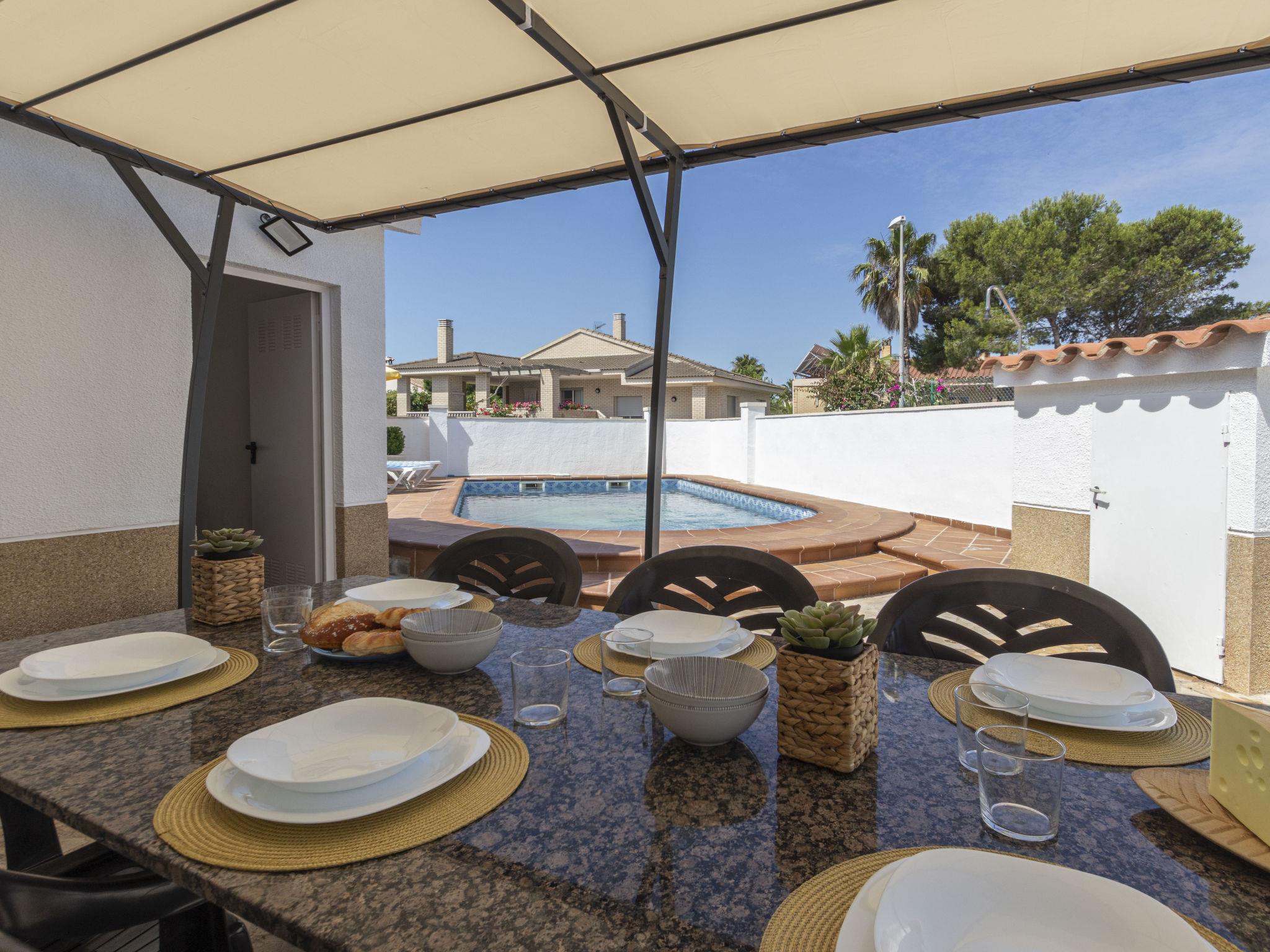 Riumar 11 km from Deltebre: Large, cosy, comfortable house "Estrella II", renovated in 2020. In a quiet, sunny position, excellent location: right in the centre but still quiet, 100 m from the sea, 100 m from the beach. Private: property (fenced), swimming pool angular (8 x 4 m, depth 170 cm, seasonal availability: 01.Apr. - 30.Nov.) with internal staircase. Outdoor shower, hot tub, patio, pergola, garden furniture, barbecue. In the house: WiFi, air conditioning, washing machine. Parking (for 2 cars) at the house. Shop, supermarket, restaurant, bar, bakery 100 m, 5 minute walk to the centre, bus stop "Riumar" 300 m, railway station "Aldea- Amposta" 25 km, sandy beach "Riumar" 100 m. Sports harbour 1 km, golf course (18 hole) 15 km, cycle lane 50 m. Nearby attractions: Parque natural Delta del Ebro 10 m, Port Aventura 65 km, Parque Acuatico 65 km, Barcelona 190 km, Tortosa 35 km. Hiking paths: Parque natural Puerto Tortosa Beseit 25 km, GR 92 15 km. Please note: car recommended. Suitable for families. Groups of teenagers on request only.