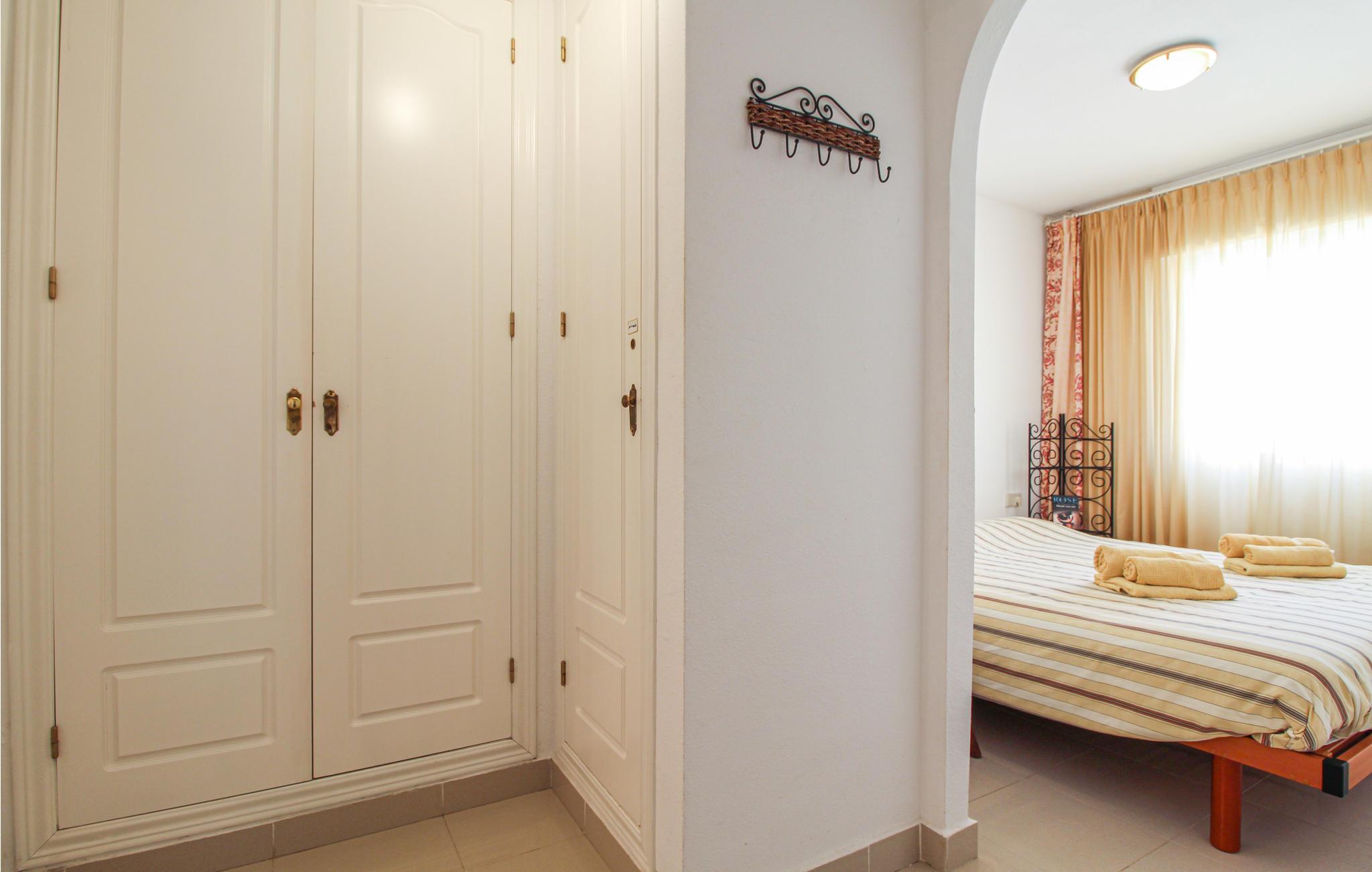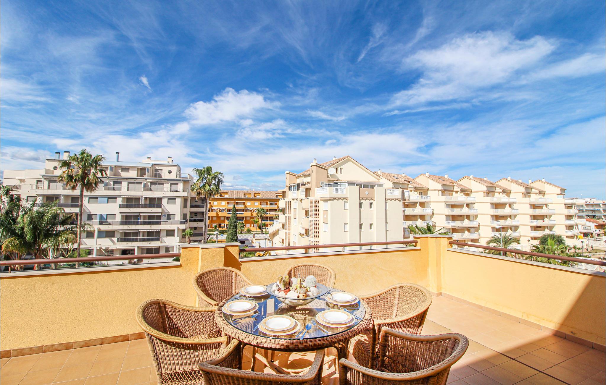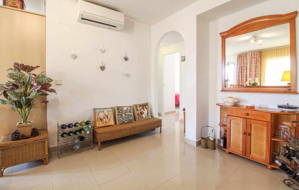Denne rummelige, lyse lejlighed med fælles pool er beliggende i Denia på Costa Blanca.