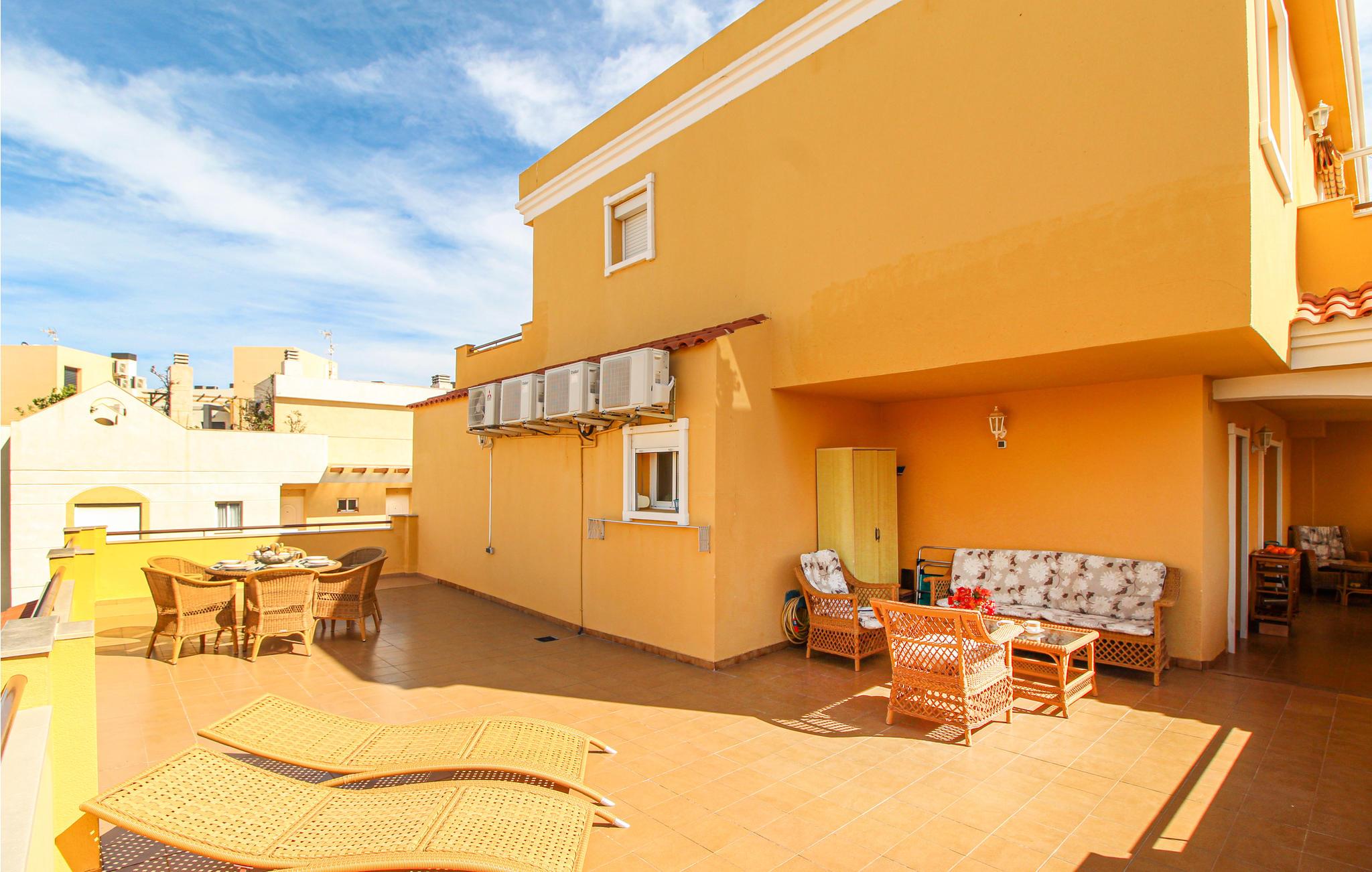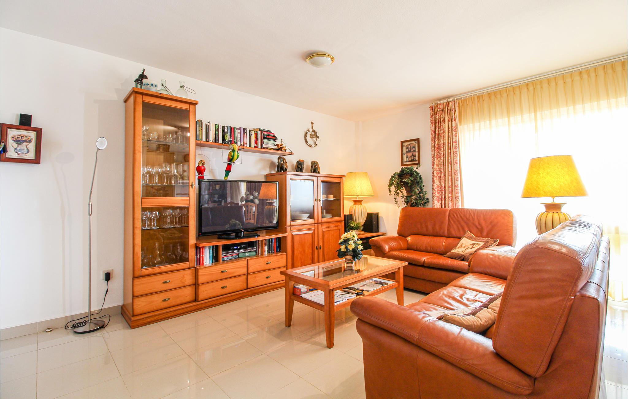 Opholdsarealerne er fordelt på 3 soveværelser og 2 badeværelser, hvoraf det ene er en suite. Der er en stor stue og direkte adgang til terrassen fra køkkenet. Den rummelige terrasse er i opdelt i tre forskellige områder: to områder på den overdækkede terrasse, hvoraf en del er et afslapningsområde, og et solrigt område, hvor I kan nyde behagelige måltider og se smukke solnedgange.