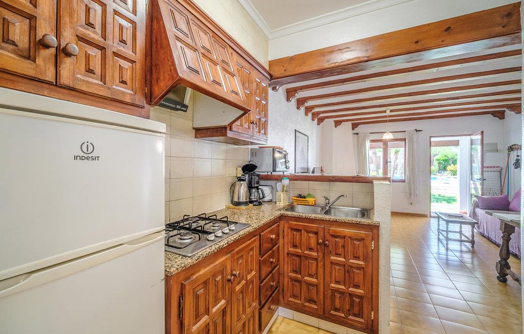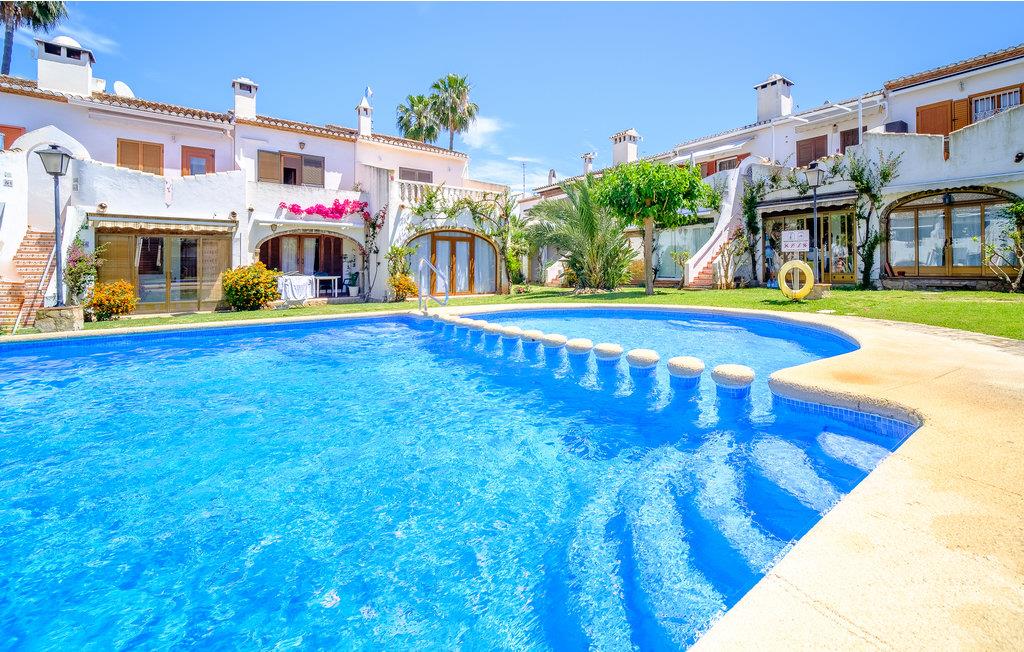 Nyd ferien under Spaniens varme sol i Denia, i denne ferielejlighed der kan rumme tre personer. Den er enkelt og praktisk indrettet med robuste møbler og er med et soveværelse, et badeværelse med brusebad og stue hvor sovesofaen til en står. Nyd livet på den overdækkede terrasse med havemøbler og med smukke mediterrane planter. I kan enten bade i den fælles pool, eller gå ned til nærmeste sandstrand kun 200 m fra boligen, hvor der kan lejes parasoller og solsenge og hvor Middelhavet indbyder til alle former for vandsport. Der er kun 100 m til nærmeste restaurant og forskellige butikker. Nærmeste by Denia, ligger 900 m væk og der er 15 km til golfbane.