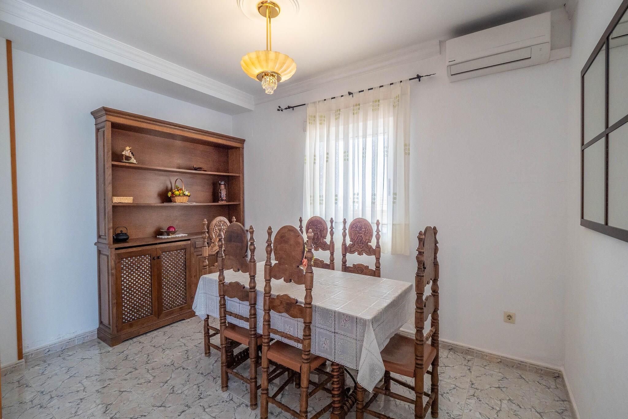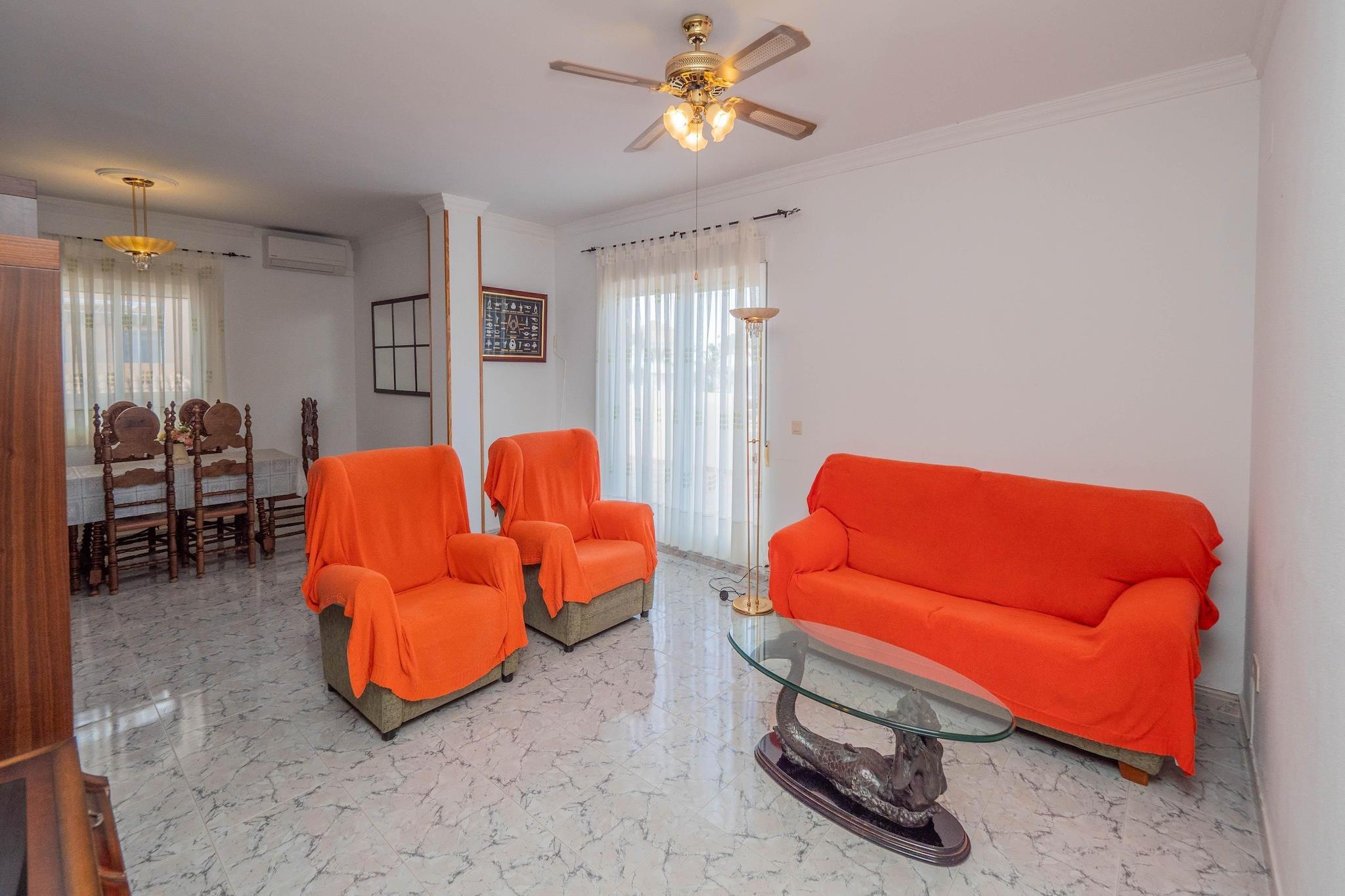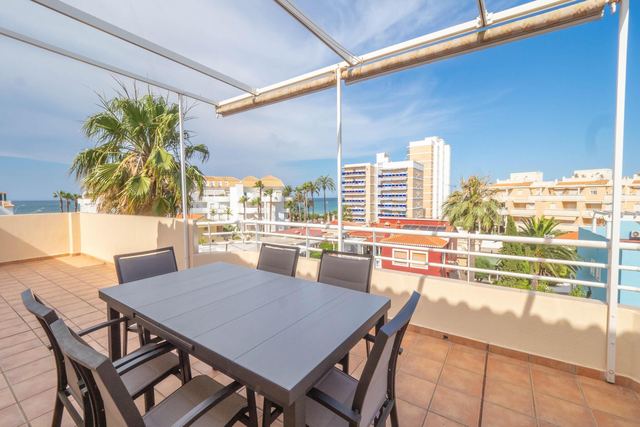 Denne indbydende penthouselejlighed i Denia tilbyder et lyst og rummeligt tilflugtssted kun 200 meter fra Costa Blancas gyldne sand. Beliggende på første sal er det ideelt for familier eller små grupper, der søger en afslappende kystferie. Med restauranter kun 100 meter væk og færgehavnen i nærheden, er det perfekt placeret til både fritid og udforskning. Lejligheden har et fuldt udstyret køkken med moderne apparater, herunder en opvaskemaskine, mikroovn og vaskemaskine. Opholds-/spiseområdet har aircondition, tv og komfortable siddepladser. Tre soveværelser, to med to enkeltsenge og et en-suite med en dobbeltseng, giver rigelig plads, mens to badeværelser med badekar og bidet sikrer bekvemmelighed. Højdepunktet er den ekspansive 100 m² private terrasse, perfekt til solbadning eller spisning under åben himmel. Denia er rig på kultur og naturlig skønhed. Besøg det historiske Denia Slot for at få panoramaudsigt, slentre den pulserende Marina el Portet, eller udforske udstillingerne på El Museu de la Mar. For naturelskere byder den nærliggende Montgó Naturpark på naturskønne vandrestier2. Der er masser af spisemuligheder, nyd kreative retter på Dexcaro & Ossadía Dénia, frisk fisk og skaldyr på Agua De Mar eller tapas på Tasca Les Monges4. Denne penthouse er din port til det bedste af Denia
