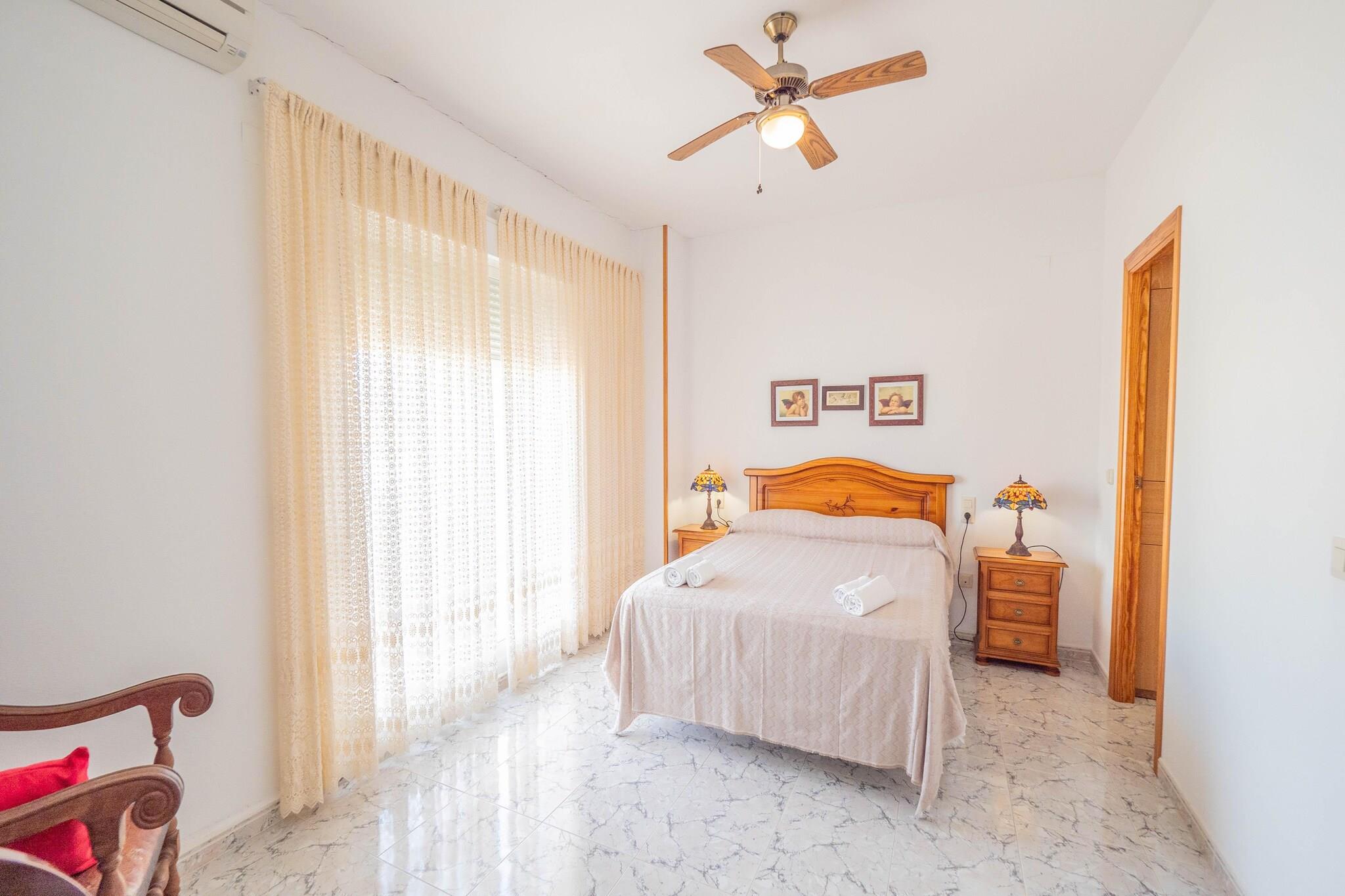 På 1. etage: (Køkken(brødrister, komfur, kaffemaskine, mikrobølgeovn, opvaskemaskine , køle-fryseskab, vaskemaskine, ), stue / spisestue(Fjernsyn, spisebord, sofahjørne, klimaanlæg), soveværelse(enkeltseng, enkeltseng, klimaanlæg), soveværelse(enkeltseng, enkeltseng, klimaanlæg), Soveværelse med badeværelse(dobbeltseng, badekar, håndvask, toilet, bidet, klimaanlæg), badeværelse(badekar, håndvask, toilet, bidet), terrasse(100 m2))