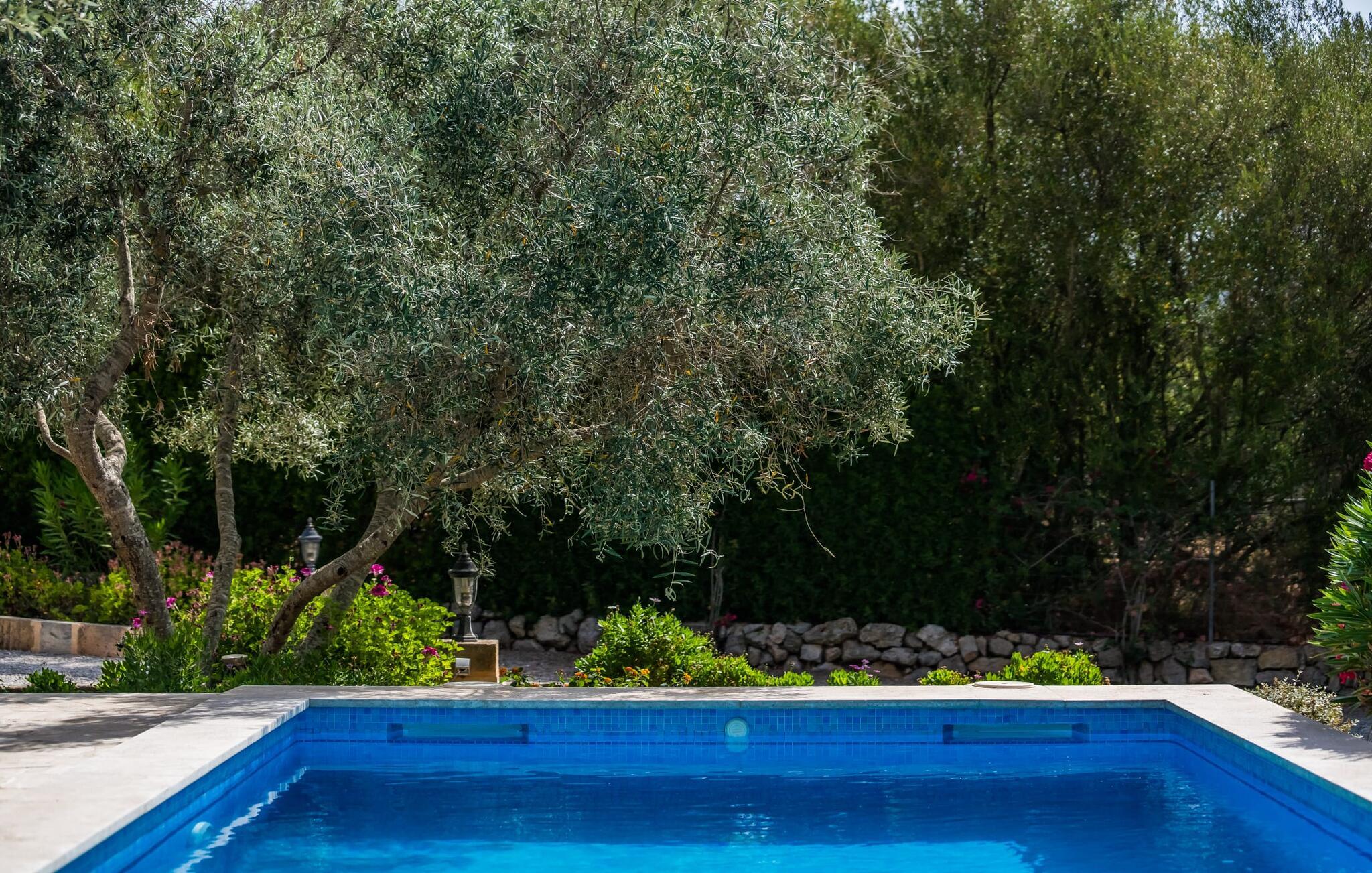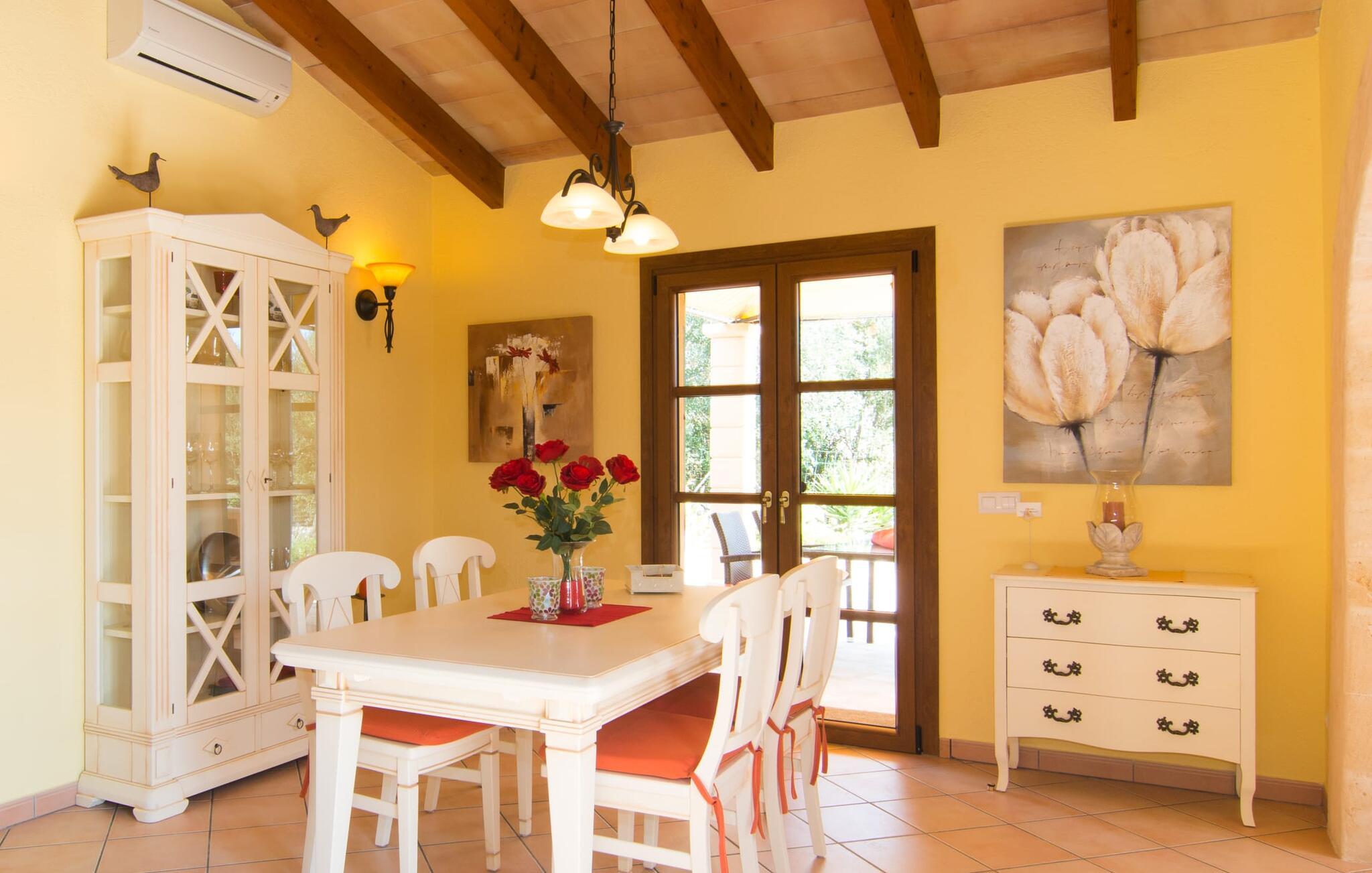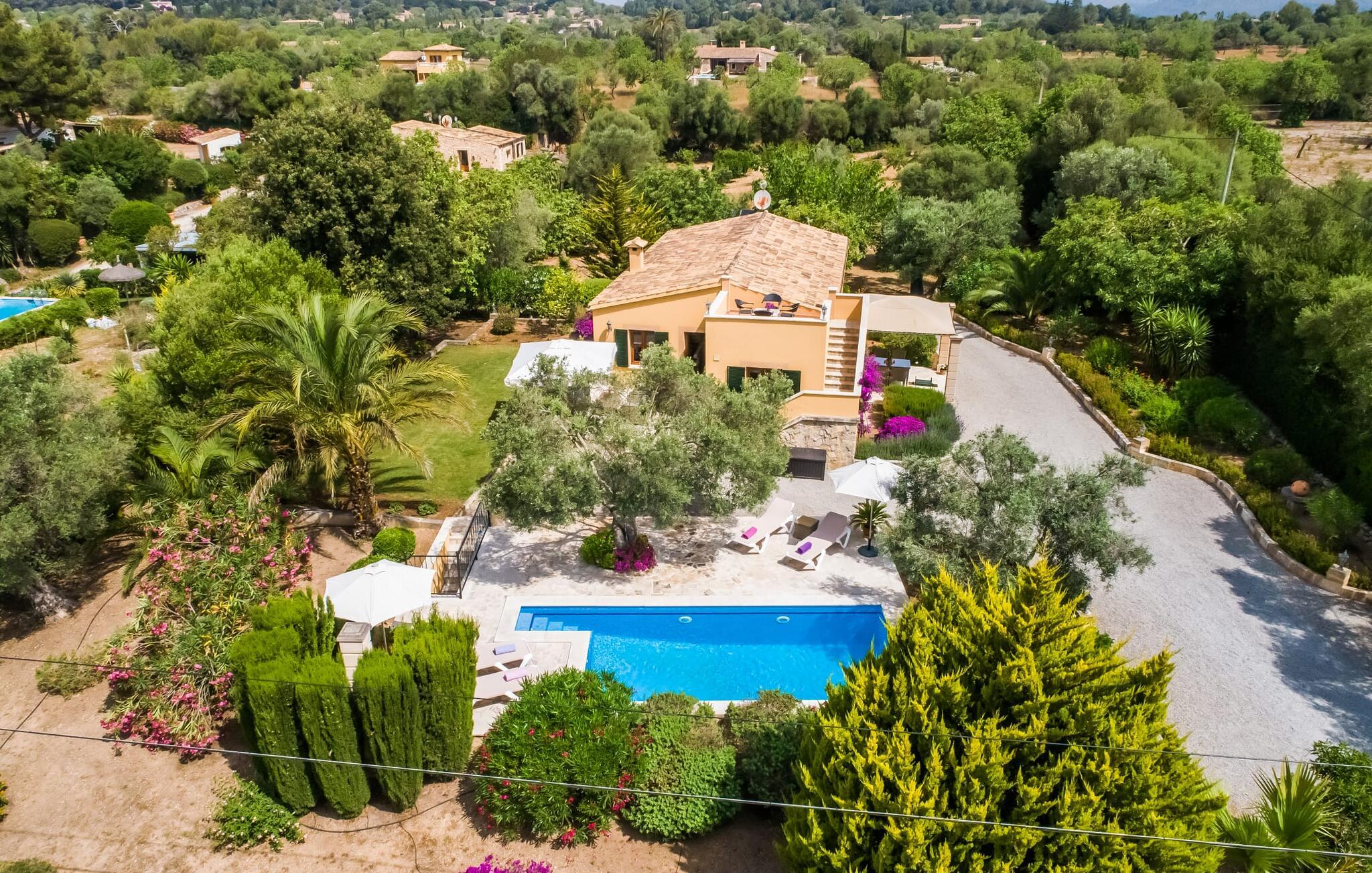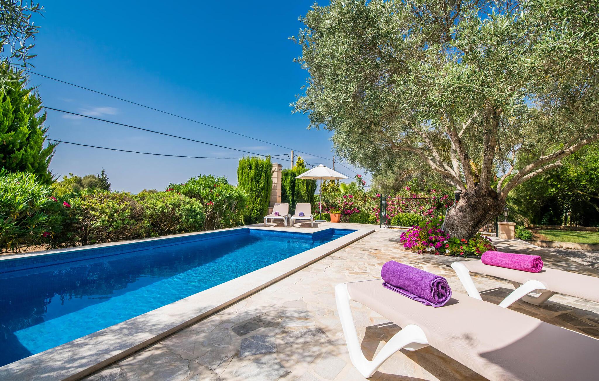 Villaen "Desol" er et feriehus, der er uden sidestykke. I en smuk beliggenhed, mindre end fem kilometer fra Artà, er det omgivet af magi, der kan mærkes første gang, I træder ind i ejendommen. Det er de kærlige detaljer og følelsen for stilfulde kompositioner, der udgør den særlige æstetik, som ved første øjekast ser meget indbydende ud. Villaen blev fuldstændig renoveret og renoveret i 2011. Heldigvis, da haven og campos blev redesignet, blev de gamle oliven- og algarrobatræer bibeholdt. Dette skaber en meget vellykket kontrast til husets moderne udseende. I 2013 blev vores egen licenserede brønd tilføjet. Planterne og græsplænen er forsynet med automatisk vanding. Området er præget af smukt grus, græs og terrassearealer. I midten ligger den smukke pool, som er dekorativt flisebelagt og tilgængelig via trapper. I kan slappe af i solen af hjertens lyst på de komfortable liggestole og nyde den vidunderlige feriesæson fuldt ud. I alt tre parasoller er tilgængelige for at beskytte jer mod overdreven UV-stråling. To terrassearealer på huset, hvoraf det ene er overdækket, inviterer også til at blive hængende. Der er komfortable polyrattan loungemøbler og et spisebord til fællesspisning. Morgenmaden her er uden tvivl lige så behagelig som den kulinariske middag om aftenen. Grillen vil med garanti også indbyde til en solid grill. Kommer man ind i huset via den overdækkede terrasse, når man den åbne stue/spisestue, som udstråler komfort og har en usædvanlig stilfuld og harmonisk indretning. Smarte synlige bjælkelofter harmonerer perfekt med gulvfliser og bløde vægfarver. I sofahjørnet kan I finde jer tilpas i sofaen og lænestolene med smukt fletværk og slappe af med en lækker drink, en god bog eller en underholdende film, da fjernsynet er installeret her. På kølige dage vil I måske forstærke atmosfæren med et hyggeligt bål. Det indbydende spisebord på den anden side af rummet, designet med hvide møbler, er ideelt til fællesspisning indendørs med udsigt udenfor. Herfra går I gennem en bred buet gang ind i det lyse og moderne køkken, som er fuldt udstyret med alle de redskaber, I har brug for til hverdagen. En Senseo samt en filterkaffemaskine og en kedel er også inkluderet. Som en lille service og for at spare jer for at skulle handle dagligvarer umiddelbart efter jeres ankomst, står rengøringsmidler, opvaskemiddel, flydende håndsæbe, opvaskeflader, fyrfadslys, servietter osv. til rådighed for jer. Diskret møblerede og dekorerede soveværelser danner grundlaget for en fuldstændig afslappende søvn. Bløde farver og lyselementer fremmaner en fortryllende atmosfære her på ethvert tidspunkt af dagen. Der fås i alt fire senge på 0,9 x 1,9 m, som hver kan kombineres til en parseng. Badeværelset med dagslys imponerer med sit moderne design og indretning af høj kvalitet. Et strygejern og en hårtørrer er bekvemt tilgængelige i huset og behøver ikke at medbringes i jeres bagage. Leder I efter en æstetisk villa i landlig idyl og samtidig tæt på smukke naturlige sandstrande, kan dette hus varmt anbefales til jer. Travle turistbyer som Cala Ratjada (13 km) med sine mange barer, restauranter og indkøbsmuligheder kan nås på meget kort tid. Efter en vellykket udflugt kan I altid vende tilbage til jeres egen villa for at svømme et par længder eller afslutte dagen på terrassen, som I ønsker det. Villa “Desol” er et stilfuldt lille feriehus beliggende i en vidunderlig landlig beliggenhed mellem Artà og Canyamel. Det er omgivet af et meget velholdt udendørsområde. Artà er kun otte minutter væk i bil. Det er et fantastisk sted for shopping og spisning. Talrige fine, hvide sandstrande langs den lokale kystregion ligger blot et par minutters kørsel derfra. Lufthavnen kan nås på en time.