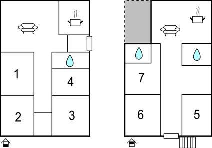 Badeværelse 4m2 (nr. 1) - WC. Varmt og koldt vand. Bruser