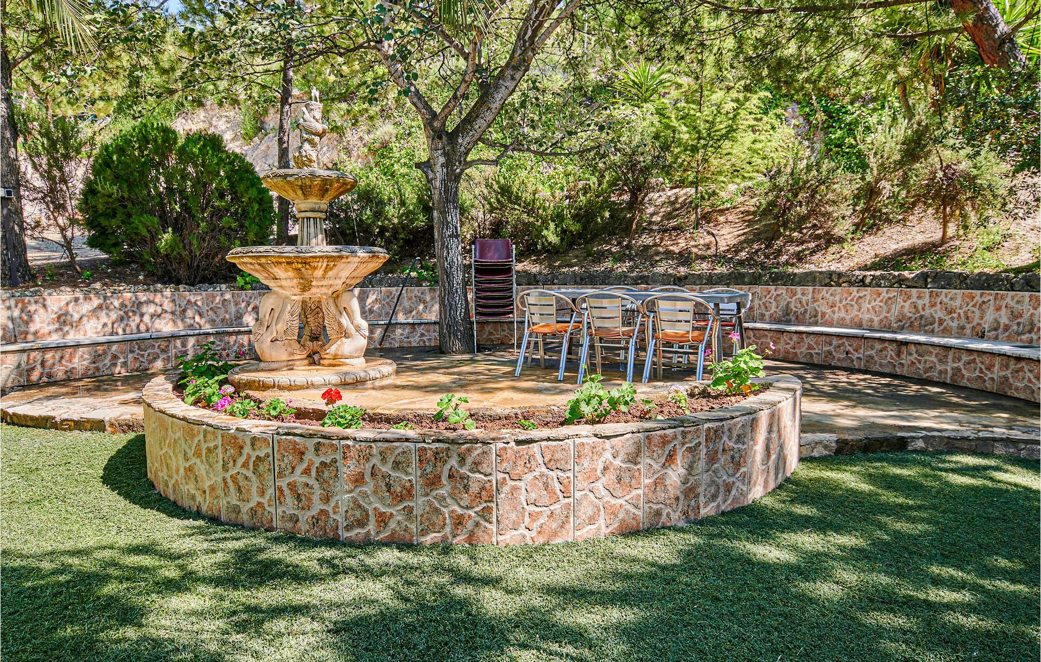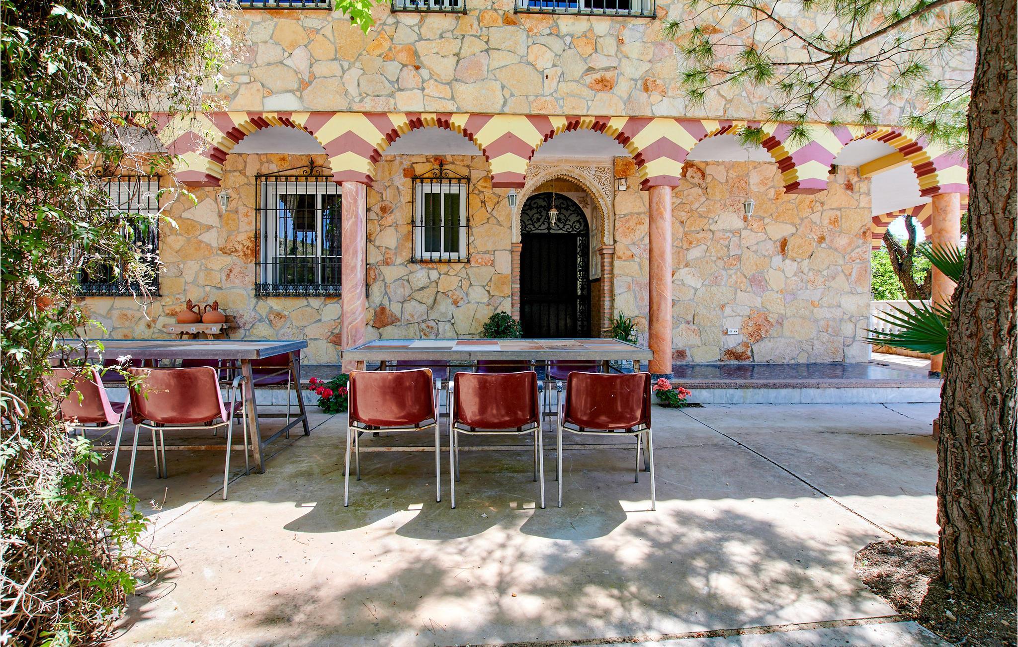 Her kan op til 14 personer holde en dejlig ferie sammen, så stedet er ideelt til en stor familie eller en gruppe venner og jeres kæledyr. Nyd det karakteristiske opholdsrum med markante dekorationer, der lukker meget lys ind takket være de store vinduespartier. Huset ligger på en rummelig naturgrund, hvor både kæledyr og børn kan boltre sig ubekymret. Der er også en grill på den åbne terrasse, hvor I kan spise sammen eller afslutte sommeraftenerne med et glas vin. Den private udendørs pool inviterer jer også til at køle af på varme sommerdage.