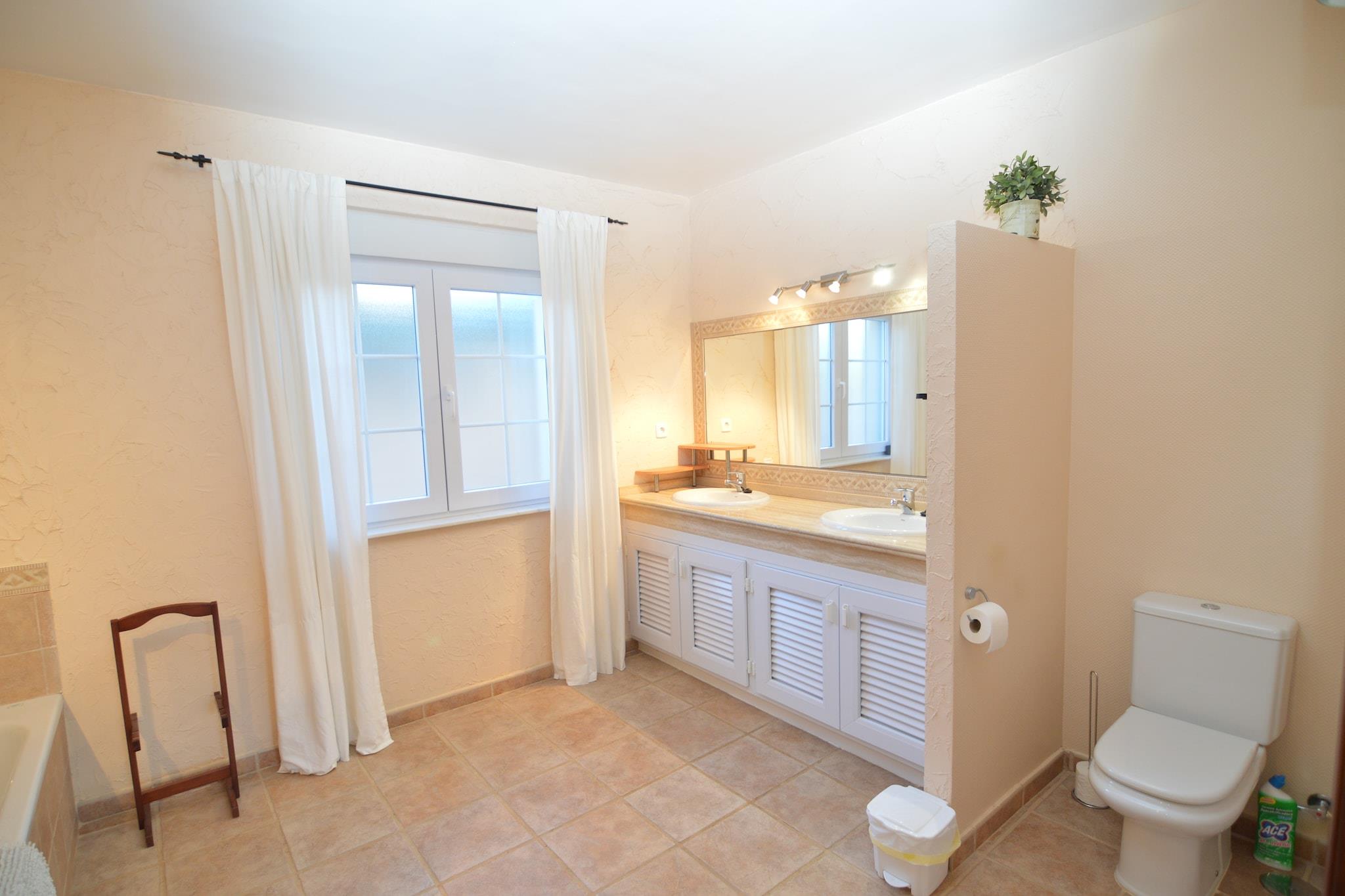 Stueetage: (Stue(Fjernsyn(Hollandske TV-kanaler), kakkelovn(træ), stereoanlæg, klimaanlæg), Køkken(komfur(Komfur med fire kogeplader, glaskeramisk), 2x kaffemaskine(kaffetragt, kaffepude), ovn, køle-fryseskab), Soveværelse med badeværelse(dobbeltseng eller 2 enkeltsenge Senge, badekar med bruser, 2x håndvask, toilet, klimaanlæg), Soveværelse med badeværelse(dobbeltseng eller 2 enkeltsenge Senge, bruser, håndvask, toilet, klimaanlæg), Soveværelse med badeværelse(dobbeltseng eller 2 enkeltsenge Senge, bruser, håndvask, toilet, klimaanlæg), toilet, udekøkken, køleskab, vaskemaskine, grill, swimmingpool(privat, 12 x 5 m., 15 x 4 m.)) På 1. etage: (Soveværelse med badeværelse(dobbeltseng eller 2 enkeltsenge Senge, bruser, håndvask, toilet, klimaanlæg), Soveværelse med badeværelse(dobbeltseng eller 2 enkeltsenge Senge, badekar med bruser, 2x håndvask, toilet, balkon, klimaanlæg), Soveværelse med badeværelse(dobbeltseng eller 2 enkeltsenge Senge, bruser, håndvask, toilet, klimaanlæg)) carport, terrasse, solstole, parkering