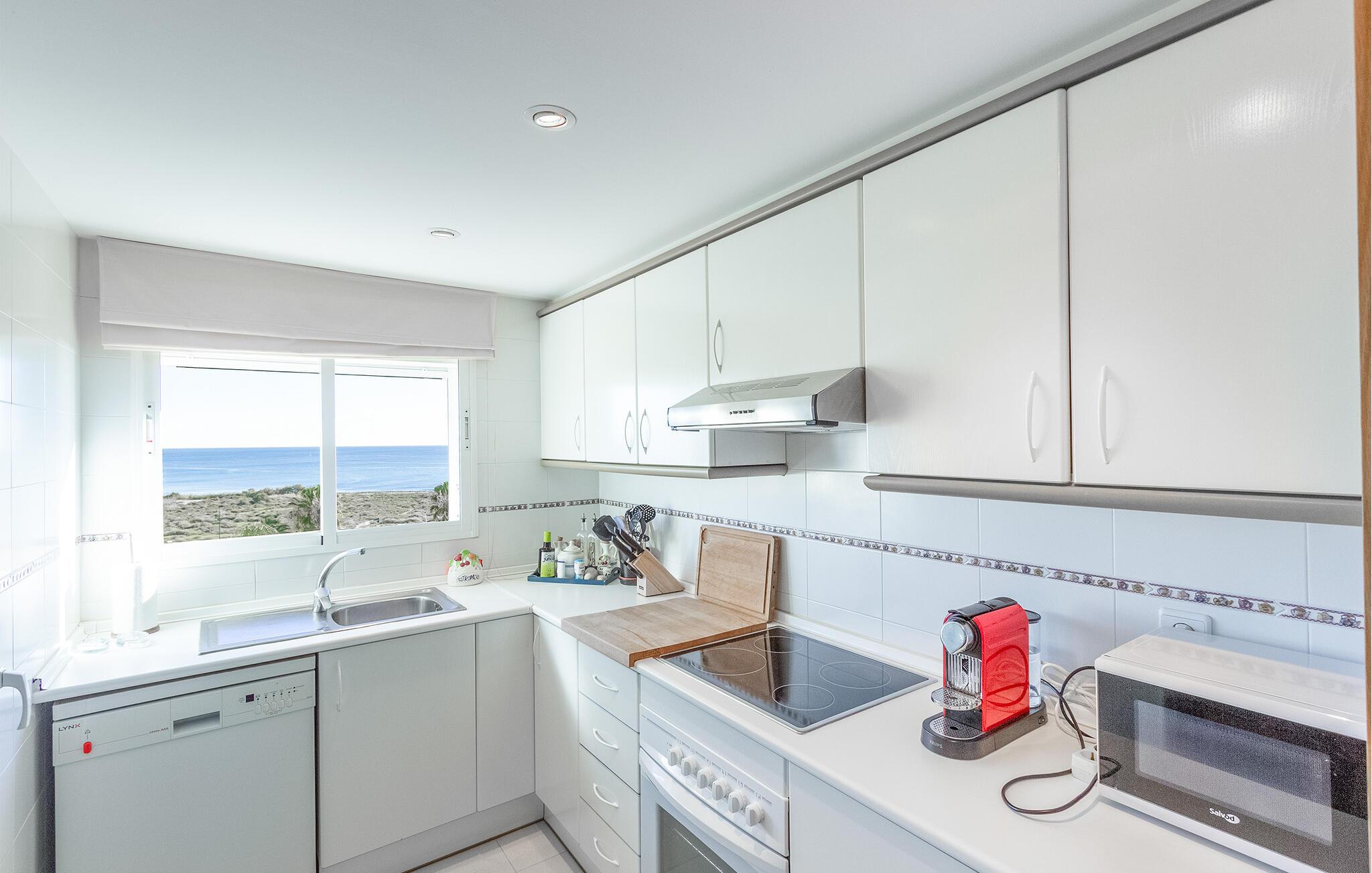 Denne lyse og indbydende ferielejlighed i El Campello byder på alt, hvad I skal bruge til en afslappende ferie. De klassiske møbler sikrer komfort og en følelse af hjem.