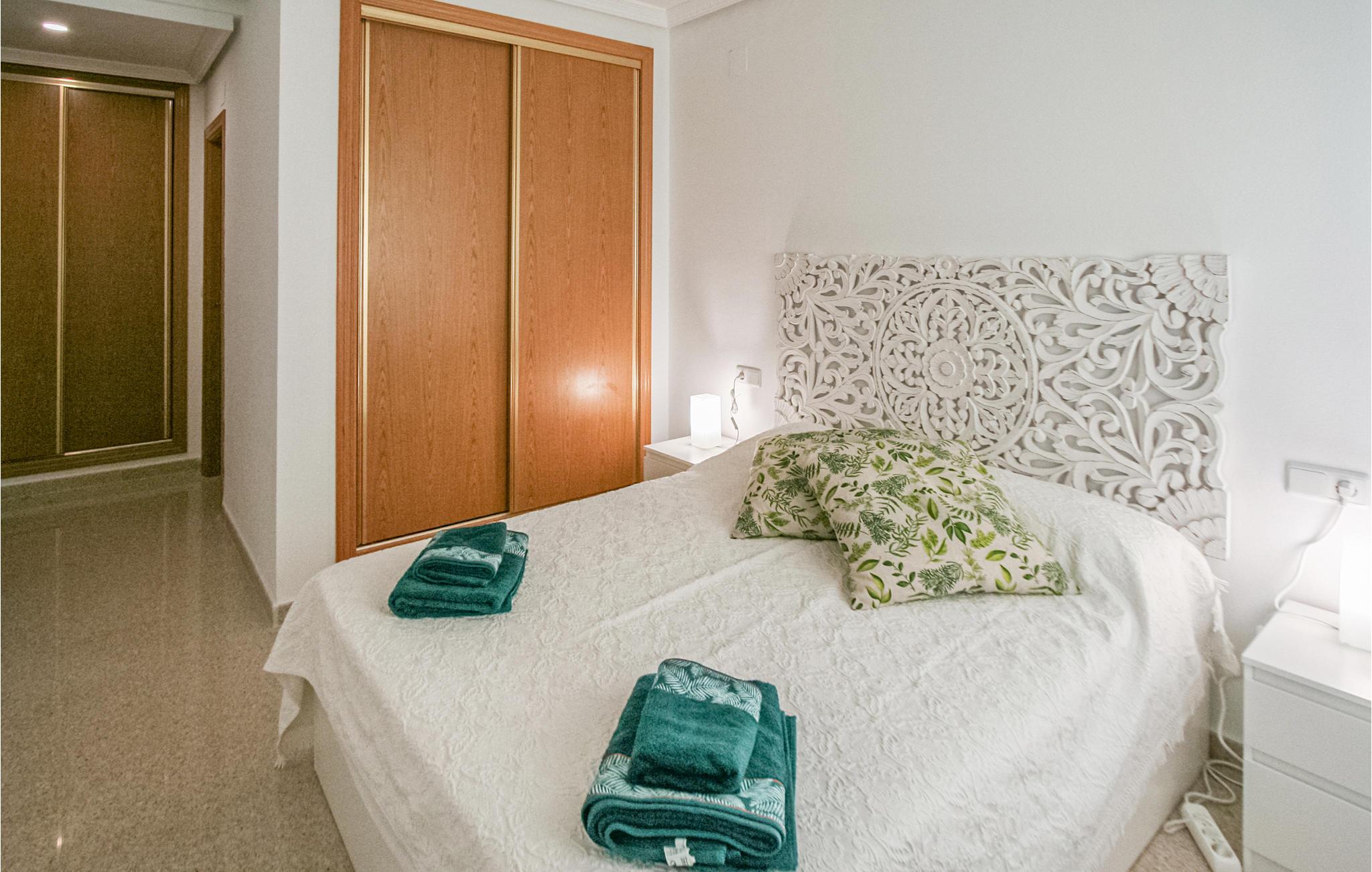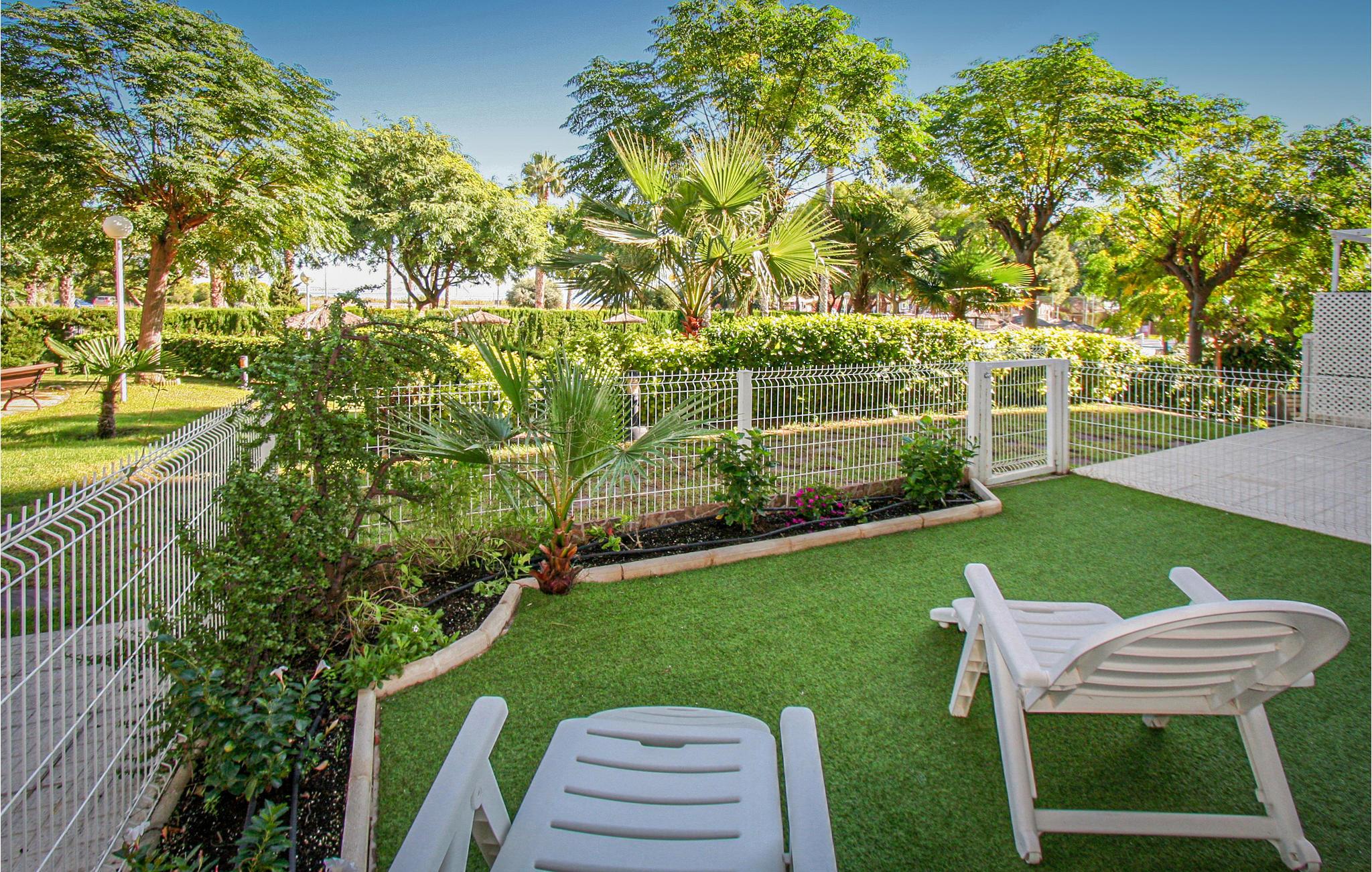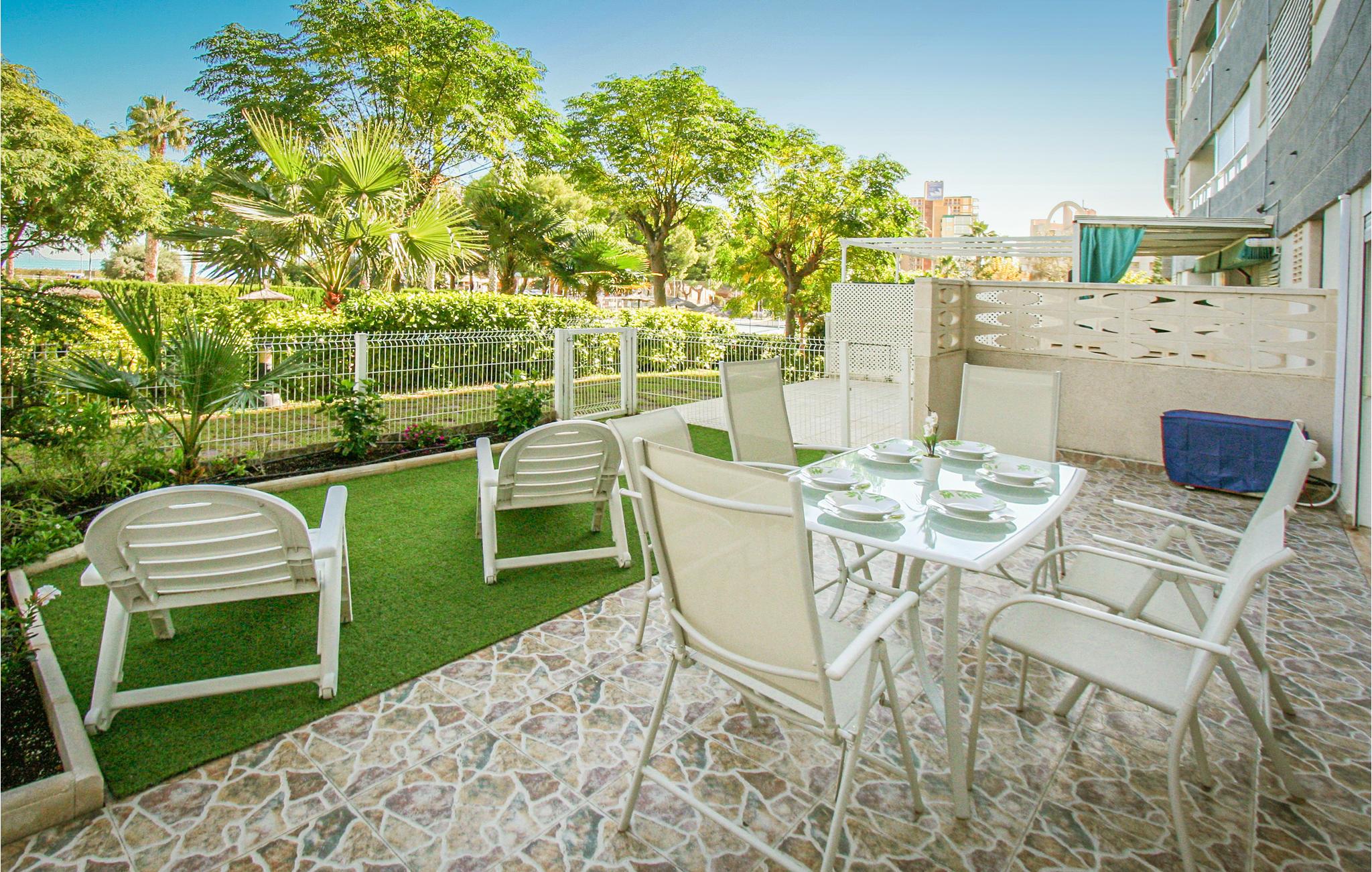 Lejligheden har 3 soveværelser, 2 badeværelser, et fuldt udstyret køkken, en stor stue og en stor terrasse med en lille haveområde, der er tilgængelig fra stuen. Her kan I spise sammen med jeres kære og slappe af i de behagelige temperaturer, der kendetegner dette område.