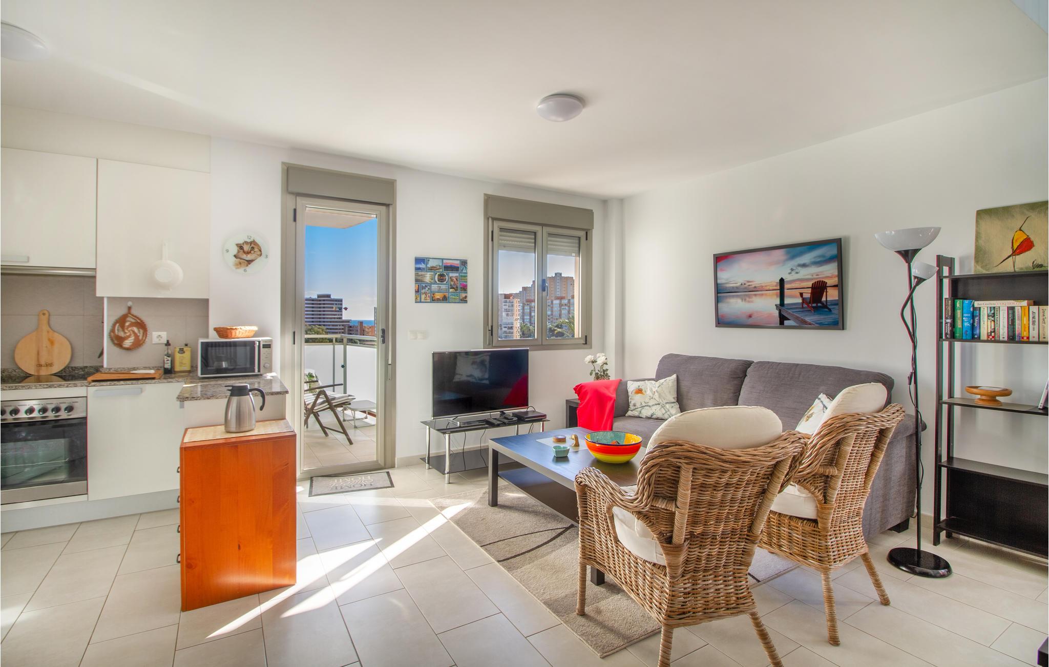 Glæd jer til en afslappende ferie med smuk udsigt til havet fra denne komfortable ferielejlighed, som ligger tæt på stranden!