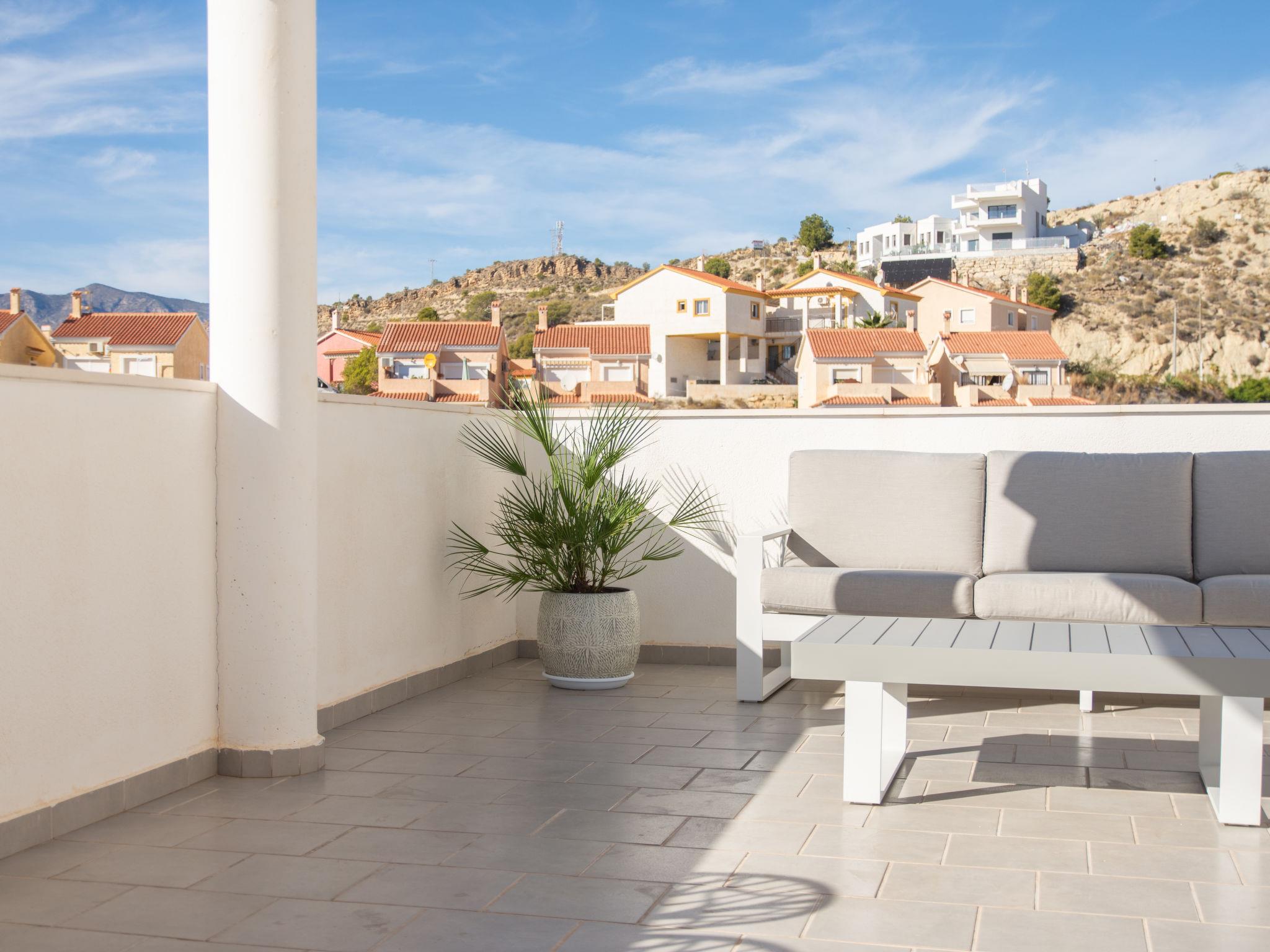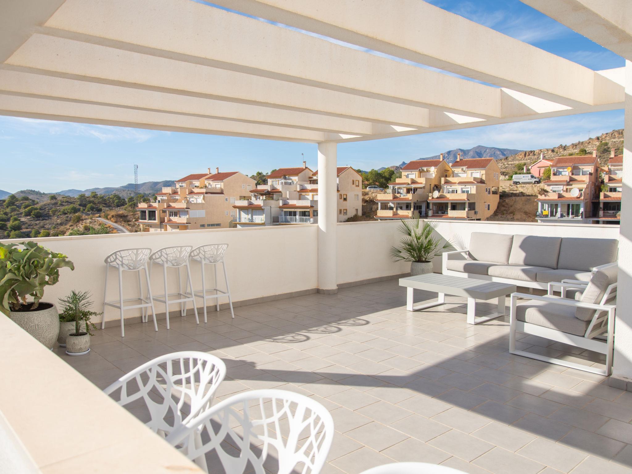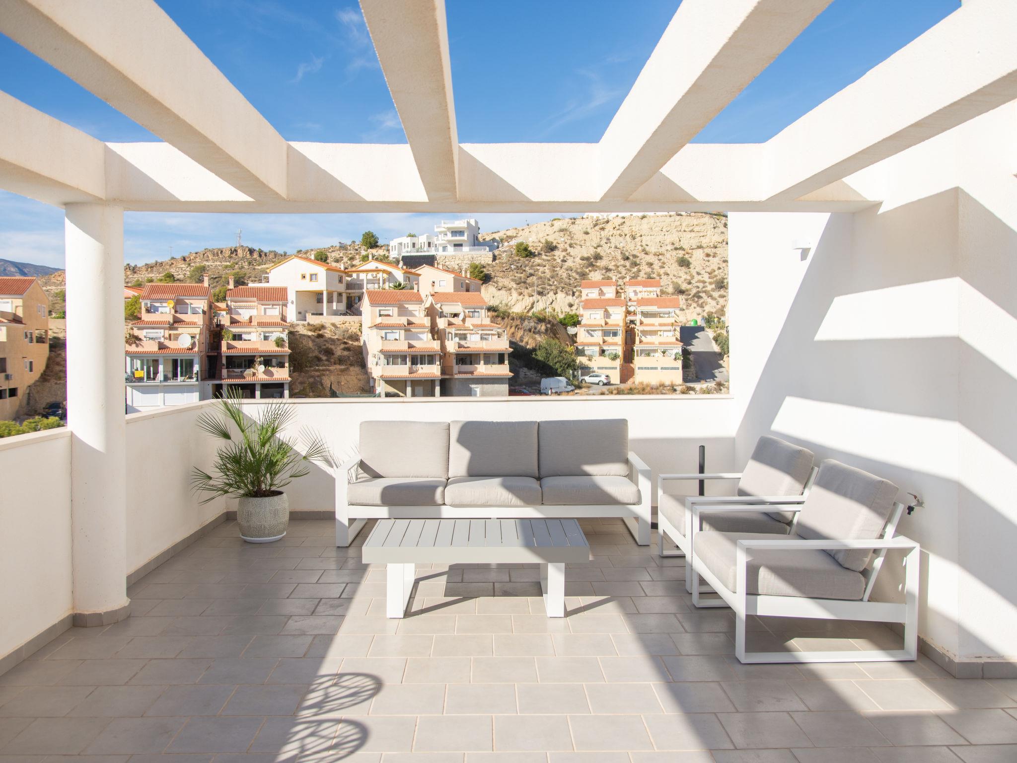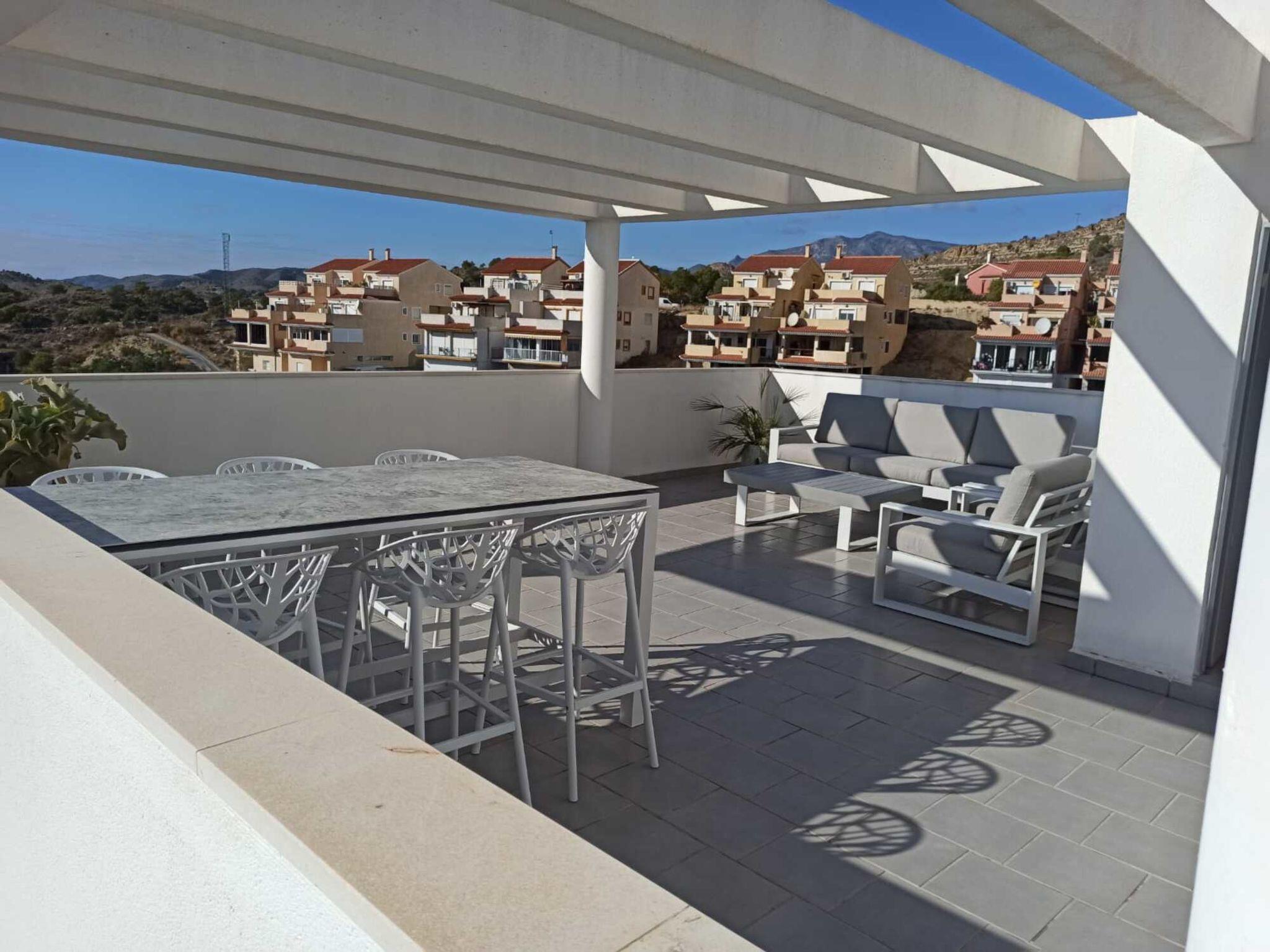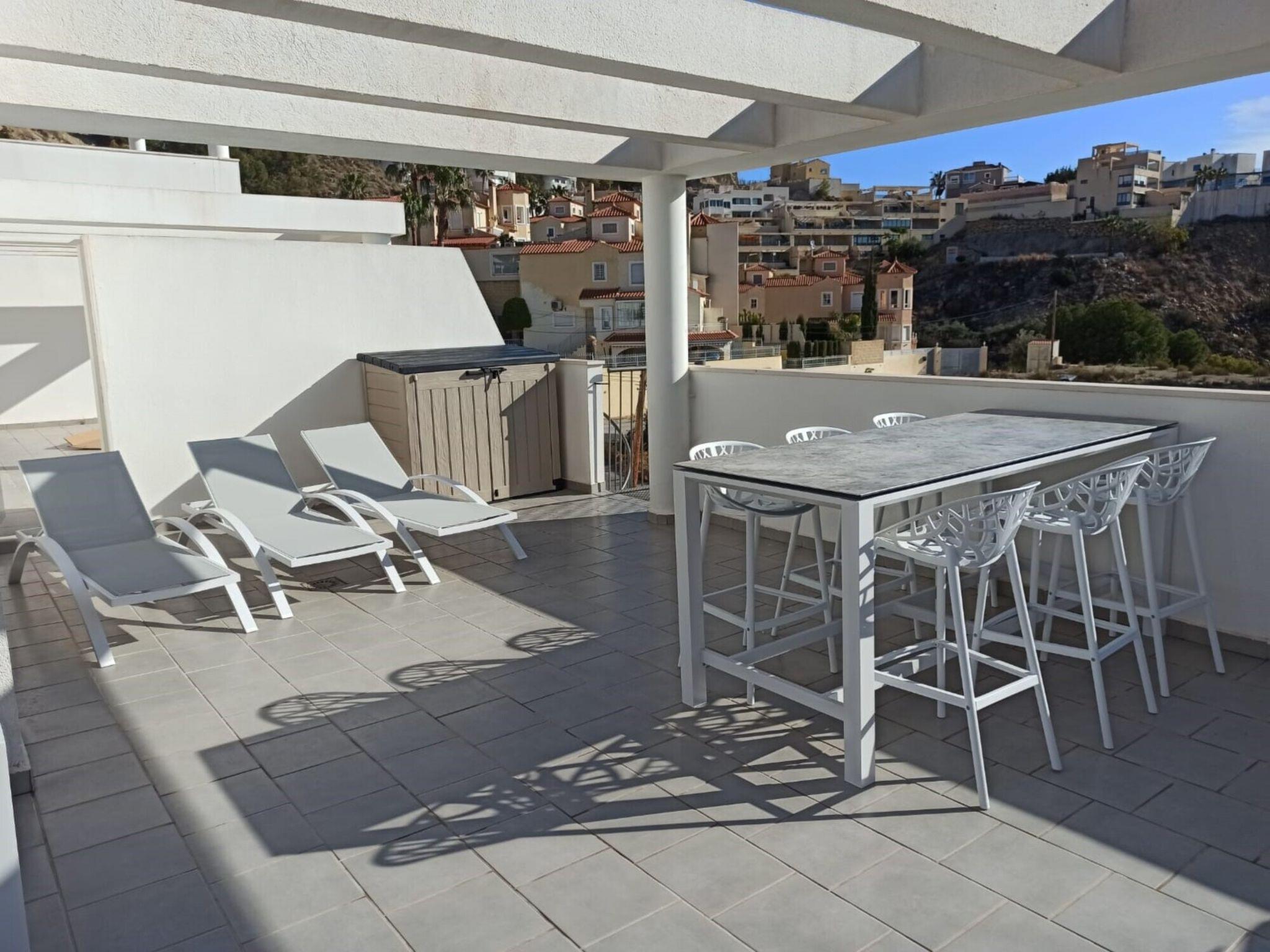 Modern, comfortable holiday development "Penthouse Florian", built in 2019. On the outskirts villajoyosa, in a sunny position on a slope, 1 km from the sea, 1 km from the beach. In the house: lift. Supermarket 1.3 km, bar 1.4 km, bus stop "Villajoyosa numero 23" 1.2 km, railway station 2 km. Nearby attractions: Terra Natura Benidorm, Terra Mitica Benidorm, Aqualandia Benidorm, Mundomar Benidorm, Alicante, Aeropuerto. Please note: car recommended. Object suitable for 4 adults. The owner does not accept any youth groups. Neighbourhood highly sensitive to noise. Quietness and good behaviour expected.