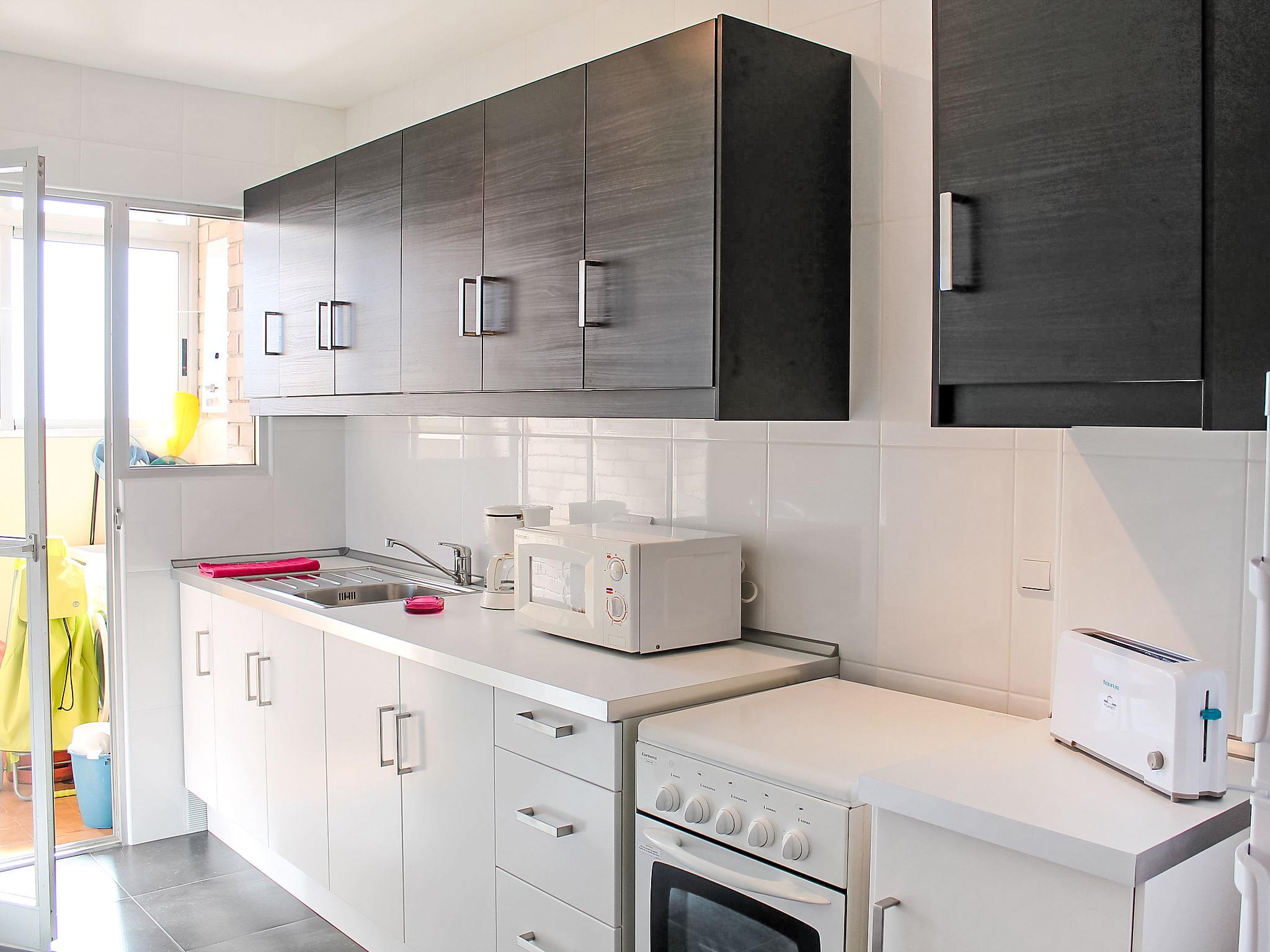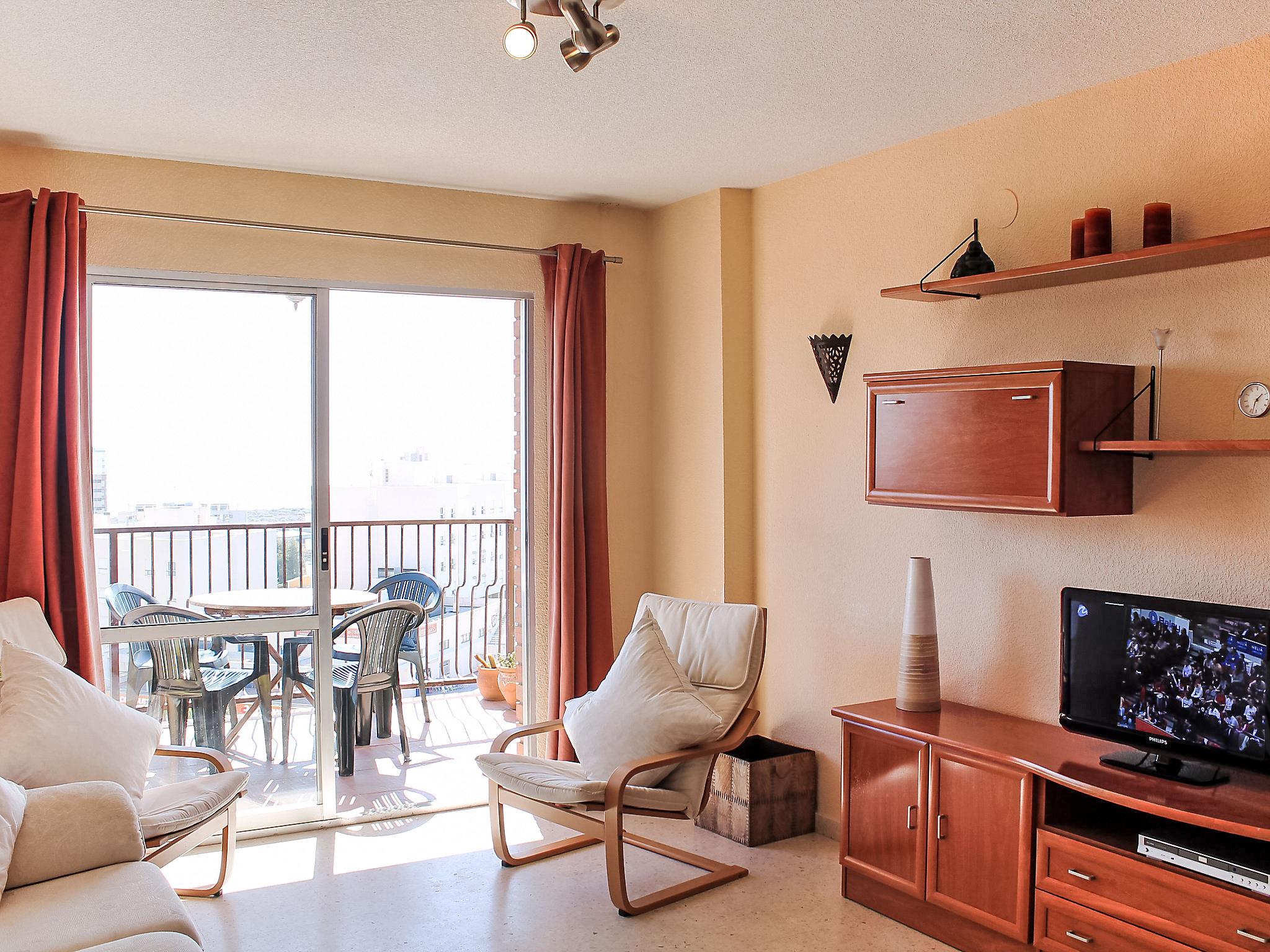 "Las Cinco Torres", 3-room apartment 60 m2 on 7th floor. Spacious and bright, simple and practical furnishings: living/dining room 25 m2 with digital TV and fan. Exit to the terrace. 1 room 8 m2 with 2 beds (90 cm, length 190 cm), fan. 1 room 11 m2 with 1 french bed (150 cm, length 190 cm), fan. Kitchen 9 m2 (4 hot plates, oven, toaster, kettle, microwave, freezer, electric coffee machine). Bath/WC. Electric heating. Small terrace. Terrace furniture. Partial view of the sea and the resort. Facilities: washing machine, iron. Internet (WiFi, free). Parking space n S/N at the house. Maximum 1 small pet/ dog allowed. Possibility of delivery of keys in the apartment from 4:00 p.m. to 6:00 p.m. with an extra cost of €30.00. VT-432125-A // Reg. Nr.: ESFCTU00000305600016919000000000000000000VT-432125-A8