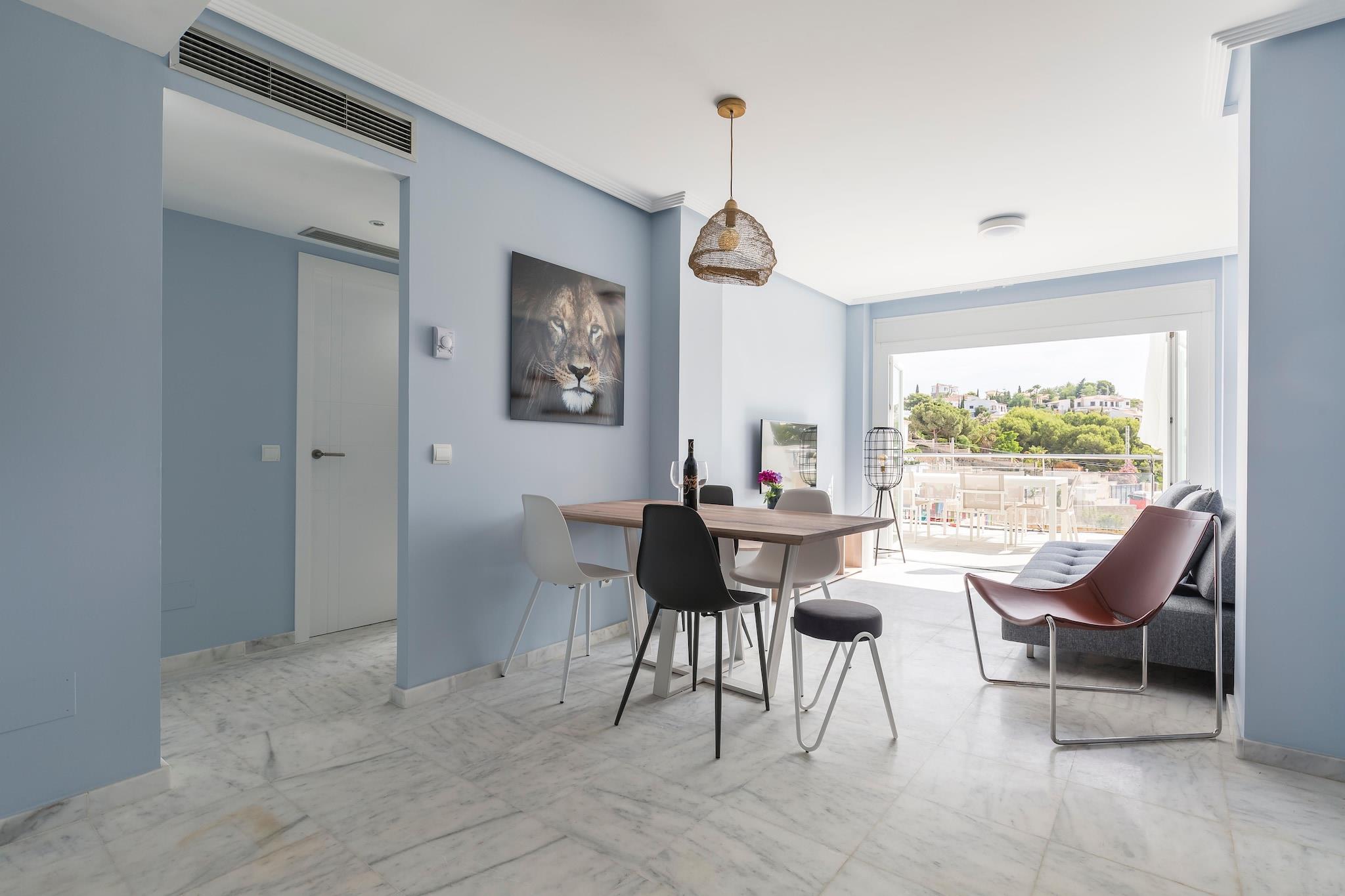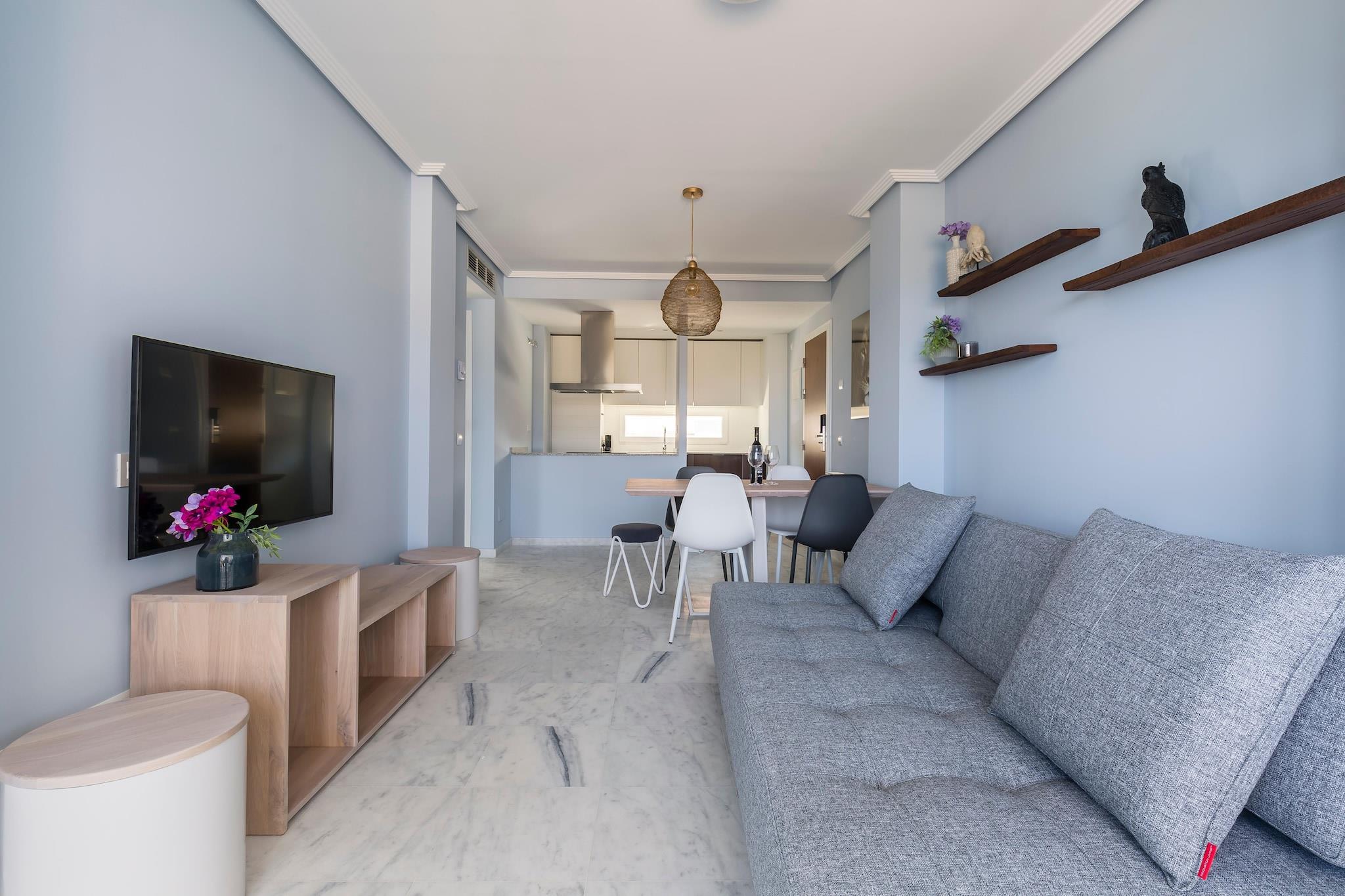 Sea Breeze & Sun-Kissed Living Slap af i en rummelig kystlejlighed, hvor bløde marmorgulve, cool aircondition og moderne design sætter tonen for et afslappende ophold. Perfekt til op til seks gæster, dette lyse oase har to komfortable soveværelser, en alsidig sovesofa og et indbydende opholdsområde i åbent plan. Den møblerede terrasse eller balkon byder på en stadigt skiftende kulisse - glitrende pooludsigt, bølgende bakker i det indre land eller et glimt af det glitrende Middelhav. Kysteventyr for alle (kæledyr inkluderet!) Her er Costa Blanca din legeplads. Start dagen med en spadseretur langs El Campellos palmeomkransede promenade, eller lad din hund løbe frit ved det nærliggende Playa de la Almadraba. Naturskønne vandrestier snor sig langs klipperne, mens varmt sand og blide bølger inviterer til dovne eftermiddage. Tilbage på resortet venter en opvarmet pool, og underjordisk parkering bliver ved med at udforske uden stress. Smag værd at rejsen El Campello er en fest for sanserne - prøv friskfanget fisk og skaldyr grillet til perfektion, del tallerkener med lokale tapas, eller nyd paella på en terrasse ved havet, hvor kæledyr er velkomne. Når natten falder på, nyd vin under stjernerne, lyt til bølgernes blide rytme. Her er hvert øjeblik fyldt med charmen fra kystspanien.