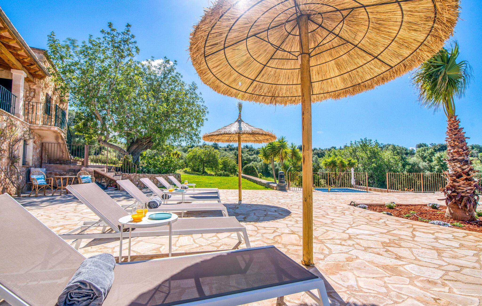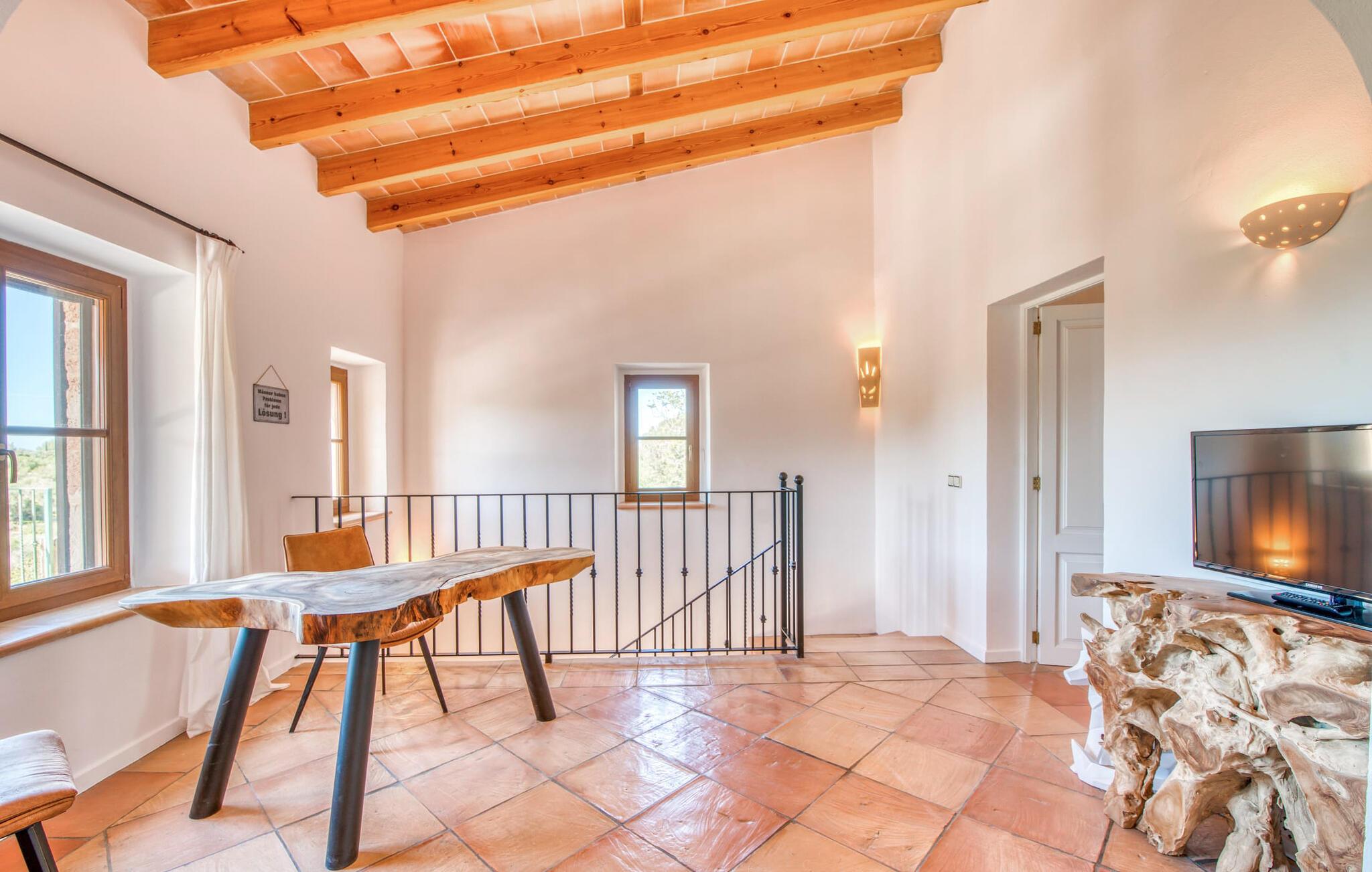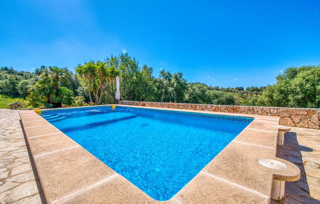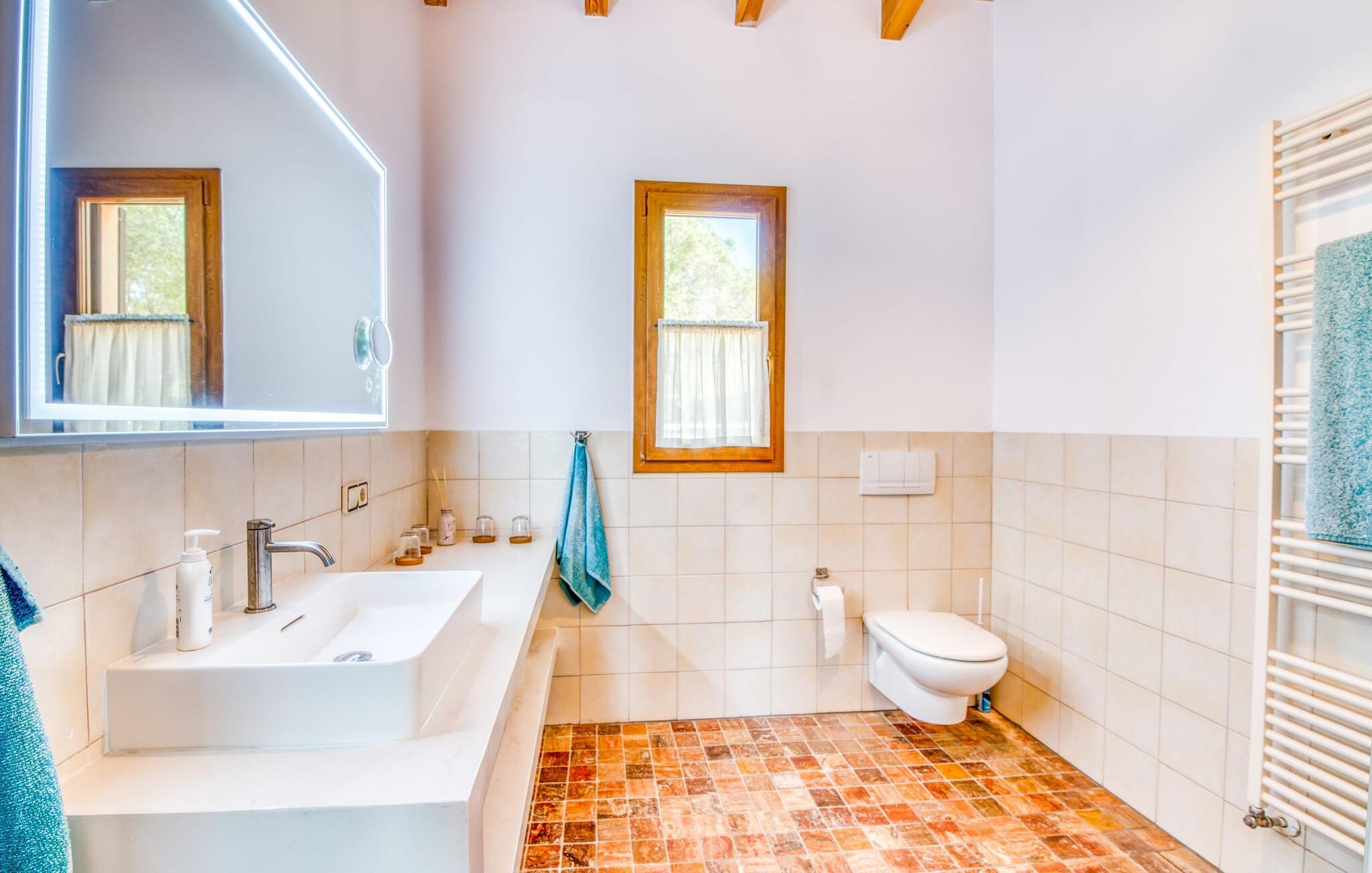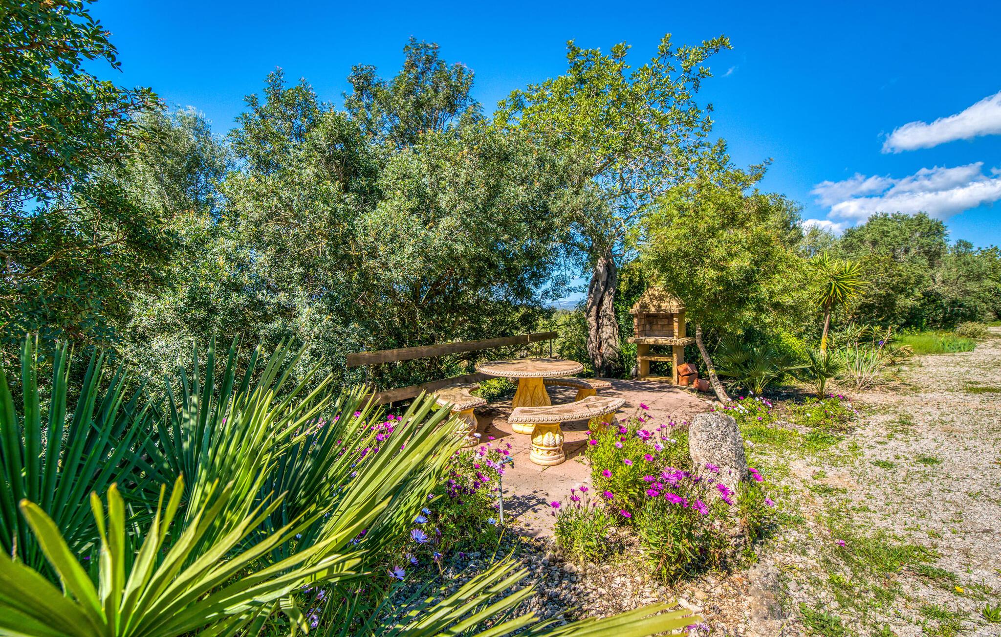 Drømmer I også om afslappende natur, bølgende bakker, duften af syd og en pause for jer selv og jeres familie? Så er I kommet til det rigtige sted hos Fincallorca og fincaen “El Colibrí”! Midt i det frodige middelhavslandskab på den østlige del af øen, ikke langt fra en typisk landbrugslandsby, opdag denne vidunderligt smukke ejendom i en kuperet, afsondret beliggenhed. Udeområdet fryder sig med den opvarmede pool, som er dekoreret med en bugtende mosaik. Over poolniveauet finder I komfortable liggestole med eller uden skyggefulde bambusparasoller samt en balinesisk dagseng til en siesta. På grund af bjergskråningens beliggenhed har I to overdækkede terrasser med direkte adgang til huset, hver med spiseplads og yderligere siddepladser. Forkæl jer selv med fornøjelsen af at lave mad sammen eller en afslappet BBQ og nyd tiden med familien i næsten meditativ stilhed og i harmoni med naturen. Uanset hvor I beslutter jer for at sidde, kan I nyde skønheden i Mallorcas frodige vegetation uforstyrret og uden forstyrrende påvirkninger. Interiøret i det smagfuldt renoverede landsted er også bemærkelsesværdigt smukt. Kombinationen af mallorcansk tradition med terracotta, træ og hvide vægge rundes af med overraskende dekorative accenter. Det åbne køkken og spiseplads, adskilt af en amerikansk tæller, suppleres af en rustik pejs og en komfortabel bænk. En trendy designersædeskal og en smuk hjemmekontorarbejdsstation inviterer jer til at blive hængende, især i den køligere sæson. Kombinationen af mallorcansk klassicisme, udsøgte møbler og de nyeste boligtrends kan også opdages i de fire airconditionerede soveværelser med store dobbeltsenge. Med tre stilfulde badeværelser (to af dem en suite) inklusive brusere (og nogle med badekar), kan to familier sprede sig. Stuen er sammen med det fjerde soveværelse placeret i kælderen og giver direkte udgang til den skyggefulde terrasse med stue og spisebord. Med “El Colibrí” kommer I fascinerende tæt på en ferie i et naturparadis! Den inspirerende stenbrudsfinca "El Colibrí" ligger i en smuk afsides beliggenhed nær Son Macià. Den smukke landsby ligger mellem Manacor og Calas de Mallorca. I kan gøre jeres indkøb i denne autentiske landsby, men selvfølgelig også på de ugentlige markeder i de omkringliggende landsbyer Portocolom, Felanitx eller Manacor. De smukke (naturlige) strande på østkysten kan nås på cirka 15 minutter i bil.