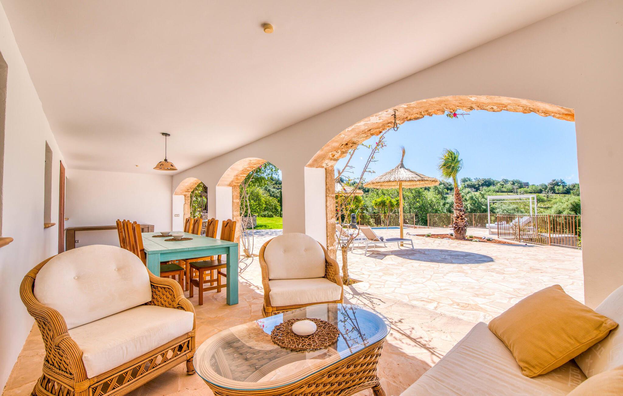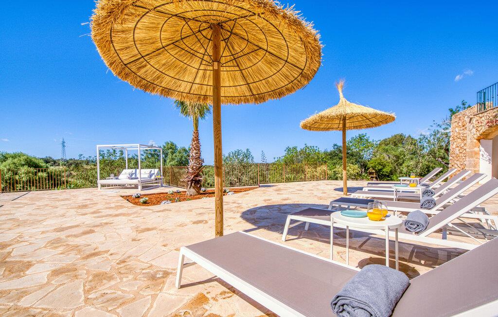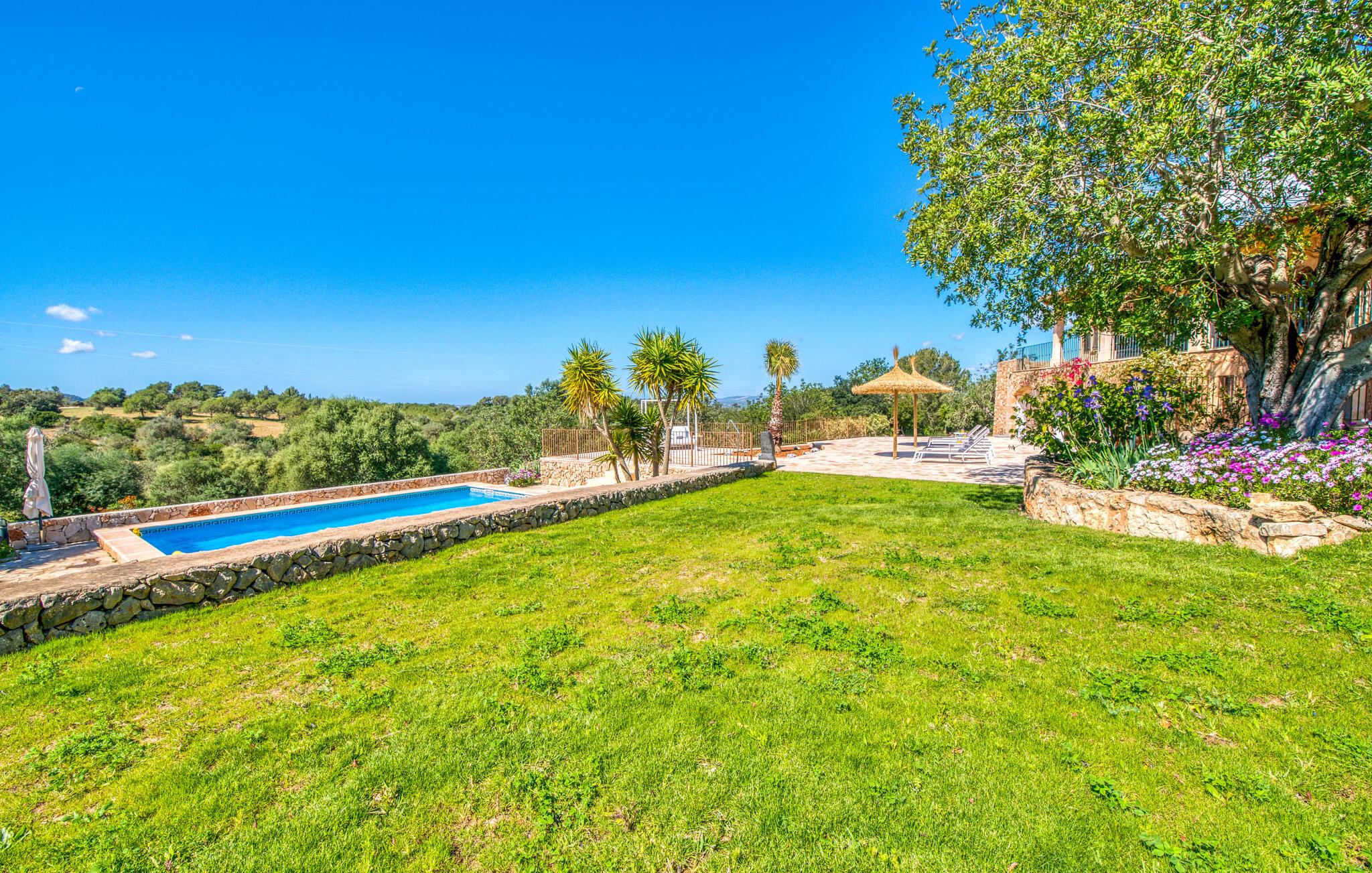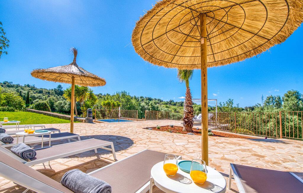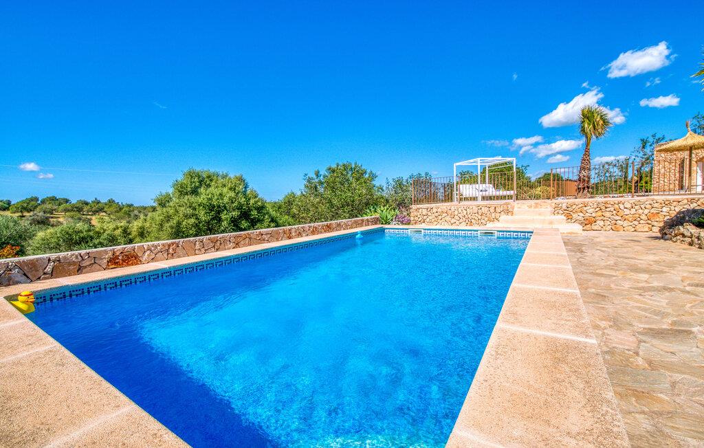Drømmer I også om afslappende natur, bølgende bakker, duften af syd og en pause for jer selv og jeres familie? Så er I kommet til det rigtige sted hos Fincallorca og fincaen “El Colibrí”! Midt i det frodige middelhavslandskab på den østlige del af øen, ikke langt fra en typisk landbrugslandsby, opdag denne vidunderligt smukke ejendom i en kuperet, afsondret beliggenhed. Udeområdet fryder sig med den opvarmede pool, som er dekoreret med en bugtende mosaik. Over poolniveauet finder I komfortable liggestole med eller uden skyggefulde bambusparasoller samt en balinesisk dagseng til en siesta. På grund af bjergskråningens beliggenhed har I to overdækkede terrasser med direkte adgang til huset, hver med spiseplads og yderligere siddepladser. Forkæl jer selv med fornøjelsen af at lave mad sammen eller en afslappet BBQ og nyd tiden med familien i næsten meditativ stilhed og i harmoni med naturen. Uanset hvor I beslutter jer for at sidde, kan I nyde skønheden i Mallorcas frodige vegetation uforstyrret og uden forstyrrende påvirkninger. Interiøret i det smagfuldt renoverede landsted er også bemærkelsesværdigt smukt. Kombinationen af mallorcansk tradition med terracotta, træ og hvide vægge rundes af med overraskende dekorative accenter. Det åbne køkken og spiseplads, adskilt af en amerikansk tæller, suppleres af en rustik pejs og en komfortabel bænk. En trendy designersædeskal og en smuk hjemmekontorarbejdsstation inviterer jer til at blive hængende, især i den køligere sæson. Kombinationen af mallorcansk klassicisme, udsøgte møbler og de nyeste boligtrends kan også opdages i de fire airconditionerede soveværelser med store dobbeltsenge. Med tre stilfulde badeværelser (to af dem en suite) inklusive brusere (og nogle med badekar), kan to familier sprede sig. Stuen er sammen med det fjerde soveværelse placeret i kælderen og giver direkte udgang til den skyggefulde terrasse med stue og spisebord. Med “El Colibrí” kommer I fascinerende tæt på en ferie i et naturparadis! Den inspirerende stenbrudsfinca "El Colibrí" ligger i en smuk afsides beliggenhed nær Son Macià. Den smukke landsby ligger mellem Manacor og Calas de Mallorca. I kan gøre jeres indkøb i denne autentiske landsby, men selvfølgelig også på de ugentlige markeder i de omkringliggende landsbyer Portocolom, Felanitx eller Manacor. De smukke (naturlige) strande på østkysten kan nås på cirka 15 minutter i bil.