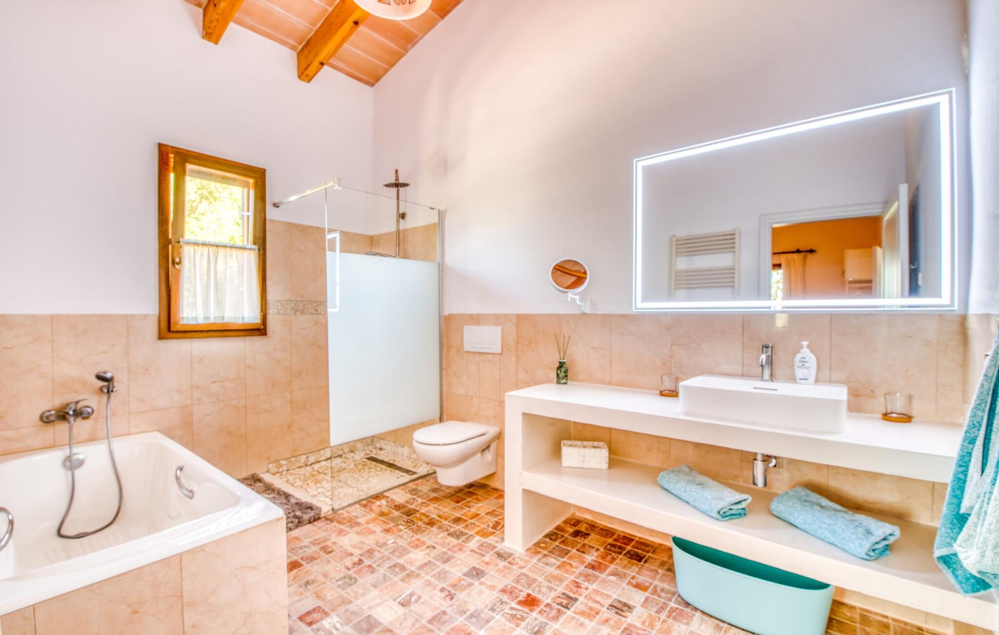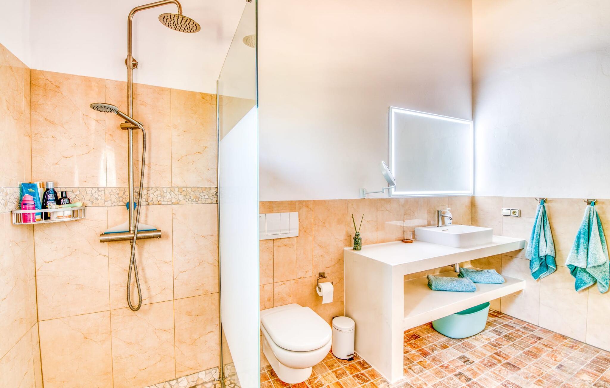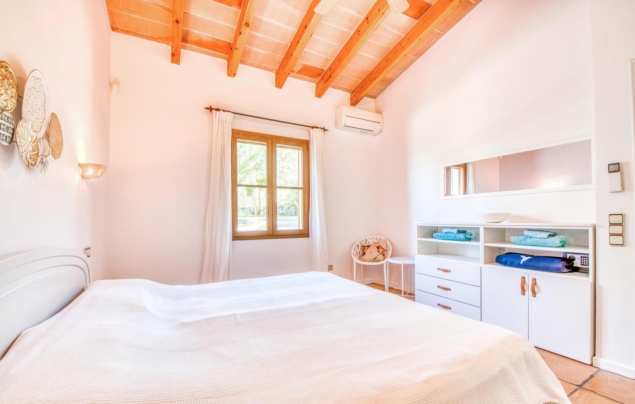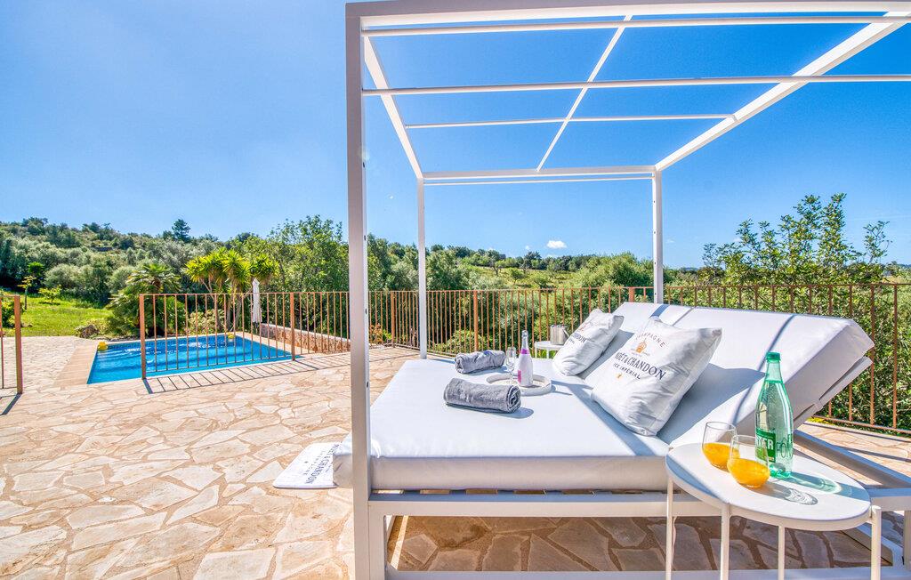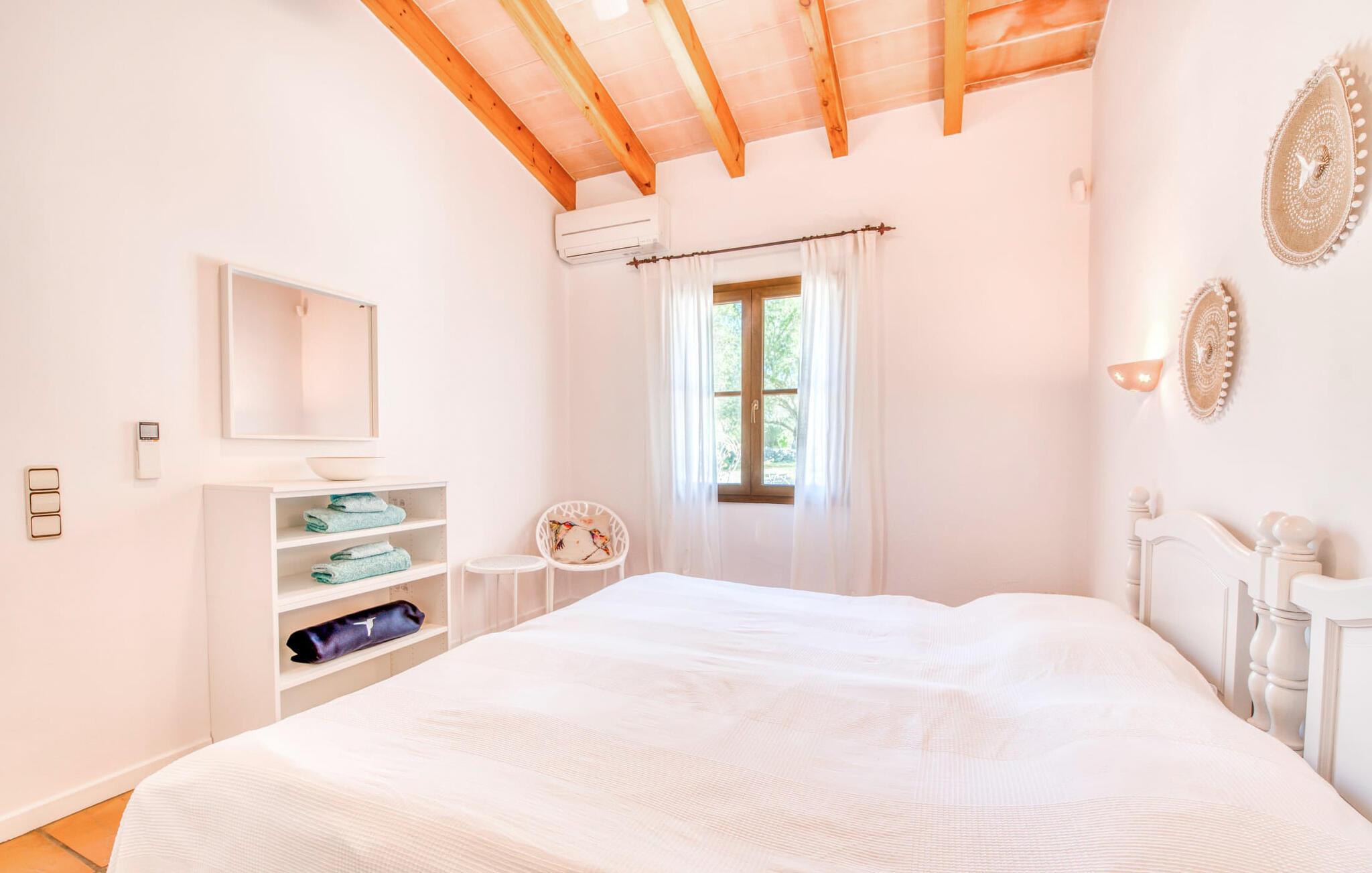 Drømmer I også om afslappende natur, bølgende bakker, duften af syd og en pause for jer selv og jeres familie? Så er I kommet til det rigtige sted hos Fincallorca og fincaen “El Colibrí”! Midt i det frodige middelhavslandskab på den østlige del af øen, ikke langt fra en typisk landbrugslandsby, opdag denne vidunderligt smukke ejendom i en kuperet, afsondret beliggenhed. Udeområdet fryder sig med den opvarmede pool, som er dekoreret med en bugtende mosaik. Over poolniveauet finder I komfortable liggestole med eller uden skyggefulde bambusparasoller samt en balinesisk dagseng til en siesta. På grund af bjergskråningens beliggenhed har I to overdækkede terrasser med direkte adgang til huset, hver med spiseplads og yderligere siddepladser. Forkæl jer selv med fornøjelsen af at lave mad sammen eller en afslappet BBQ og nyd tiden med familien i næsten meditativ stilhed og i harmoni med naturen. Uanset hvor I beslutter jer for at sidde, kan I nyde skønheden i Mallorcas frodige vegetation uforstyrret og uden forstyrrende påvirkninger. Interiøret i det smagfuldt renoverede landsted er også bemærkelsesværdigt smukt. Kombinationen af mallorcansk tradition med terracotta, træ og hvide vægge rundes af med overraskende dekorative accenter. Det åbne køkken og spiseplads, adskilt af en amerikansk tæller, suppleres af en rustik pejs og en komfortabel bænk. En trendy designersædeskal og en smuk hjemmekontorarbejdsstation inviterer jer til at blive hængende, især i den køligere sæson. Kombinationen af mallorcansk klassicisme, udsøgte møbler og de nyeste boligtrends kan også opdages i de fire airconditionerede soveværelser med store dobbeltsenge. Med tre stilfulde badeværelser (to af dem en suite) inklusive brusere (og nogle med badekar), kan to familier sprede sig. Stuen er sammen med det fjerde soveværelse placeret i kælderen og giver direkte udgang til den skyggefulde terrasse med stue og spisebord. Med “El Colibrí” kommer I fascinerende tæt på en ferie i et naturparadis! Den inspirerende stenbrudsfinca "El Colibrí" ligger i en smuk afsides beliggenhed nær Son Macià. Den smukke landsby ligger mellem Manacor og Calas de Mallorca. I kan gøre jeres indkøb i denne autentiske landsby, men selvfølgelig også på de ugentlige markeder i de omkringliggende landsbyer Portocolom, Felanitx eller Manacor. De smukke (naturlige) strande på østkysten kan nås på cirka 15 minutter i bil.
