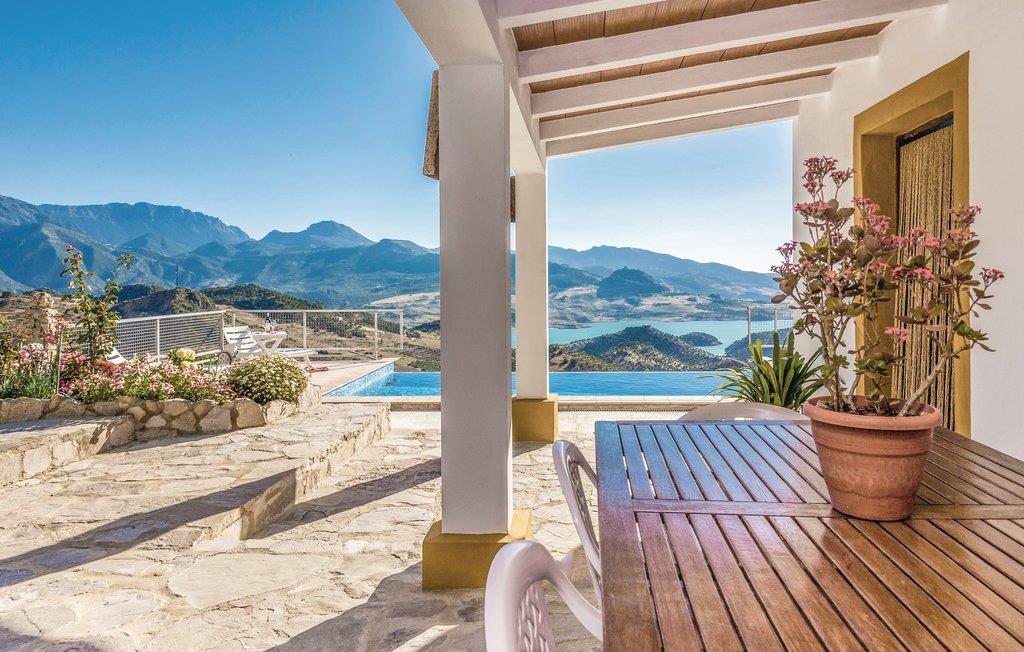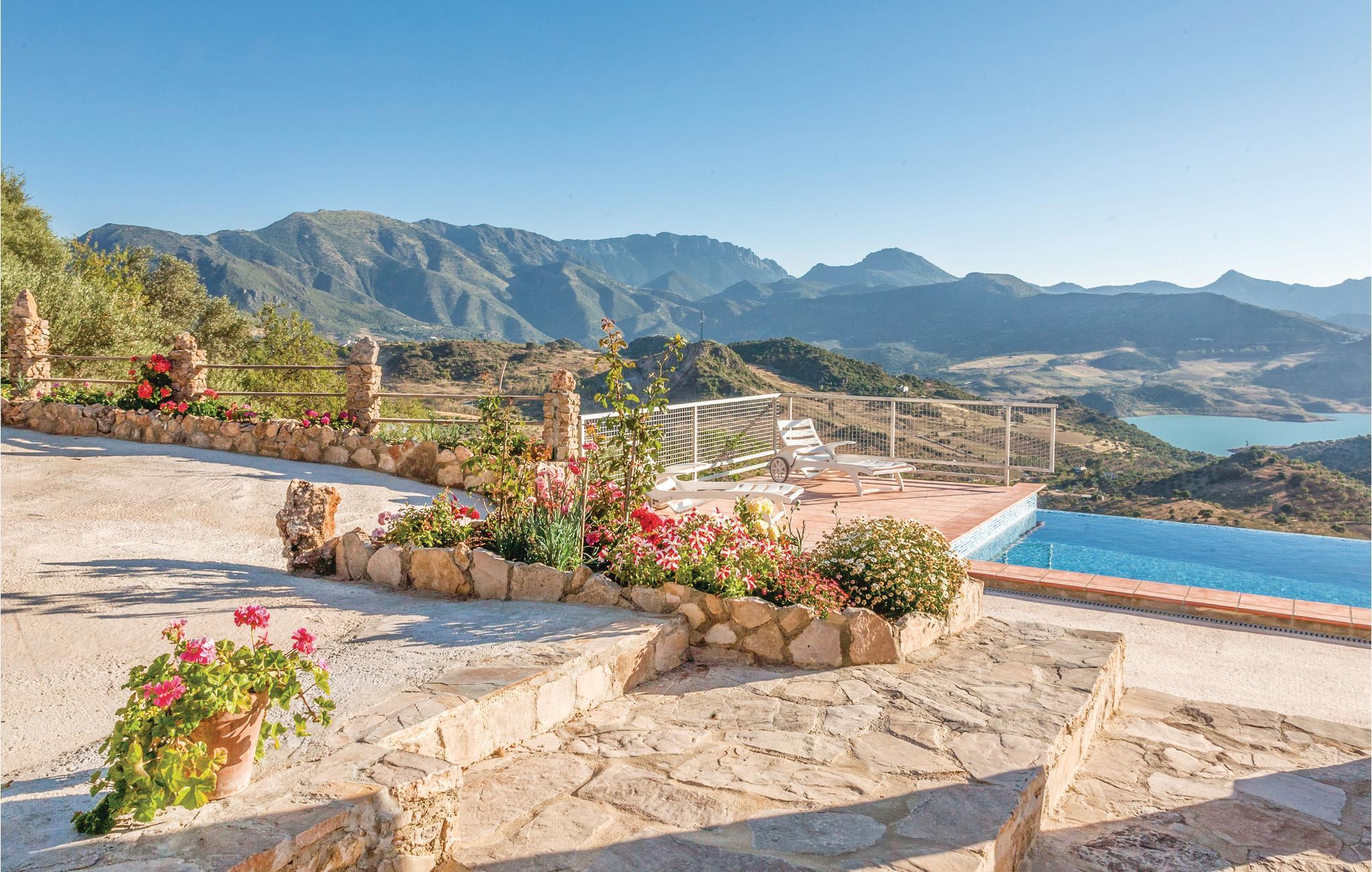 Kun få kilometer fra El Gastor tæt på Cadiz og kun 20 km fra Ronda, ligger dette fantastiske feriehus midt i et helt vidunderligt landskab. Huset kombinerer rustik, autentisk arkitektur med moderne stil. Straks når I træder ind på grunden vil I bemærke husets skønne atmosfære med dets traditionelle facade, den fine overdækkede terrasse og ikke mindst den lækre infinity pool, hvorfra I vil kunne nyde en helt fantastisk panoramaudsigt til omgivelserne og den smukke opdæmmede sø ved Zahara. Her kan I nyde nærværet til naturen og virkelig slappe af. På forskellige terrasser kan I solbade, grille eller bare læse en bog i skyggen. Grunden er på hele 2.000 m² og er helt inhegnet så både børn og husdyr kan lege uforstyrret.