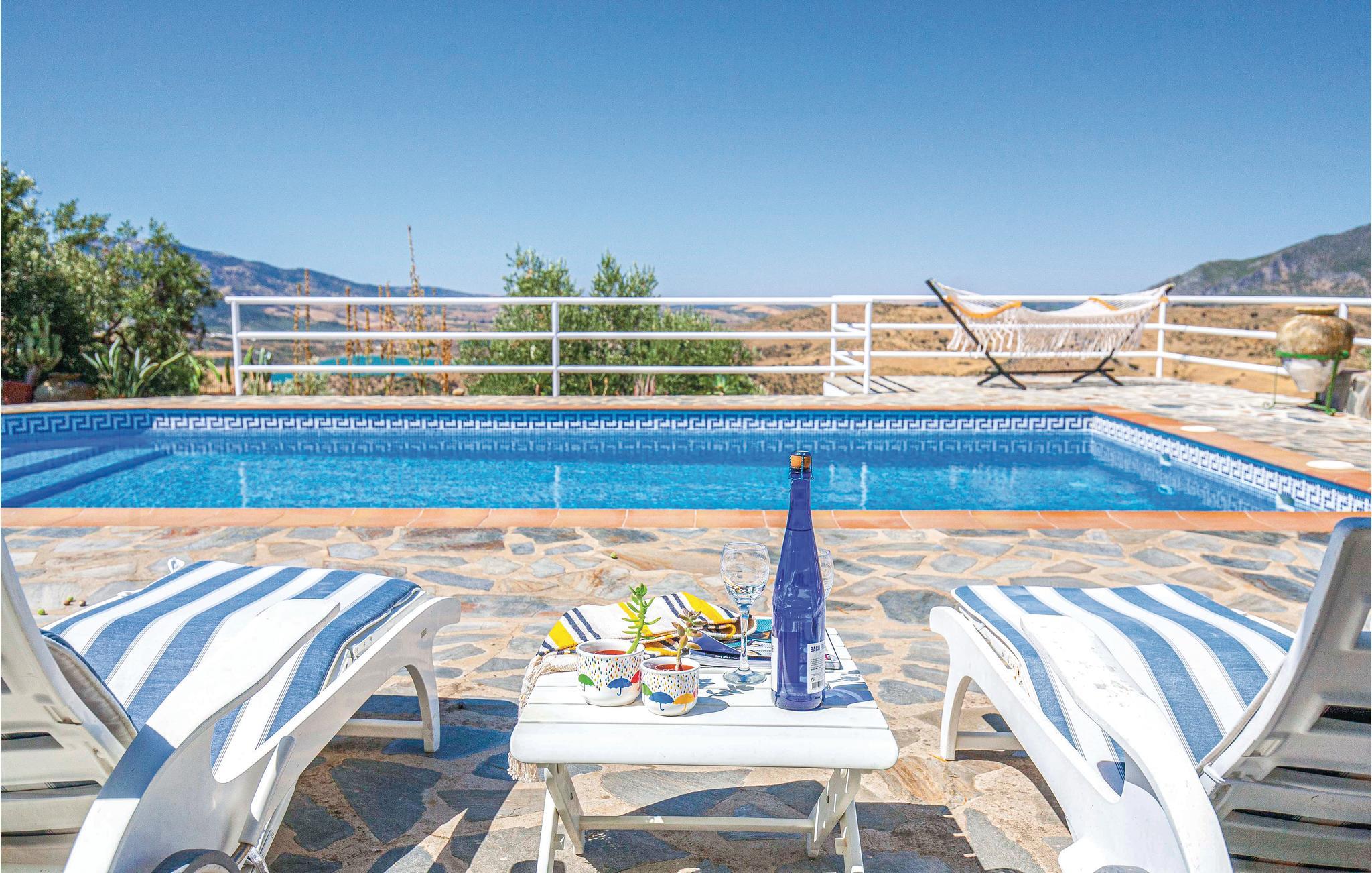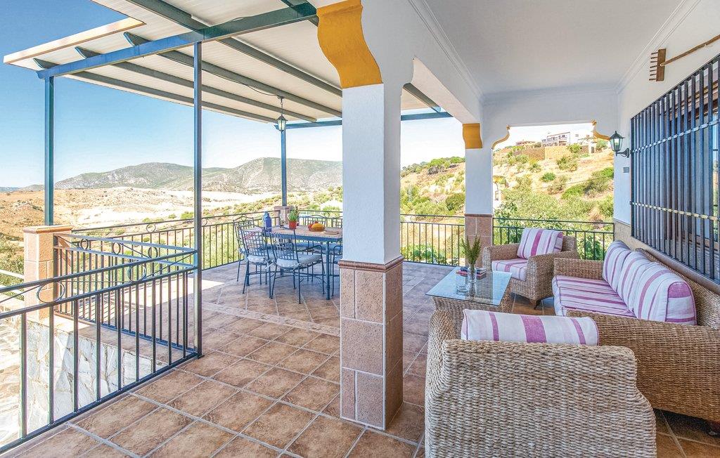 Huset er velegnet til 6 personer og 1 kæledyr. Der er 3 soveværelser og 1 badeværelse. Dette hus er indrettet i en indbydende stil og med kærlighed. Møbler af høj kvalitet sikrer et behageligt ophold. Huset har et stort fritidsområde med bordtennis og grønne områder til udendørs aktiviteter samt et område med en stor grill og brændeovn. Den store pool tilbyder et vidunderligt bjergpanorama og udsigt over Zahara-El Gastor-reservoiret. Den bageste del, i form af en balkon, skaber en meget speciel atmosfære, fordi du føler dig, som om du er midt i naturen.