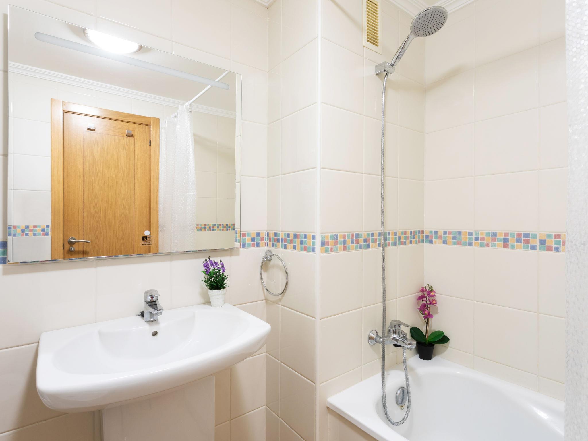 2-room apartment 60 m2 on 2nd floor. Partly renovated in 2020, practical and comfortable furnishings: living room with 1 sofabed (129 cm, length 200 cm), TV. Exit to the terrace. 1 room with 1 bed (160 cm, length 200 cm), fan. Open kitchen (4 ceramic glass hob hotplates, microwave, freezer, electric coffee machine). Bath/bidet/WC. No heating option. Terrace furniture. Facilities: washing machine, iron, hair dryer. Internet (WiFi, free). Please note: suitable for families. Non-smoking house. 1 small pet/ dog allowed. CTIC / 48074 / 2020 // Reg. Nr.: ESFCTU0000380170006936920000000000000CTIC/48074/20206