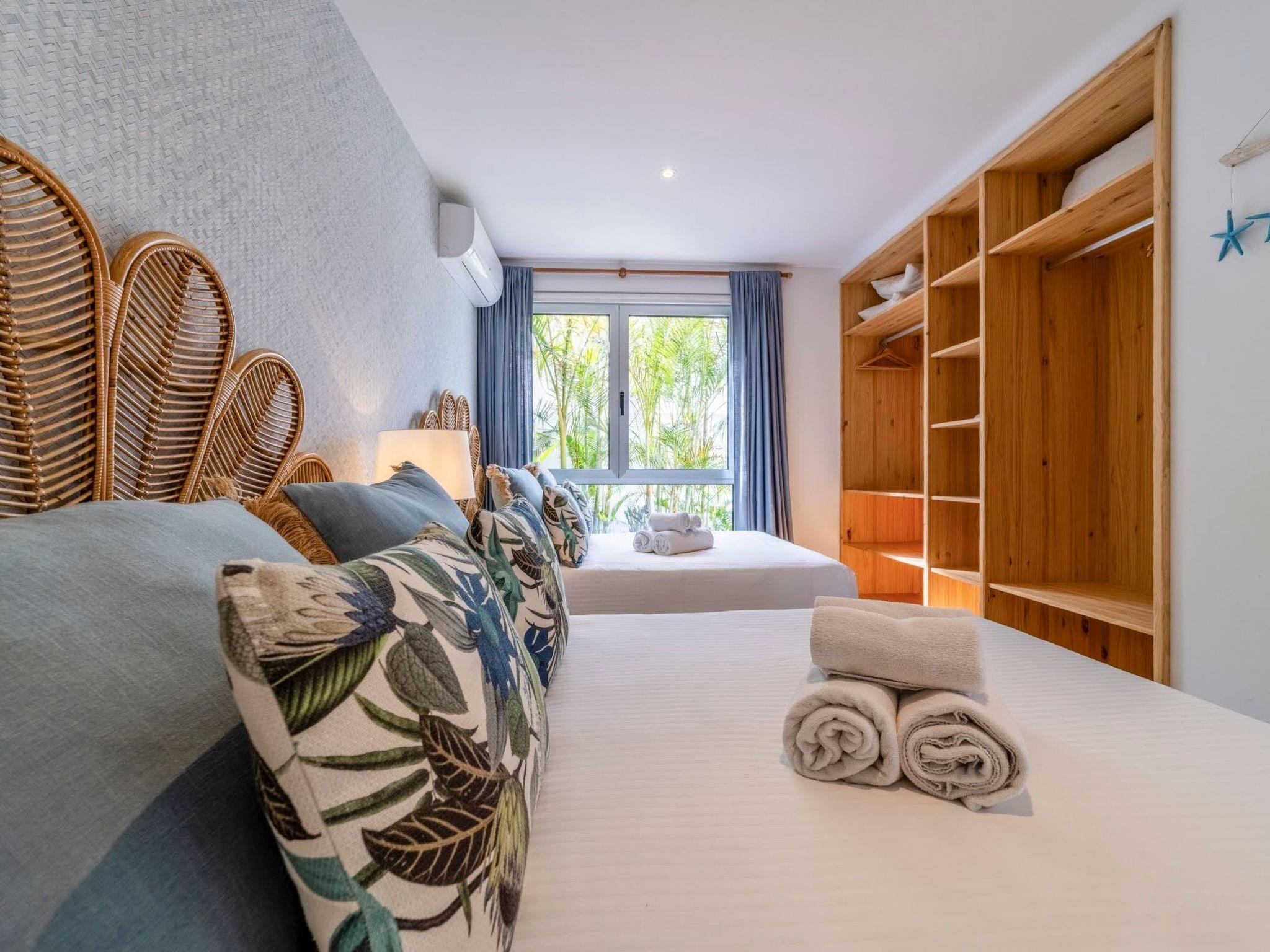 Fully equipped open kitchen. King and queen size beds. Wooden dining table for 8 people. Spacious natural wood wardrobes. Air conditioning in all bedrooms and living room. Ecological wooden ceiling fan in the suite. Private bathroom. Luxury rain showers, sinks and taps. Luxury cotton bed linen, dressing gowns, towels and beach towels. Eco-wood style furniture and decor. Eco-friendly toiletries. Free Wi-Fi. 65" and 55" Smart TVs with cable/satellite and international European channels and premium sports channels. Bluetooth audio. System: Cot, extra cot mattress and high chair. Washing machine and ironing set. Safe.