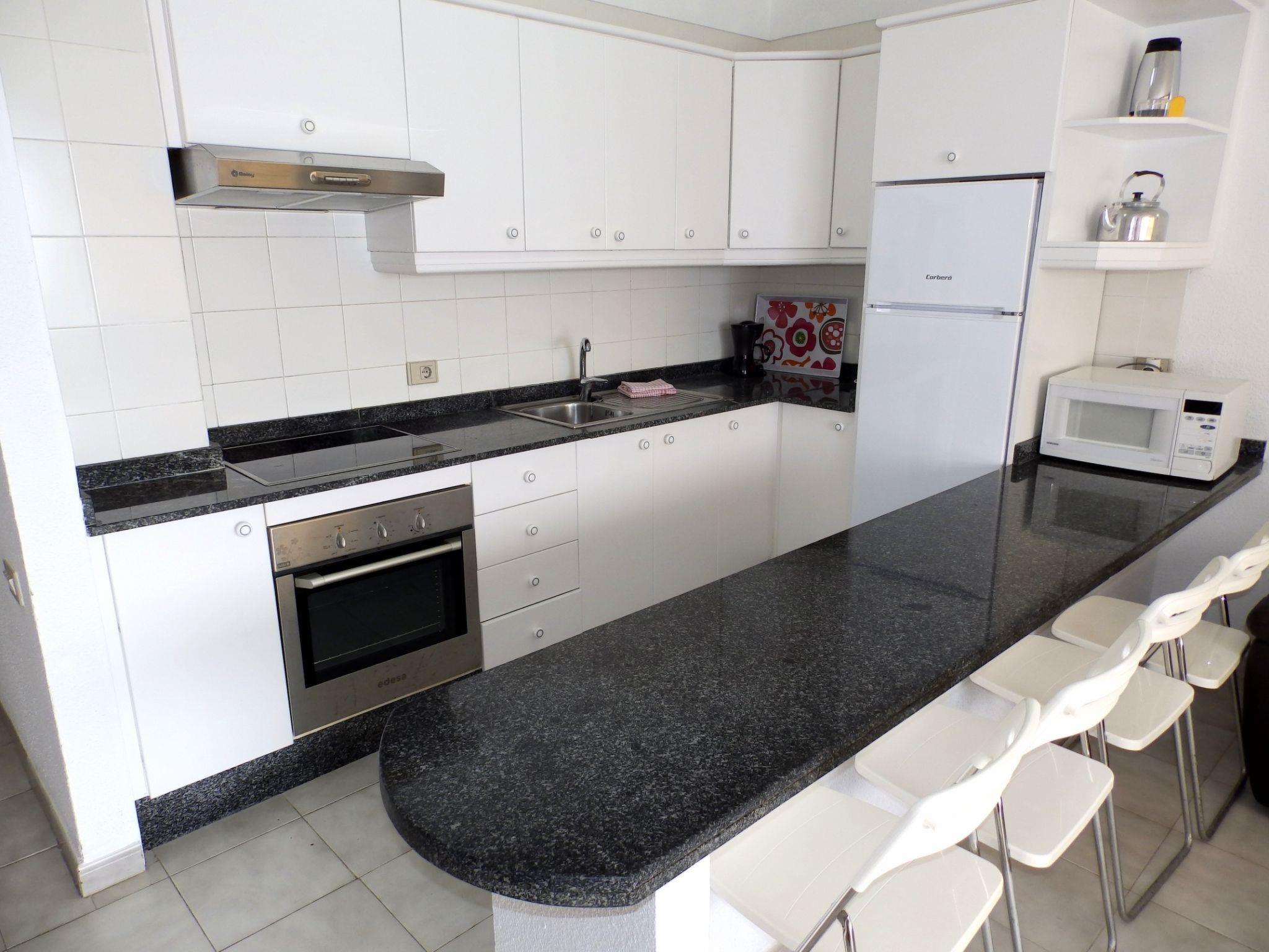 Discover this spacious and cosy 2-bedroom flat located in a privileged spot with sea views, which invites you to enjoy marvellous and spectacular sunsets from its terrace. Perfect for 4 people, this accommodation is located on the fourth floor of a quiet residential complex with lift and communal swimming pool, promising an unforgettable stay for families and couples looking for a quiet and different getaway.