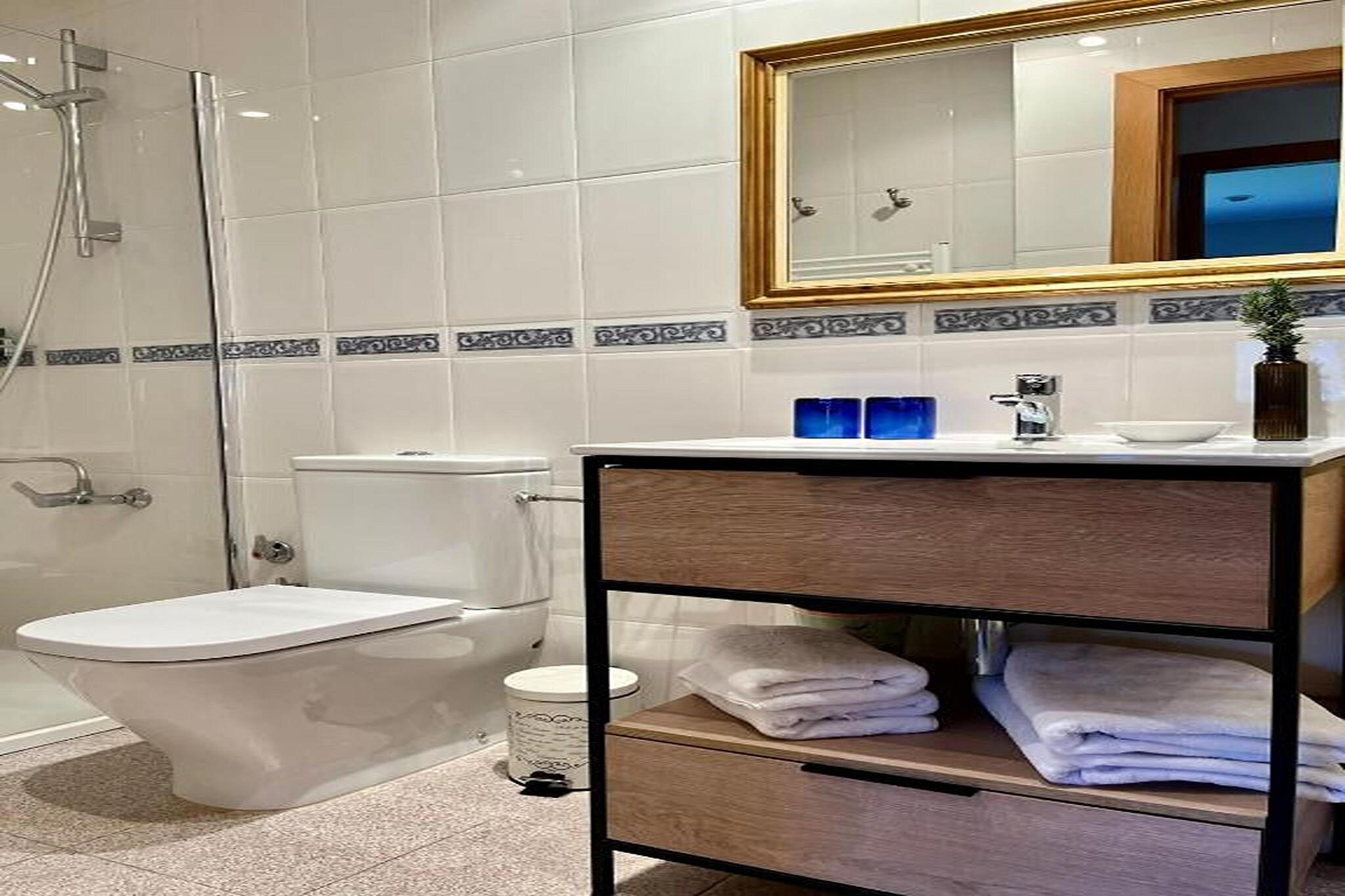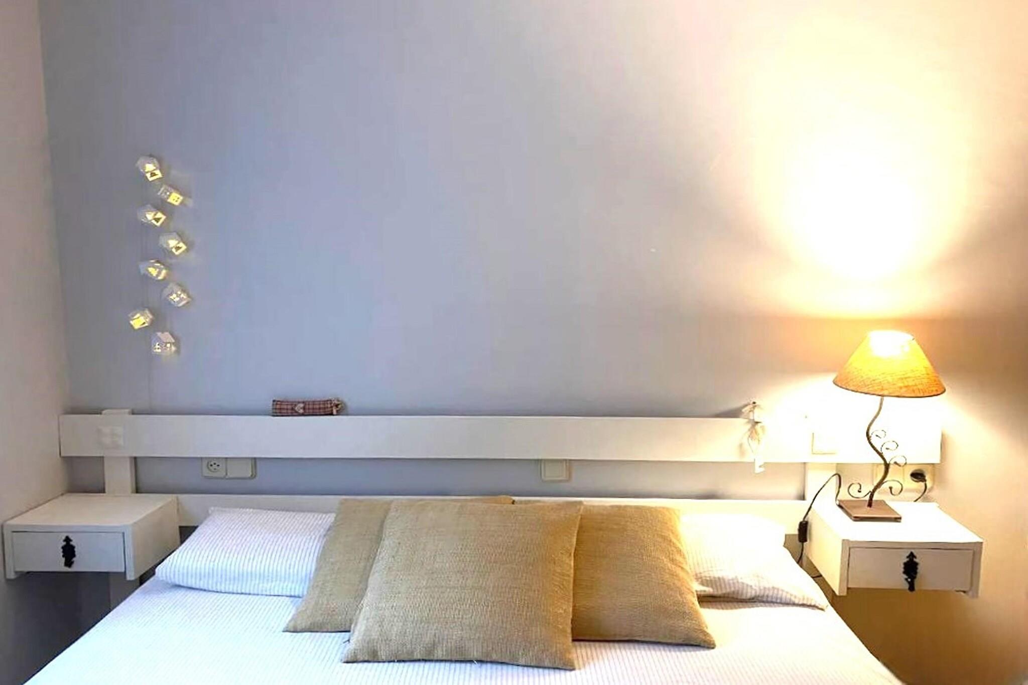 Stueetage: (Indgang , åbent køkken(kogeplade, elkedel, brødrister, emhætte, kaffemaskine, ovn, mikrobølgeovn, opvaskemaskine , køle-fryseskab, vaskemaskine, Saftpresser), stue / spisestue(dobbeltsovesofa, Fjernsyn(fladskærm), spisebord, pejs, sofahjørne), soveværelse(dobbeltseng), badeværelse(bruser, håndvask, toilet, føntørrer), varme, klimaanlæg) toilet(deles med andre gæster)(håndvask, toilet), loungerum(deles med andre gæster, adgang udefra), spisebord, terrasse, have, havemøbler, solstole, grill(trækul), parkering, Parasol, swimmingpool(deles med andre gæster, udendørs, opened from May upto and including Sep), fodboldmål, barnestol