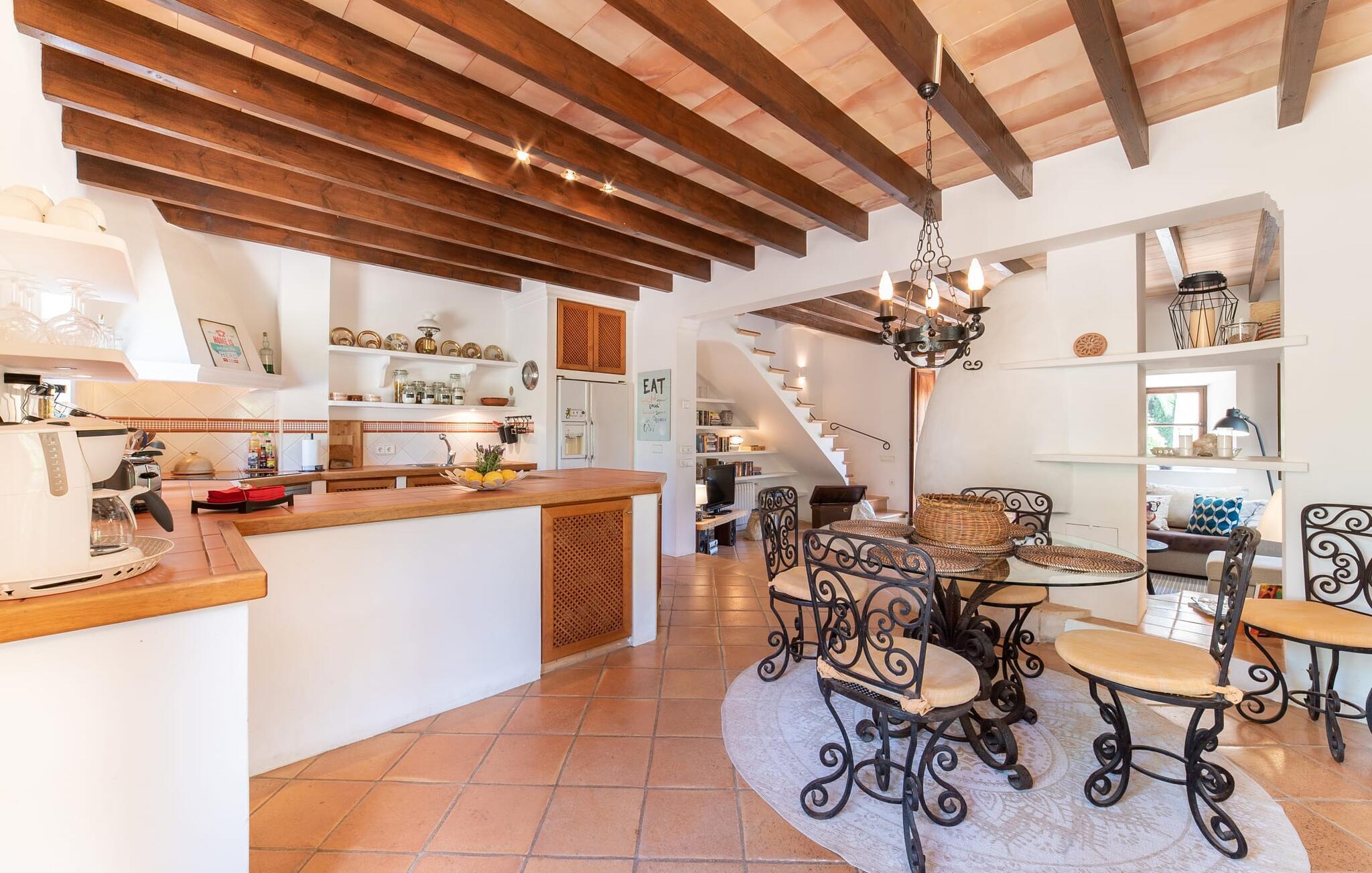 Fra det øjeblik du ankommer, vil du have, at din ferie skal føles som hjemme. Villa "El Nido" gør dette nemt for dig! Lidt skjult, men fed, kigger landsbyvillaen ud mellem palmetræerne for enden af en blind vej og forfører dig ind i det maleriske kompleks med sin uimodståelige charme. Rustikke naturstensstier fører gennem det store grønne område direkte til de frodigt beplantede haveterrasser ved huset. I den himmelske atmosfære, som det indbydende udendørs opholdsområde emmer af, kan du spise al fresco i middelhavsstil eller blot nyde idyllen efter din smag. At læse en god bog i en af kurvestolene på den overdækkede terrasse eller nyde en kølig drink på en liggestol i poolen er eksempler på afslappede fritidsaktiviteter, der findes i overflod her. Du kan også vælge et dejligt sted på den lille græsplæne foran den åbne terrasse. Den 8 m lange pool, som er unikt placeret i haveområdet, er tilgængelig via få trin. Den lille terrasse omkring poolen og pavillonen danner et helt separat udendørsområde og giver dig mulighed for at dase af hjertens lyst og samtidig nyde tiden alene. Det er det perfekte sted til aftengrill. Alt du skal gøre er at tænde den og placere din friske, lækre mad på den. Vores konklusion om udendørsområdet: fantastisk villastil i landsbybeliggenhed med naboer! Den upåfaldende udlejer bor i den anden halvdel af den store dobbeltvilla, hvor alle har egen indgang og privat område. Op til fire personer vil finde plads nok til at slappe af i dette hus med 100 m² boligareal. De lyse stuer er ikke stilistiske, men derimod hyggelige, hvilket her kommer til udtryk på en behagelig måde. Traditionelle elementer som synlige bjælker, trævinduer og -døre og frilagte mursten harmonerer i nogle områder med moderne elementer som den svævende trappe på øverste etage eller den åbne runde pejs. Denne iøjnefaldende bålplads fungerer som en dekorativ rumdeler mellem stue og køkken/alrum. Det store, fleksibelt anvendelige areal i stueetagen danner hjertet i husets indretning og inviterer til afslapning med den behagelige sofa på den ene side, mens der på den anden side er fokus på kulinarisk velvære - forberedelse og spisning måltider sammen. Det rustikke køkken byder på alt hvad du behøver til hverdagens ferieliv. Derfra har du udgang til den overdækkede terrasse - hvilket er særligt praktisk på varme sommerdage, hvor du tilbringer det meste af din tid udendørs. På øverste etage er der to hyggelige dobbeltværelser og to badeværelser, hvoraf det ene er en-suite. Hvis der kun er to gæster til stede, forbliver det frontvendte soveværelse og et af badeværelserne lukket. Et andet soveværelse på denne etage er til privat brug og forbliver låst. S'Arraco er lille, men mægtig. Kirken har et usædvanligt ur, der ringer fem minutter før timen for at forberede beboerne på, at klokken ringer på timen. Frisk brød og aromatisk frugt kan købes i landhandelen, og der er et lille marked om lørdagen. Andratx og Port d'Andratx - hvor der er en stor dykkerskole - er hver omkring 10 minutter væk i bil. Kun omkring 900 meter fra fincaen, ved S'Arraco-rundkørslen, er der en fiskebutik, der er åben hele sæsonen, hvor du kan forsyne dig med kulinariske delikatesser eller spise på stedet. Fra Port d'Andratx har du mulighed for at tage en tur til den ubeboede klippeø Sa Dragonera og opdage den usædvanlige flora og fauna der. Nyd en vidunderlig dag på stranden, herunder i Camp de Mar eller Cala Egos. Hvis du er interesseret i at udforske nogle af øens kulturskatte, er der flere værdifulde destinationer i dette område. På en vandretur til ruinerne af et trappistkloster i La Trapa kan du komme helt tæt på det smukke bjerglandskab i denne vestlige del af øen. Lidt forhøjet over S'Arracó ligger den velholdte villa “El Nido”, som er omkring 120 år gammel. De idylliske terrasser og middelhavshave tilbyder masser af privatliv, mens de stadig er tæt på en typisk mallorcansk landsby med en række faciliteter såsom restauranter, tapasbarer, et apotek og et lille supermarked. Dette er et Fincallorca feriehus.