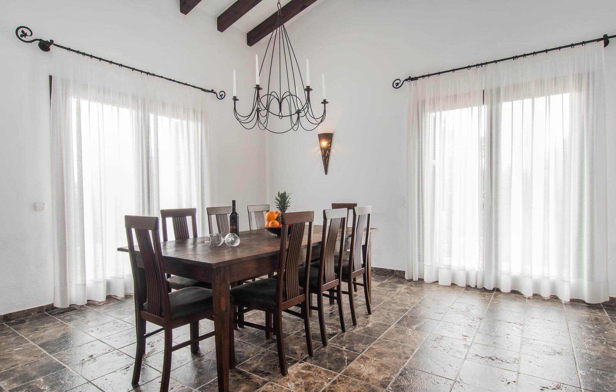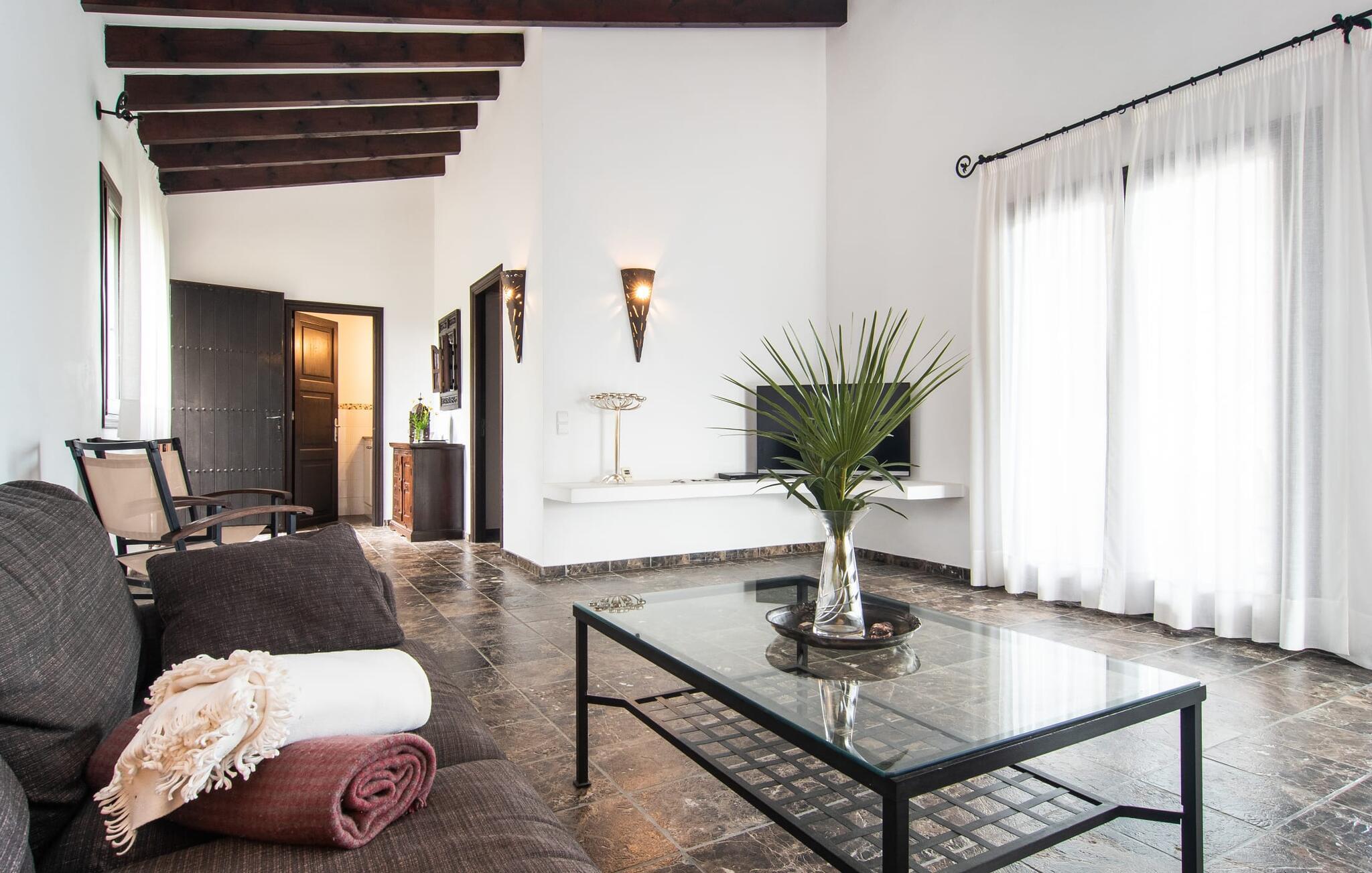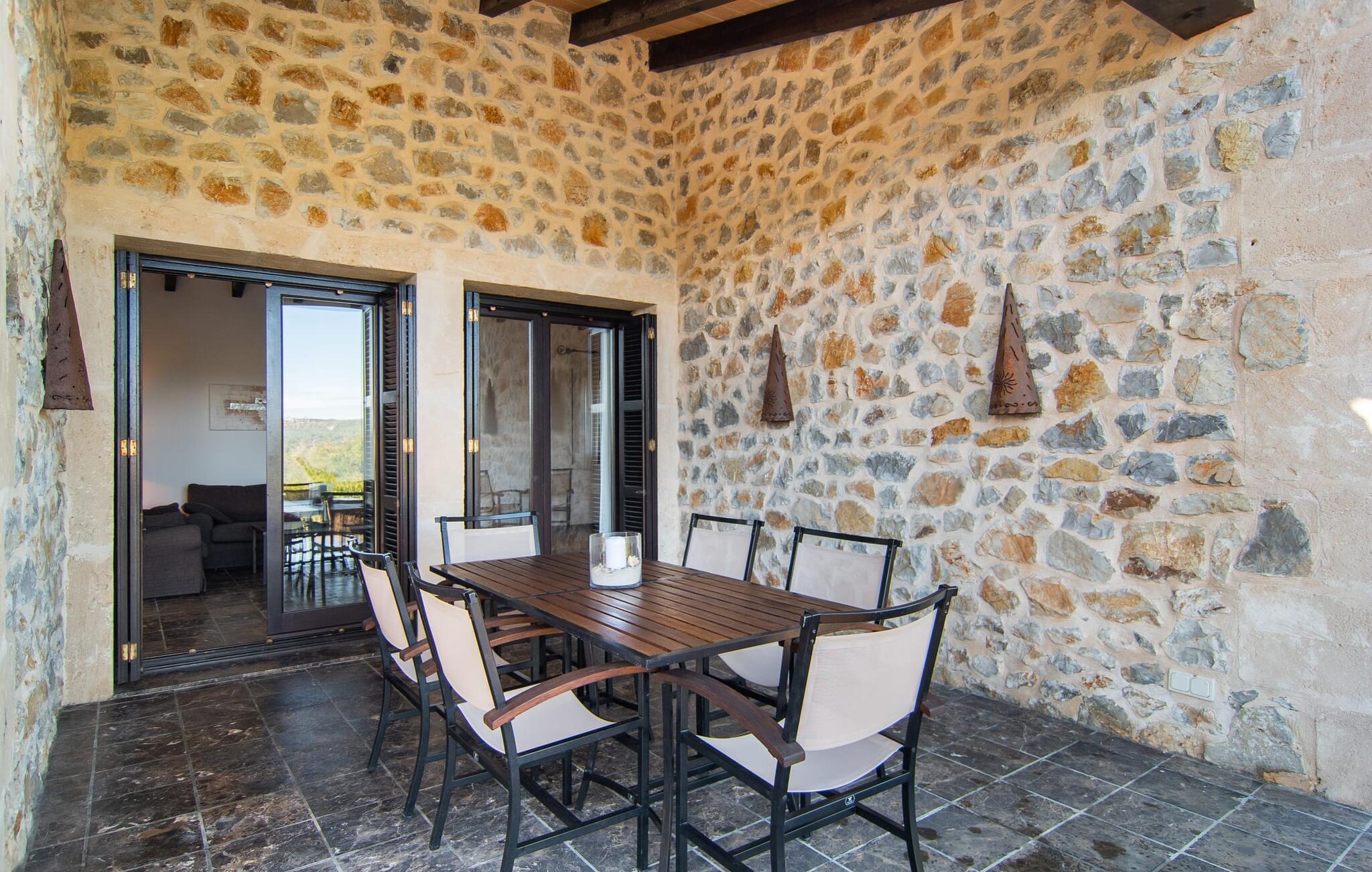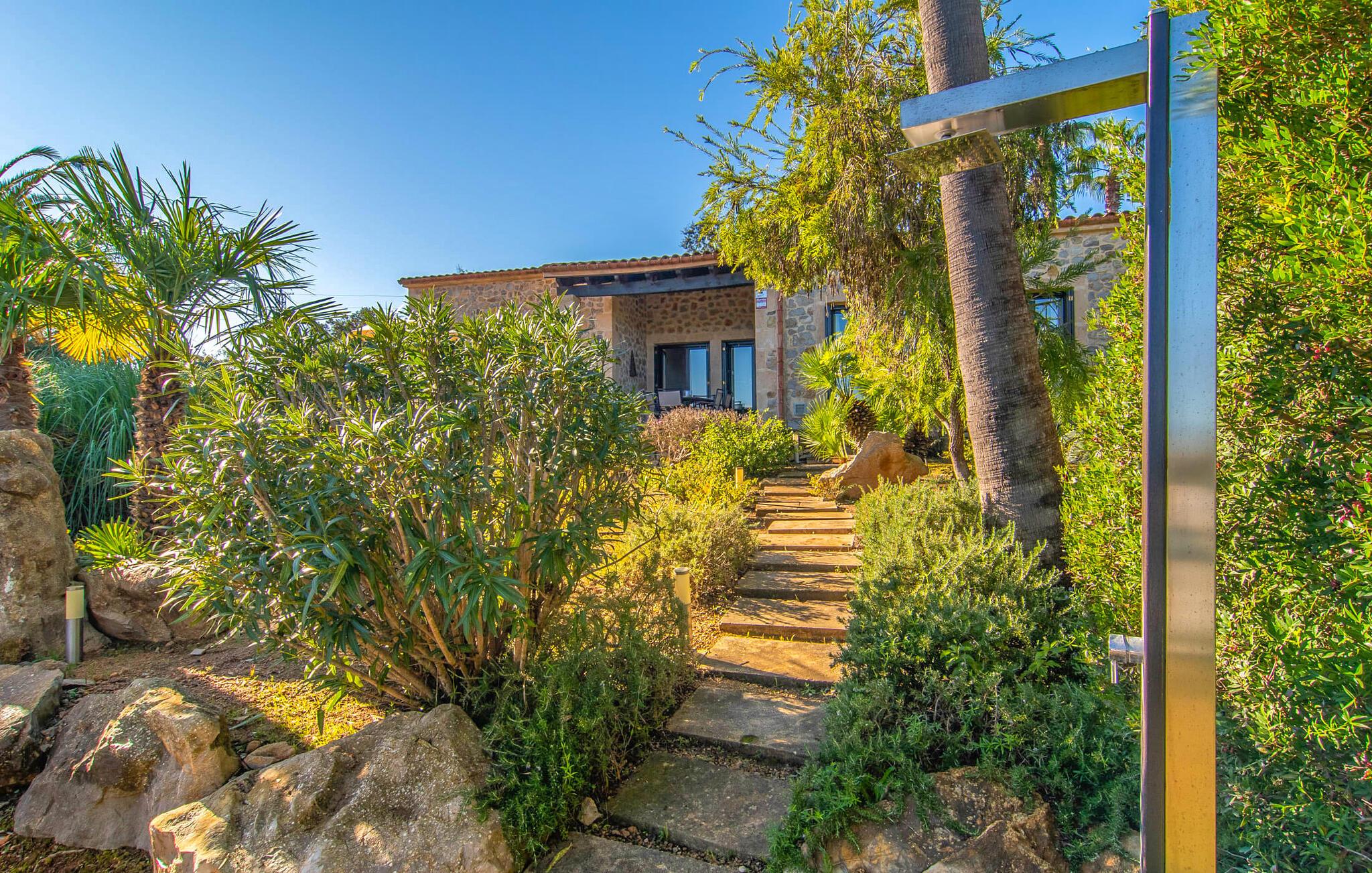 Denne komfortable finca i stueetagen er ideel for børnefamilier eller flere par, der rejser sammen og byder jer velkommen midt i den magiske middelhavsnatur. Lad jer inspirere af den vellykkede blanding af rustik elegance og moderne bekvemmeligheder, som det lyse og smagfulde interiør forkæler jer med. Glæd jer til at lave mad sammen i det rummelige, åbne køkken og hyggelige filmaftener i den indbydende sofa.