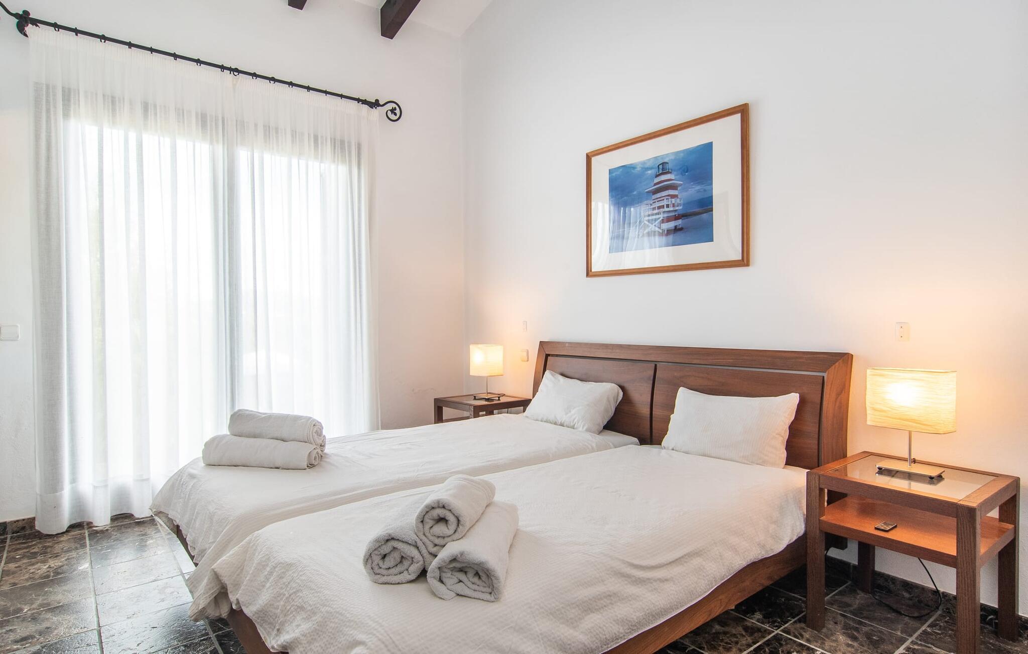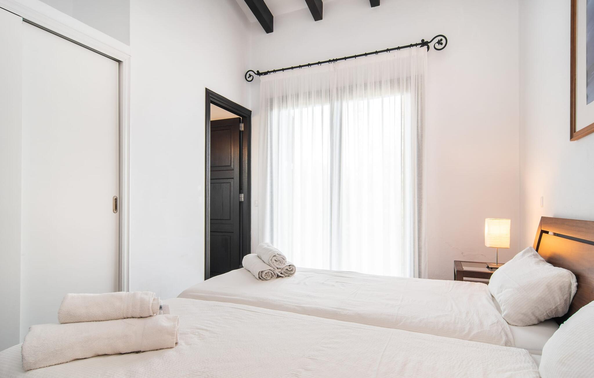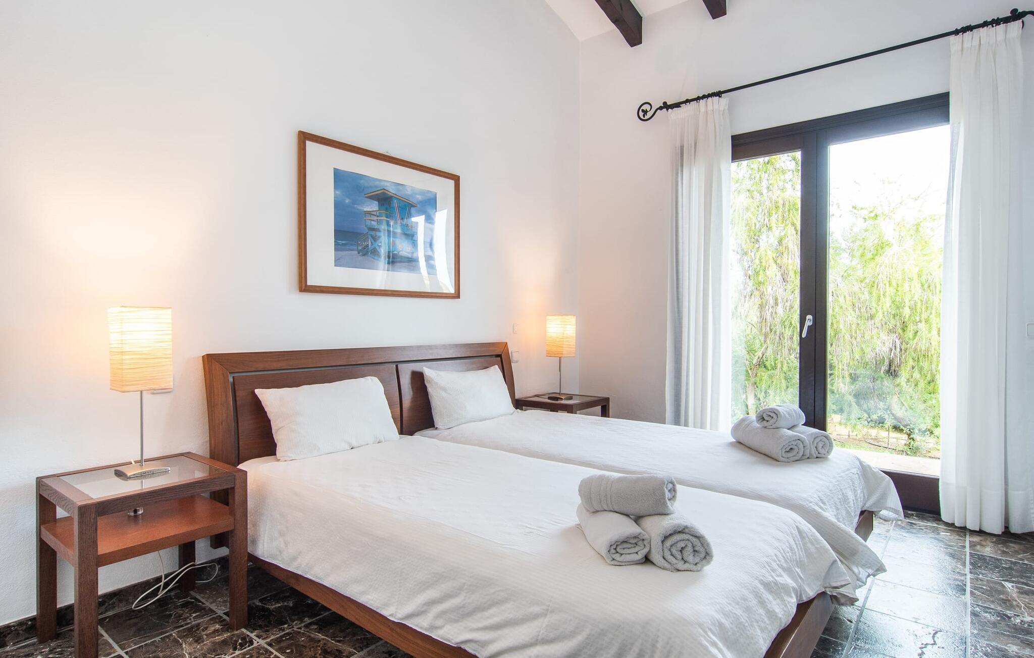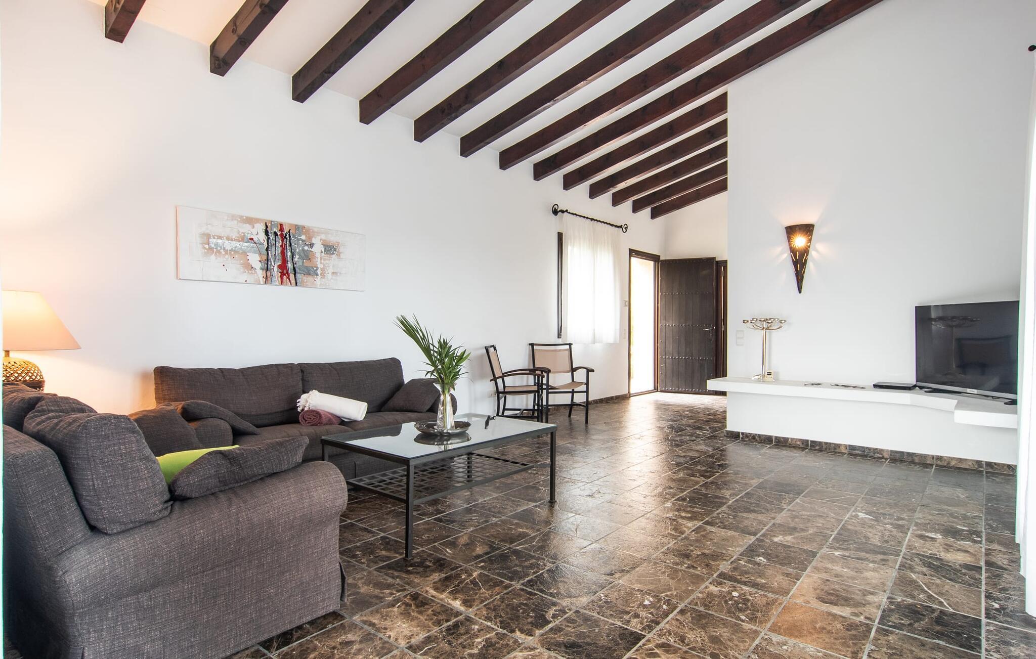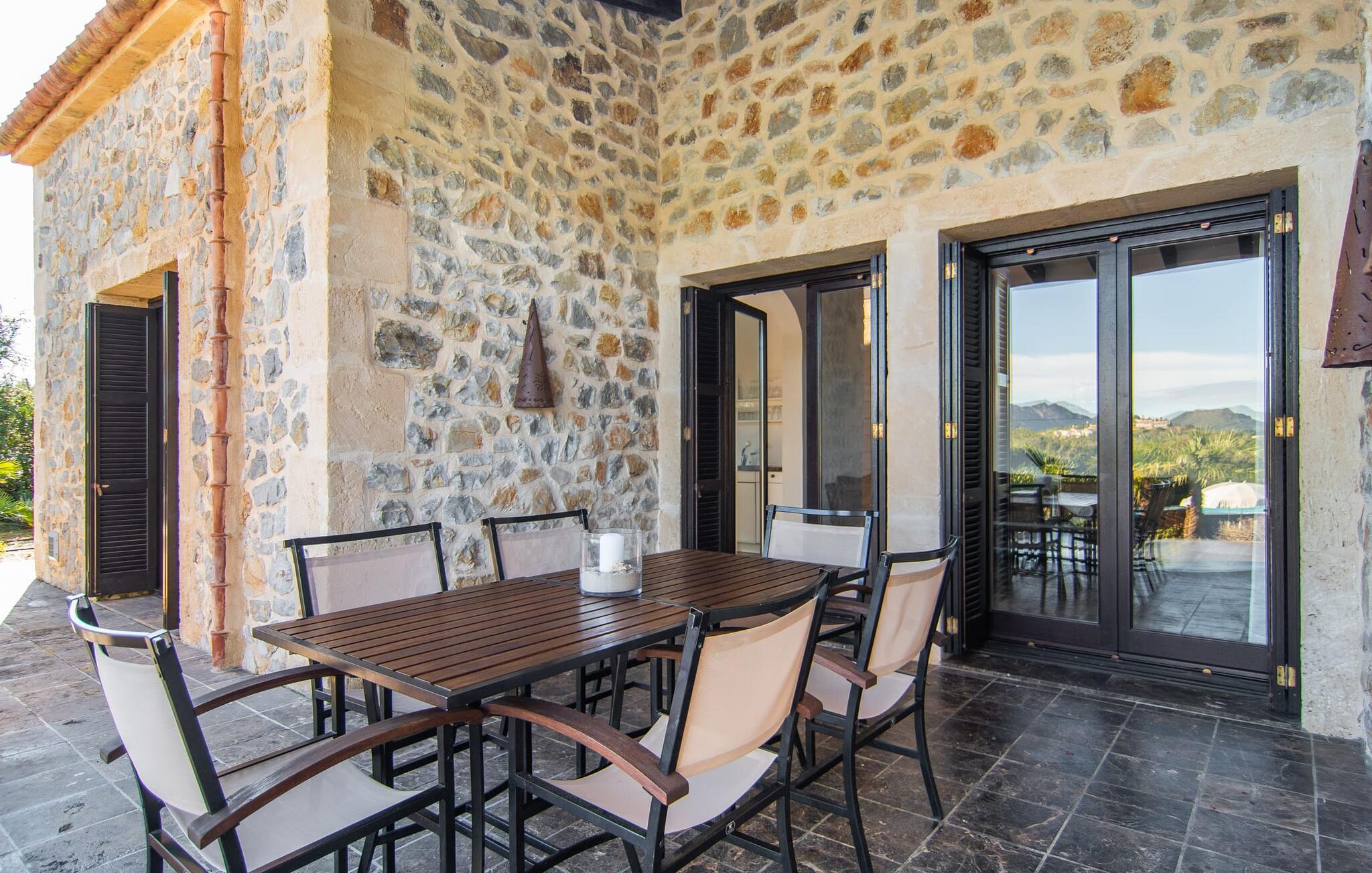 Denne komfortable finca i stueetagen er ideel for børnefamilier eller flere par, der rejser sammen og byder jer velkommen midt i den magiske middelhavsnatur. Lad jer inspirere af den vellykkede blanding af rustik elegance og moderne bekvemmeligheder, som det lyse og smagfulde interiør forkæler jer med. Glæd jer til at lave mad sammen i det rummelige, åbne køkken og hyggelige filmaftener i den indbydende sofa.