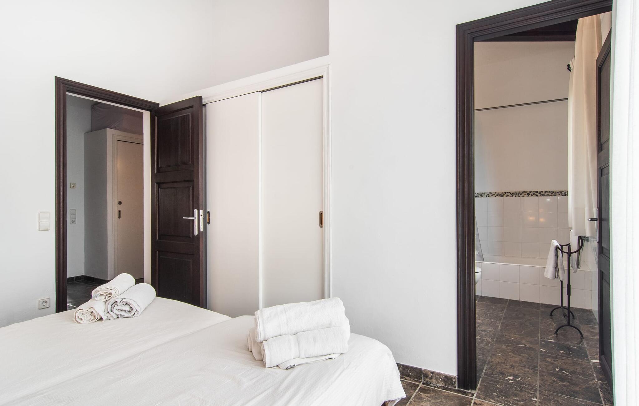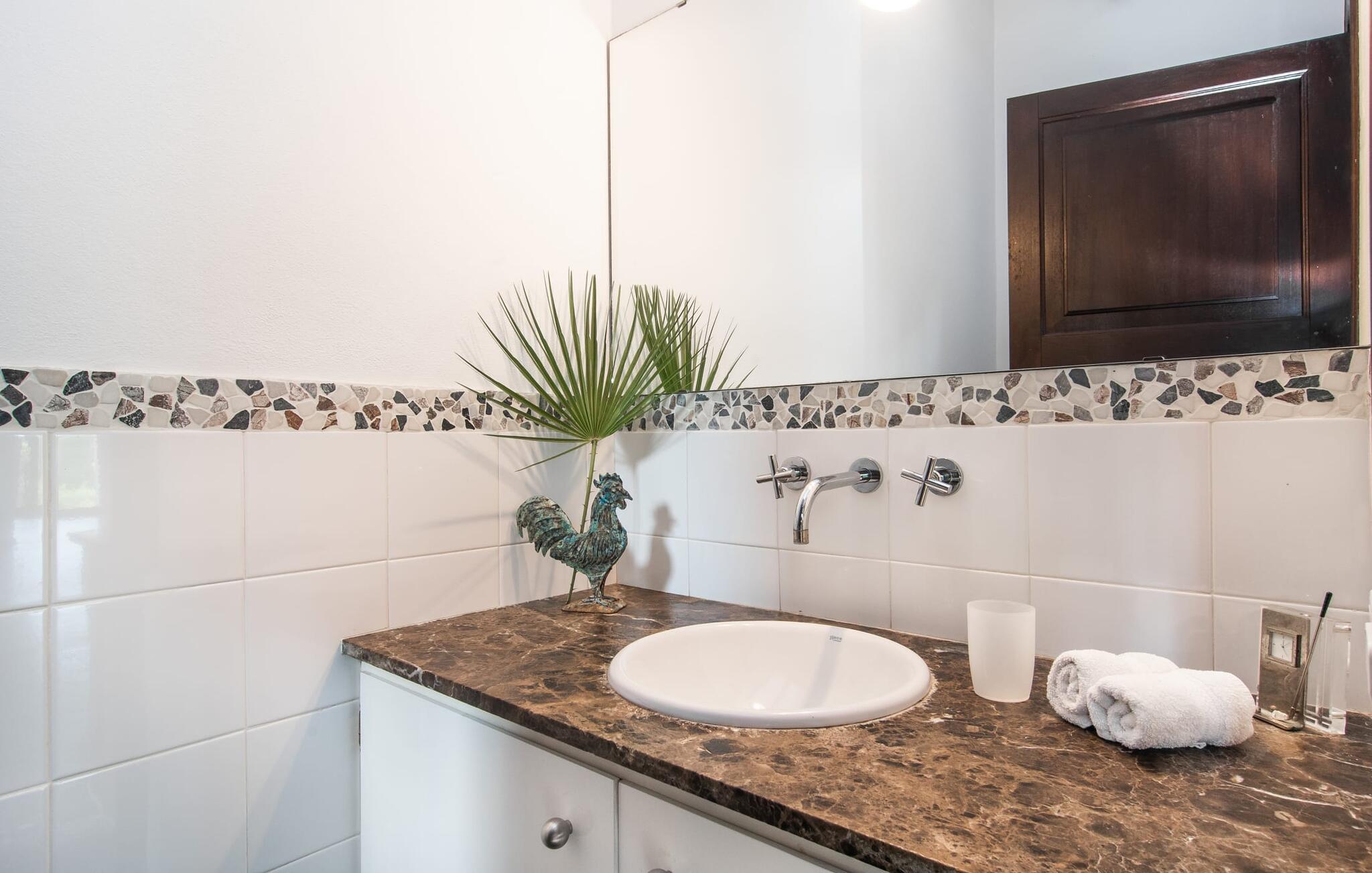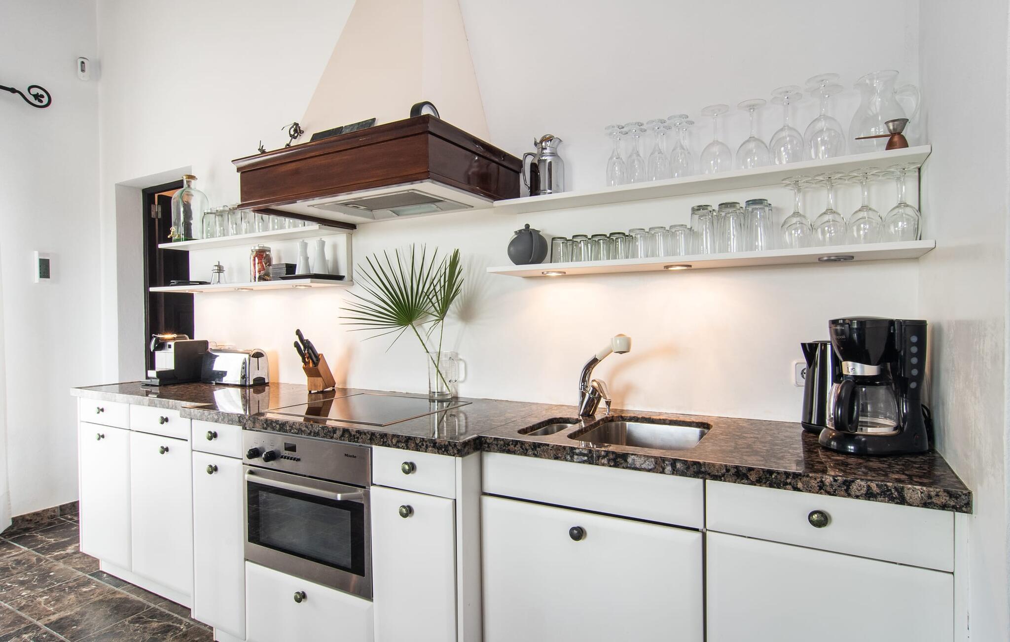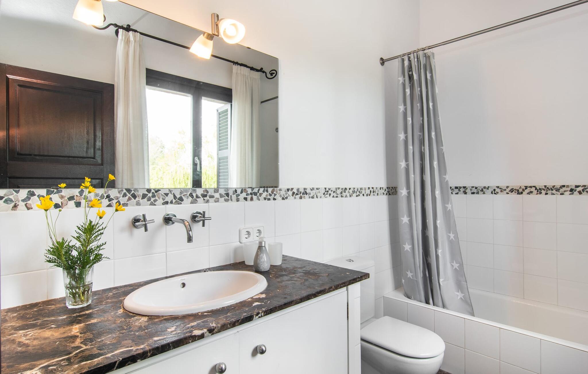 Denne komfortable finca i stueetagen er ideel for børnefamilier eller flere par, der rejser sammen og byder jer velkommen midt i den magiske middelhavsnatur. Lad jer inspirere af den vellykkede blanding af rustik elegance og moderne bekvemmeligheder, som det lyse og smagfulde interiør forkæler jer med. Glæd jer til at lave mad sammen i det rummelige, åbne køkken og hyggelige filmaftener i den indbydende sofa.