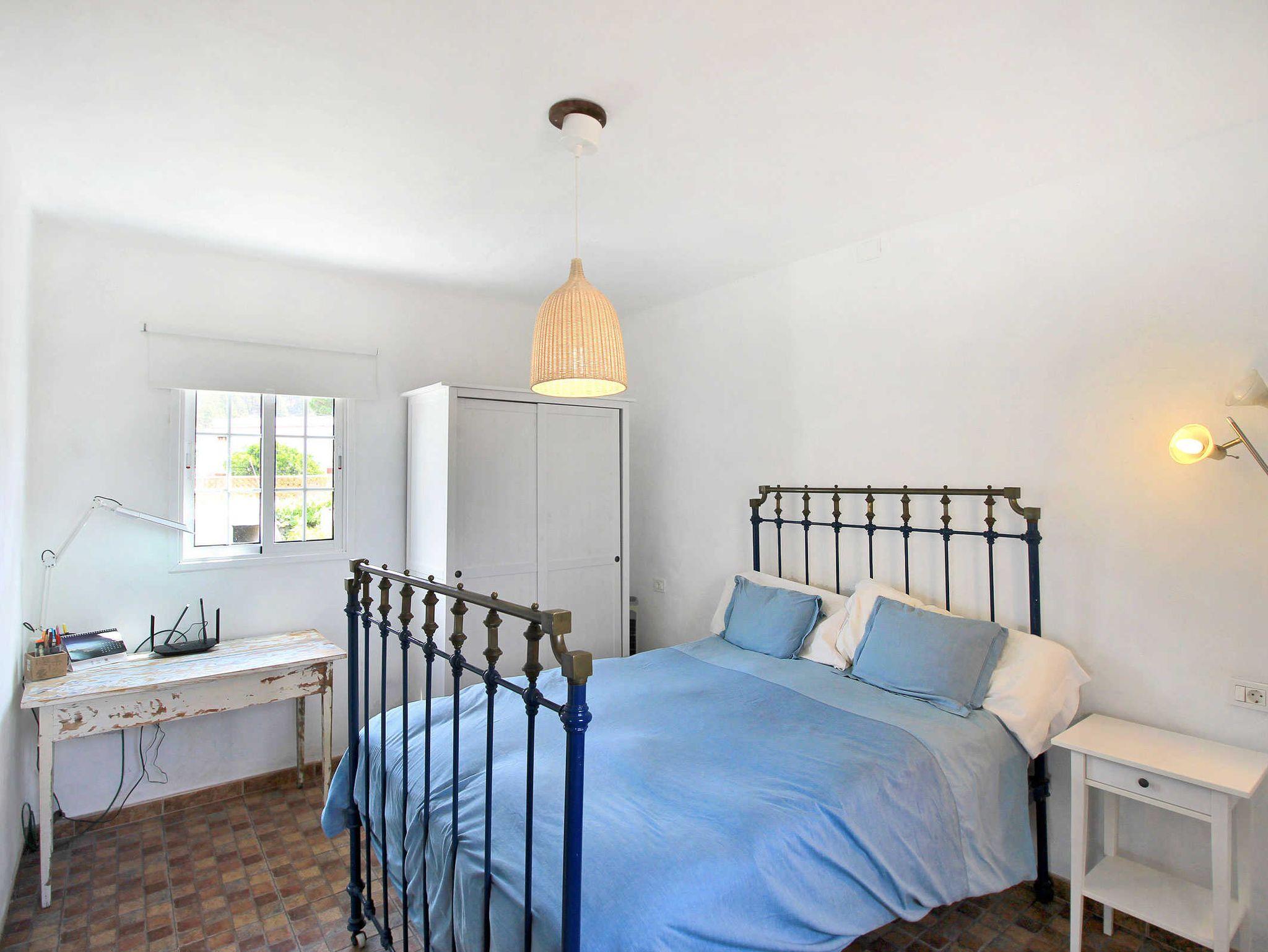 Ein französisches Bett mit antikem, aufgearbeitetem Eisenrahmen, typisch für La Palma und ein beliebtes Sammlerobjekt, komplettiert den rustikalen Chic der Einrichtung. Bitte beachten Sie, dass das Bett nur 1,90 m lang ist und mit dem Rahmen auch am Fußende abschließt. Zusätzlich befinden sich im Raum ein Nachttischchen, eine Stehlampe, ein Garderobenständer, ein nicht allzu großer Kleiderschrank sowie ein Regal mit einigen Schubläden zur Unterbringung Ihrer Reisegarderobe und eine Schuhbank, auf der Sie bequem sitzend in Ihre Wanderstiefel oder Flip-Flops schlüpfen können ? je nach Vorhaben. Ein Schreibtisch vor dem Fenster dient zusätzlich als Ablage oder Arbeitsfläche. Ein Stuhl steht hier aus Platzgründen nicht. Bei Bedarf bedienen Sie sich bitte am Esstisch.