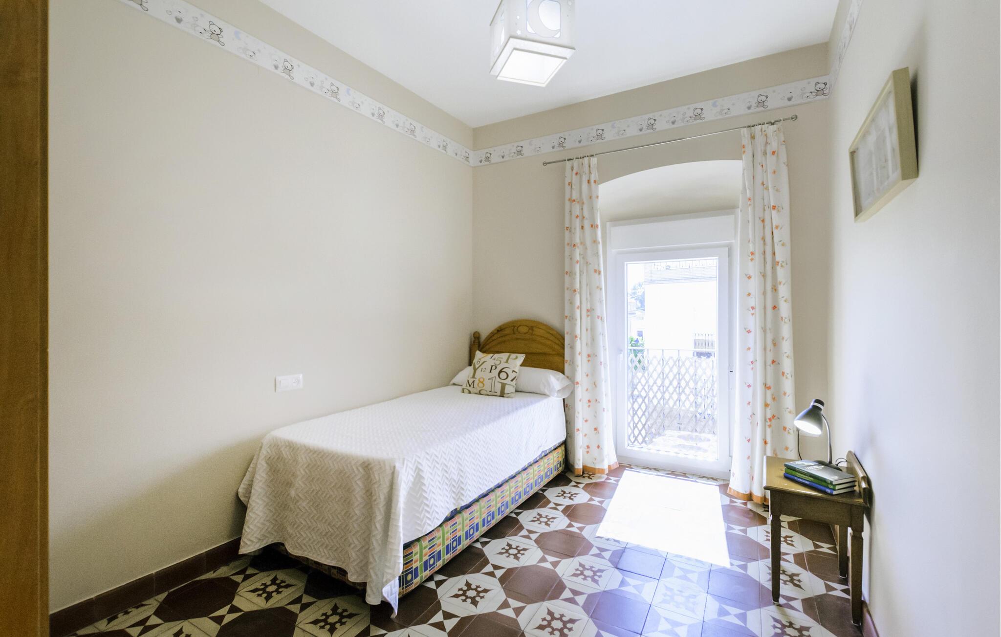 Lad jer betage af den andalusiske livsglæde, der udstråler fra dette autentiske hus, og del den indbydende atmosfære med venner eller familie, mens I udforsker regionens skatte. Fremstil lækre tapas og spis i den farverigt flisebelagte spisestue over et glas vin. Kig i det lille bibliotek efter en spændende bog, eller stream jeres yndlingsserie, mens I finder det behageligt i den store stue.