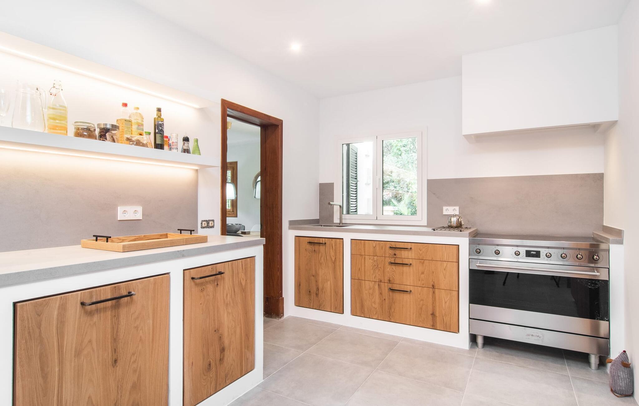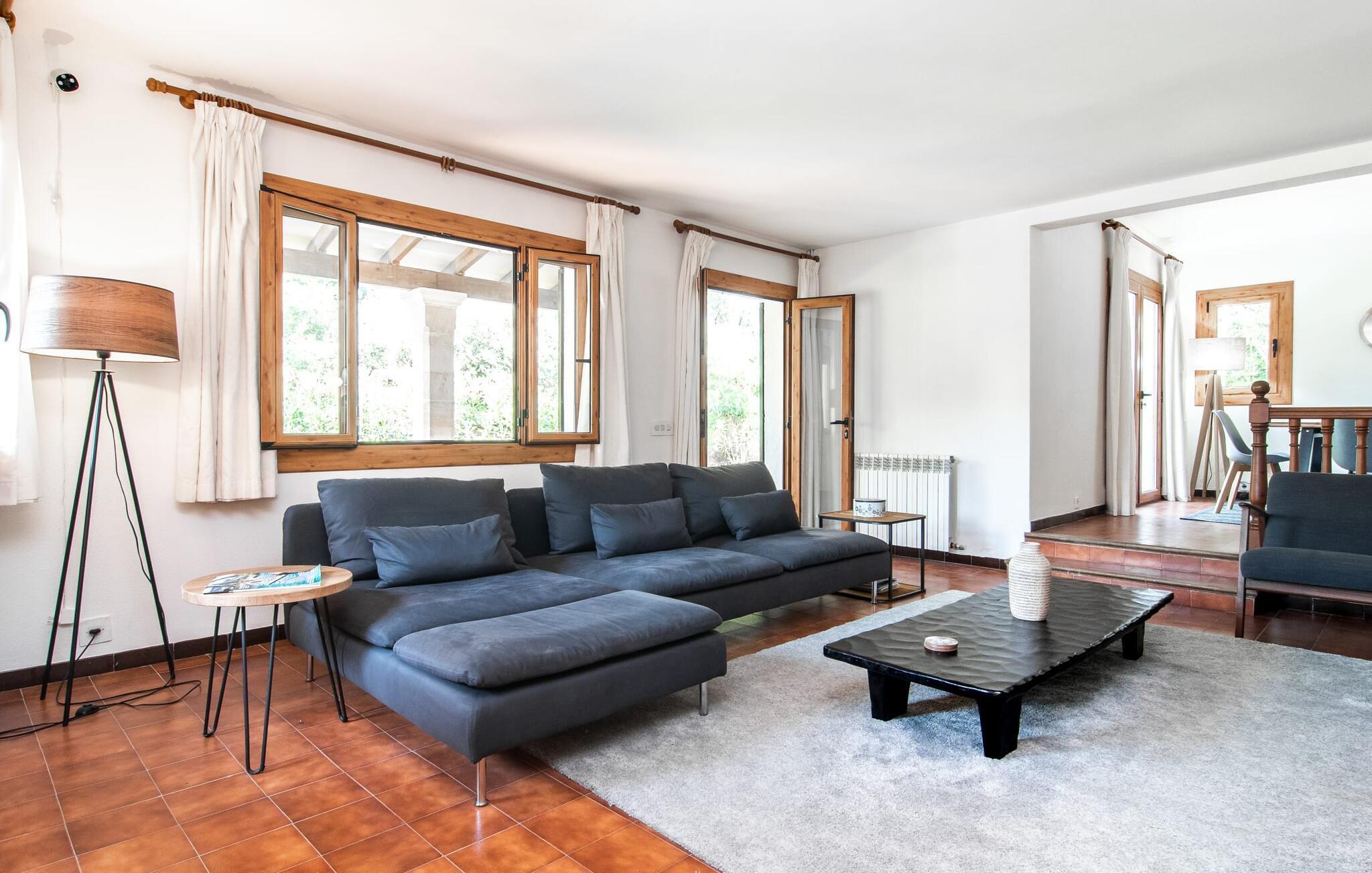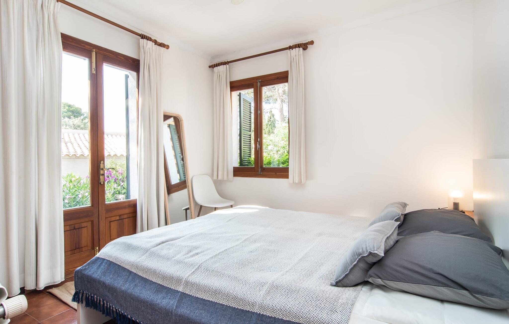 Villaen "El tulipán blanco" i den nordøstlige del af Mallorca ligger på en lukket havegrund. Det er kendetegnet ved en rummelig solterrasse og en smuk, lavvandet pool. For dem, der foretrækker at bade i havet, er der to børnevenlige sandstrande i gåafstand. I haven kan du spille fodbold, og der er en basketballkurv. I tilknytning til huset er der en hyggelig gæstehave med muret grill og mobil grill. Sommerhusets indretning har en god planløsning og rummelige værelser med masser af naturligt lysindfald. Stuen er indrettet med en komfortabel sofa og moderne siddepladser. 1970'ernes charme er bevidst bevaret her og skaber en hjemlig atmosfære. To trin oppe er der en lys, venlig spisestue med adgang til et rummeligt, fuldt udstyret køkken med en anden spiseplads. Et andet stort værelse, velegnet som spisestue, har udgang til terrassen. De tre dobbeltværelser er meget rummelige og udstyret med garderobeskabe og aircondition. Takket være skodder kan de mørklægges helt for at nyde afslappende siestaer i den varme årstid. Et af soveværelserne har eget badeværelse. Der er desuden separat badeværelse med bruser og vaskerum i stueetagen. Villaen ligger i et velholdt boligområde på halvøen Victòria i den nordøstlige del af Mallorca. To børnevenlige strande ligger henholdsvis 3 og 5 minutter væk i bil. De kan også nemt nås til fods på 15 minutter. Middelalderbyen Alcúdia med gode indkøbsmuligheder ligger 4 km væk. Den lange sandstrand i Alcúdia-bugten ligger 10 minutters kørsel derfra. Dette er et Fincallorca feriehus.