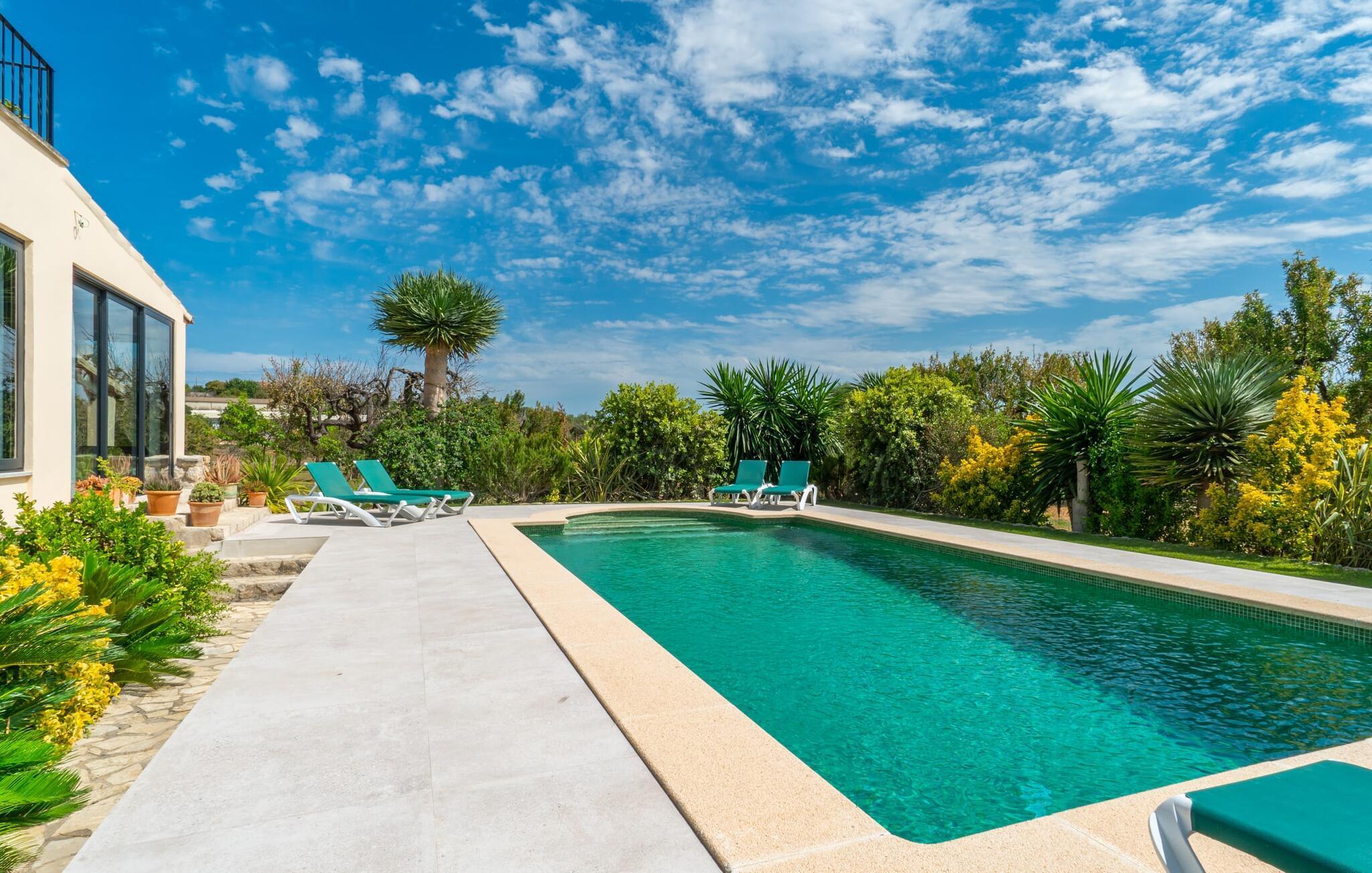 Omgivet af frodig, typisk middelhavsvegetation med oliventræer, palmer, kaktusser og farverige blomstrende planter besøger vi den charmerende, rustikke villa "Els Ametllers" på kanten af Plà de Mallorca. Plà er det grønne område i centrum af øen - en usædvanlig central beliggenhed, hvorfra større byer som Inca er let tilgængelige. Den smukke villa og dens store terrassearealer har en vidunderlig rolig beliggenhed, væk fra stress og jag og alligevel tæt på byen. Du kan køre dertil for at hente alt, hvad du har brug for på daglig basis. Her finder du supermarkeder og om torsdagen et anbefalet ugentligt marked, der er typisk for øen. Der er barer og restauranter spredt langs gågaden i Incas gamle bydel. Da Inca har gjort sig bemærket som et center for sko- og læderhandel, kan du købe kendte produkter fra kendte mærker til overkommelige priser på markedet og i outletbutikker. Sørg for at besøge markedshallerne på Carrer Miquel Duran, som er åbne alle dage undtagen søndag. Den lækre duft af mallorcanske oliven, mandler og citrusfrugter vil omslutte dig fuldstændigt. Da Plà er meget populær blandt cyklister, er den rummelige villa også ideel til en gruppe sportsentusiaster eller atleter, der rejser sammen og deres familier - også selvom sidstnævnte gerne vil planlægge deres dage lidt anderledes. Fra villaen kan du nemt planlægge et varieret ferieprogram. Du kan besøge den nordøstlige kyst med din lejebil, mulige destinationer omfatter Alcúdia-bugten eller de populære strande ved Son Serra de Marina, Playa del Muro eller Can Picafort. Tag en omvej gennem Tramuntana-bjergene. Fra villaen kan du fange en vidunderlig udsigt over dens foden. Hvis du kører gennem Tramuntana-bjergene, skal du sørge for at besøge maleriske byer som Valldemossa eller Deìa i vest. Der kan også siges meget om selve den vidunderligt beliggende villa “Els Ametllers”. Vi kan især godt lide det udvendige område af villaen. Ikke alene er den azurblå pool, omgivet af en naturstenterrasse og let tilgængelig via trapper, virkelig fantastisk; De mange udendørs siddemuligheder er også imponerende. Grundlæggende kan man sige, at opholdsrummene strækker sig udad via den murede terrasse. De mange bænke er vidunderligt arrangeret som en balustrade på kanten af terrassen. Lysgardinerne i varme beige toner giver skygge, hvis det er nødvendigt. Et glasbord med komfortable stole giver en fantastisk udendørs spiseplads. Den store terrasse byder på så meget plads, at der også er plads til et køligt loungesæt ved siden af det historiske, murede springvand. Der er en lille "table-pour-deux" til rådighed til din morgenkaffe. Over denne skønne terrasse er en stor solrig altan i samme størrelse. Der er endnu et opholdsområde med 4 stole, velegnet til afslapning om aftenen eller til soldyrkere i løbet af dagen. Herfra kan du komfortabelt nyde udsigten over den vidunderligt grønne Plà og bjergene. Interiøret i den 2-etagers villa passer harmonisk med husets rustikke, landlige stil og dette fantastiske område. Kraftige træmøbler med en antik karakter er designet til solid komfort. Den store, åbne stue er udvidet til at omfatte en spiseplads. Det lyse køkkenområde har et fuldt udstyret trækøkken. Elkedel, brødrister, kaffemaskine, opvaskemaskine og mere - alt hvad du behøver til en afslappende ferie er tilgængeligt, så du er godt rustet til at gennemføre din selvforplejningsbeslutning. På øverste etage af den elegante villa er der en anden stue, som er oversvømmet med lys takket være flere vinduer. Komfortable siddepladser under synlige træbjælker kan findes i det lyse værelse med smukke dekorative genstande såsom et vævet tæppe og billeder i stort format. Soveværelserne er alle tilstrækkeligt udstyret til 2 personer og har hver en dobbeltseng eller 2 enkeltsenge. Der er 3 badeværelser, også moderne i design, tilgængelige for gæster. Huset er derfor ideelt for en gruppe på op til 8 personer, der ønsker at tilbringe tiden i et sommerhus tæt på naturen, men stadig godt forbundet. Vi hos Fincallorca ønsker dig en varieret og afslappende aktiv ferie. Denne rustikke villa "Els Ametllers" er beliggende i en smuk naturlig beliggenhed på Plà de Mallorca, det frodige grønne område i centrum af øen, nær byen Inca. Takket være den centrale, men meget rolige, frodige grønne beliggenhed, kan du gøre dine daglige indkøb hurtigt. De smukke strande på den nordlige halvdel af øen er omkring 20-25 km væk fra den hyggelige villa, for eksempel den 16 km lange kæde af strande, der begynder i Alcúdia-bugten. Dette er et Fincallorca feriehus.