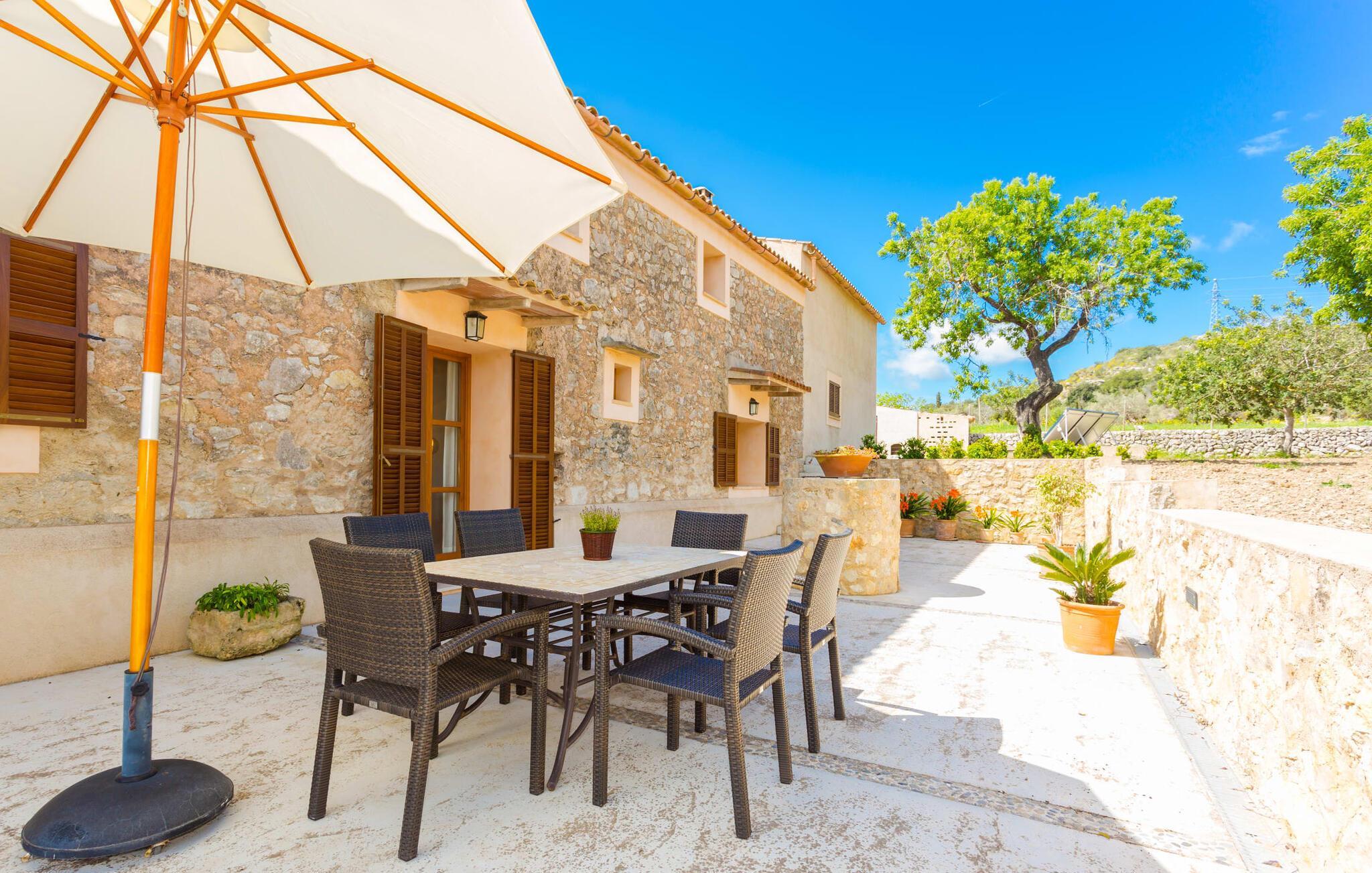 Villa "Els Clepes" er det perfekte sted for alle, der sætter pris på en traditionel stemning, men også ønsker at nyde oplevelsen af et teknisk veludstyret feriehus med faciliteter af høj kvalitet. Fred og afslapning er garanteret på denne enorme, afsondrede ejendom. Så snart du ankommer foran den to-etagers bygning med dens traditionelle murværk, vil du være spændt på at se, hvordan den ser ud inde og ude. Når du går rundt i huset, hvor den smukke, vidtstrakte ejendom folder sig ud for dine øjne, vil du bemærke mange mandel- og johannesbrødtræer samt nogle andre planter, der findes i regionen. Fra den brolagte terrasse er der kun få skridt over plænen til poolen. Det er omgivet på to sider af en træterrasse. Her kan du - måske med en kølig drink i hånden - finde en dejlig plads på en af de mange liggestole, der er til rådighed og bare slappe af og slappe af, mens du nyder udsigten. Simpelthen fantastisk - dette er den ultimative ferie! Grunden er også forstærket af en lille dam med guldfisk. Den indbyggede udendørsgrill er i eget overdækket område, sammen med vask og stor bordplade. Det er her, du vil tilberede den friske lokale mad, du køber på markedet, inden du griller den og nyder den – alt sammen ét sted. Mad, godt selskab og en vidunderlig udsigt er en selvfølge her. Du kan finde skygge under parasollerne, under taget af grillpladsen og ved det ekstra spisebord på nordsiden af huset. Husets stueetage har nogle flotte klinkegulve. I næsten alle rum er en væg i det mindste delvist beklædt med traditionelt murværk. Huset er perfekt placeret til at få mest muligt ud af sollyset indendørs, og alle rum fremstår lyse og venlige. Den store stue er smukt og komfortabelt indrettet. Opholdsstuen er indrettet mod fjernsynet og pejsen. Du kan slappe af her i timevis, uanset hvordan vejret er udenfor. I tilknytning til dette værelse er et køkken, der åbner ud til spisepladsen, med komplet udstyr, der ikke lader noget tilbage at ønske. Der er endnu et bord i spisestuen - endnu et godt sted til en god samtale i godt selskab! Yderligere værelser i kælderen omfatter to soveværelser med aircondition, et badeværelse og et ekstra toilet. På øverste etage finder du en anden stue med fjernsyn og yderligere tre soveværelser med aircondition, som er komfortable og smukt indrettede. De er ideelle til en afslappende søvn efter dagens eventyr. Alle badeværelser, både ovenpå og nedenunder, har moderne indretning, masser af vinduer og varm, skarp belysning. Tagterrassen byder på en vidunderlig udsigt over det fascinerende landskab omkring fincaen; Adgang sker via det største rum på øverste etage. Den nærmeste by, Son Servera, ligger fem minutter væk i bil. Den lille by Artà har nogle dejlige butikker og en middelalderfæstning og er bestemt et besøg værd. Hvis du leder efter variation, anbefaler vi en tur til Cala Ratjada, hvor du finder et godt udvalg af butikker, barer og natklubber. Villaen ligger ca. 200 m i luftlinje fra en landevej og byder på gode forbindelser til det lokale motorvejsnet. Den idylliske lille bugt Cala Torta har en bistro ved stranden, der serverer lækker, frisk fisk; Det er en kort køretur væk, kun 8 km bag Artà. Villaen "Els Clepes" ligger på en afsidesliggende ejendom i den østlige del af øen, kun få kilometer fra Artà. Strande og byer er nemme at nå herfra. Dette er et Fincallorca feriehus.