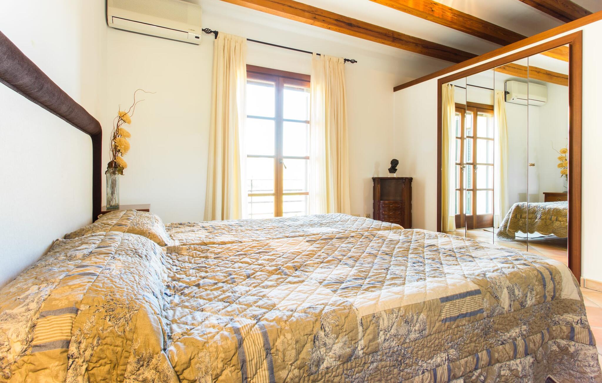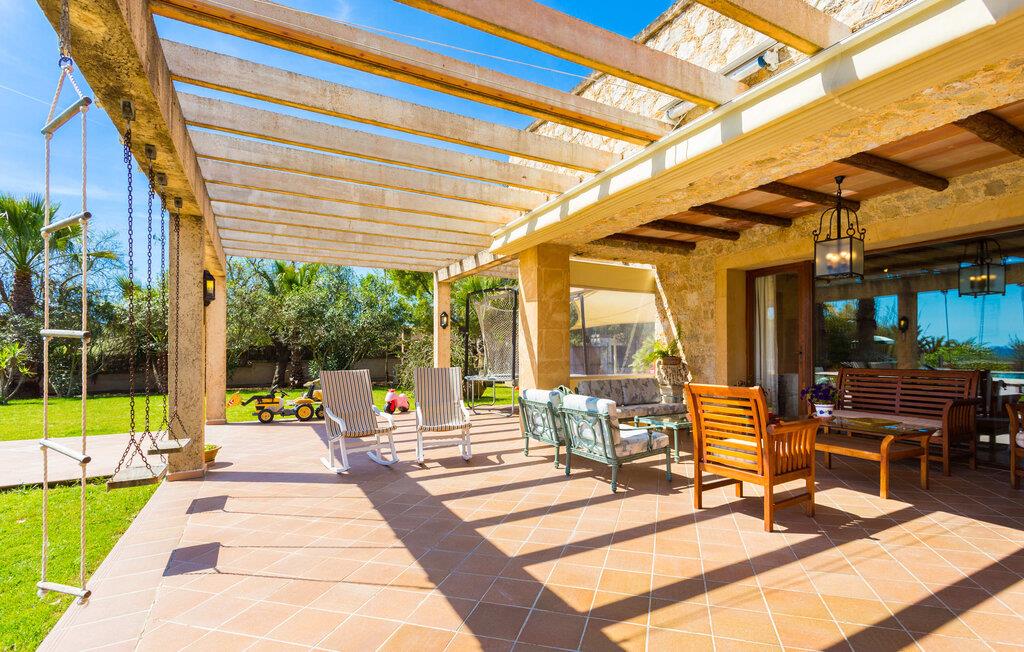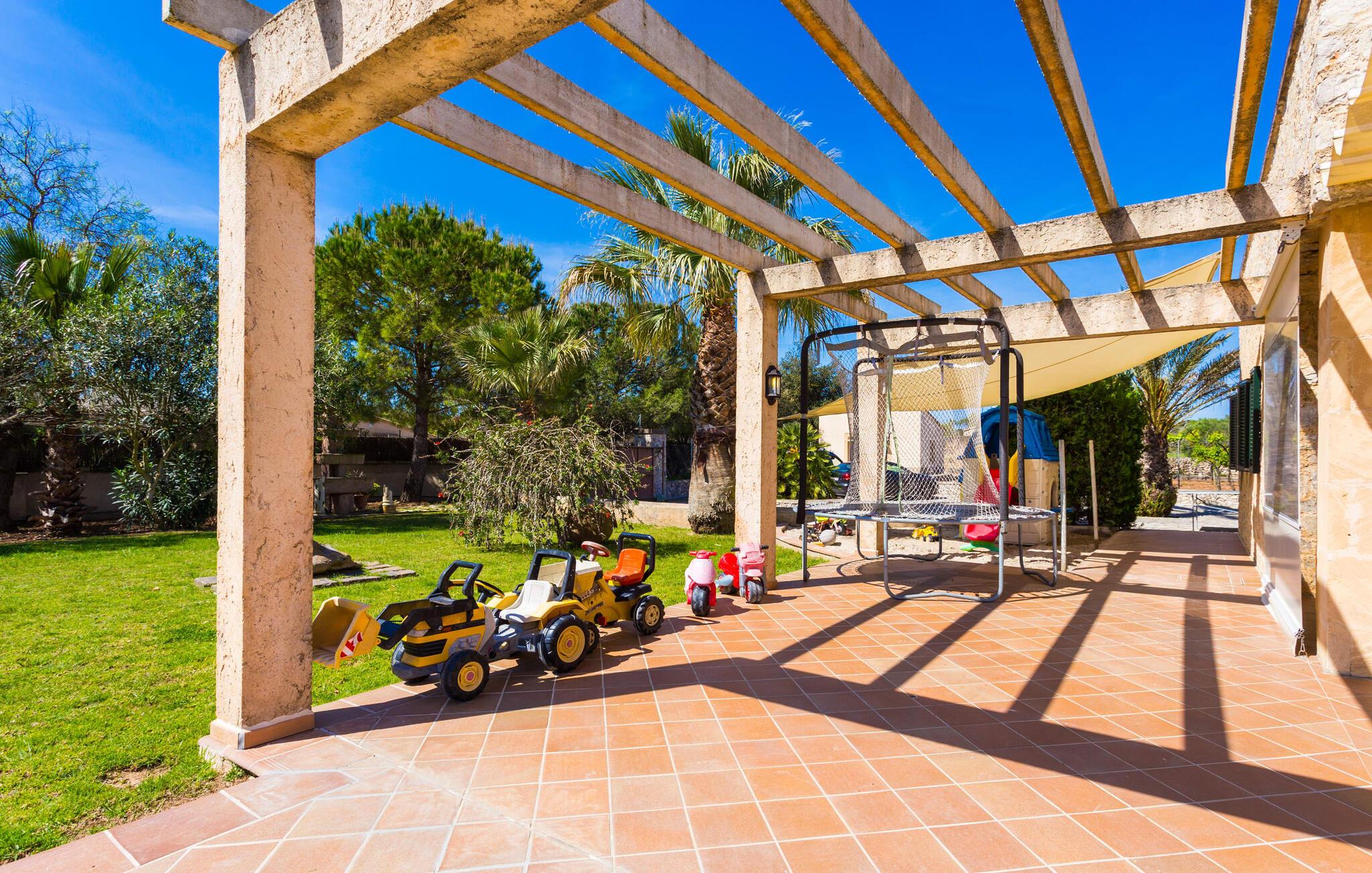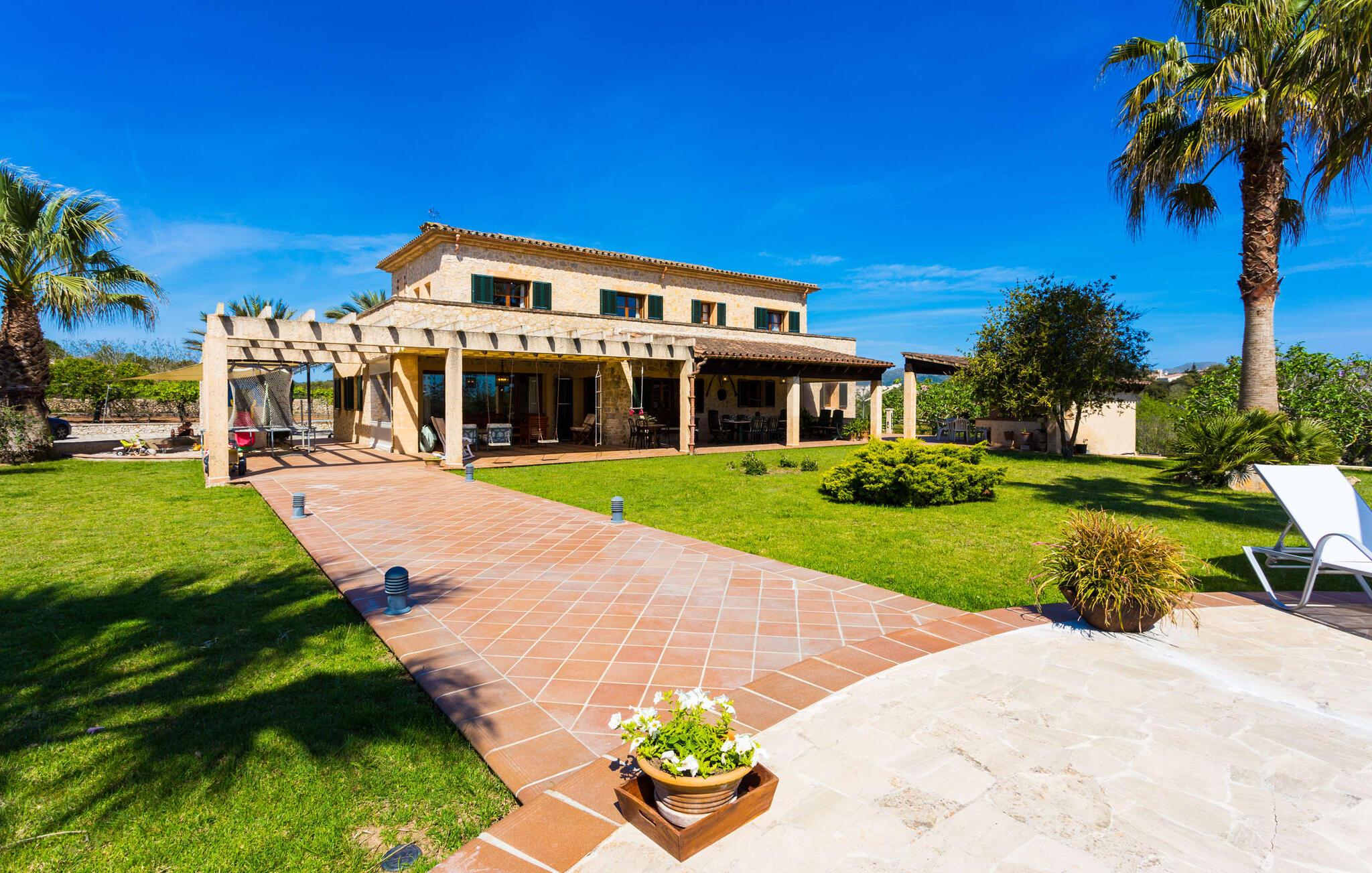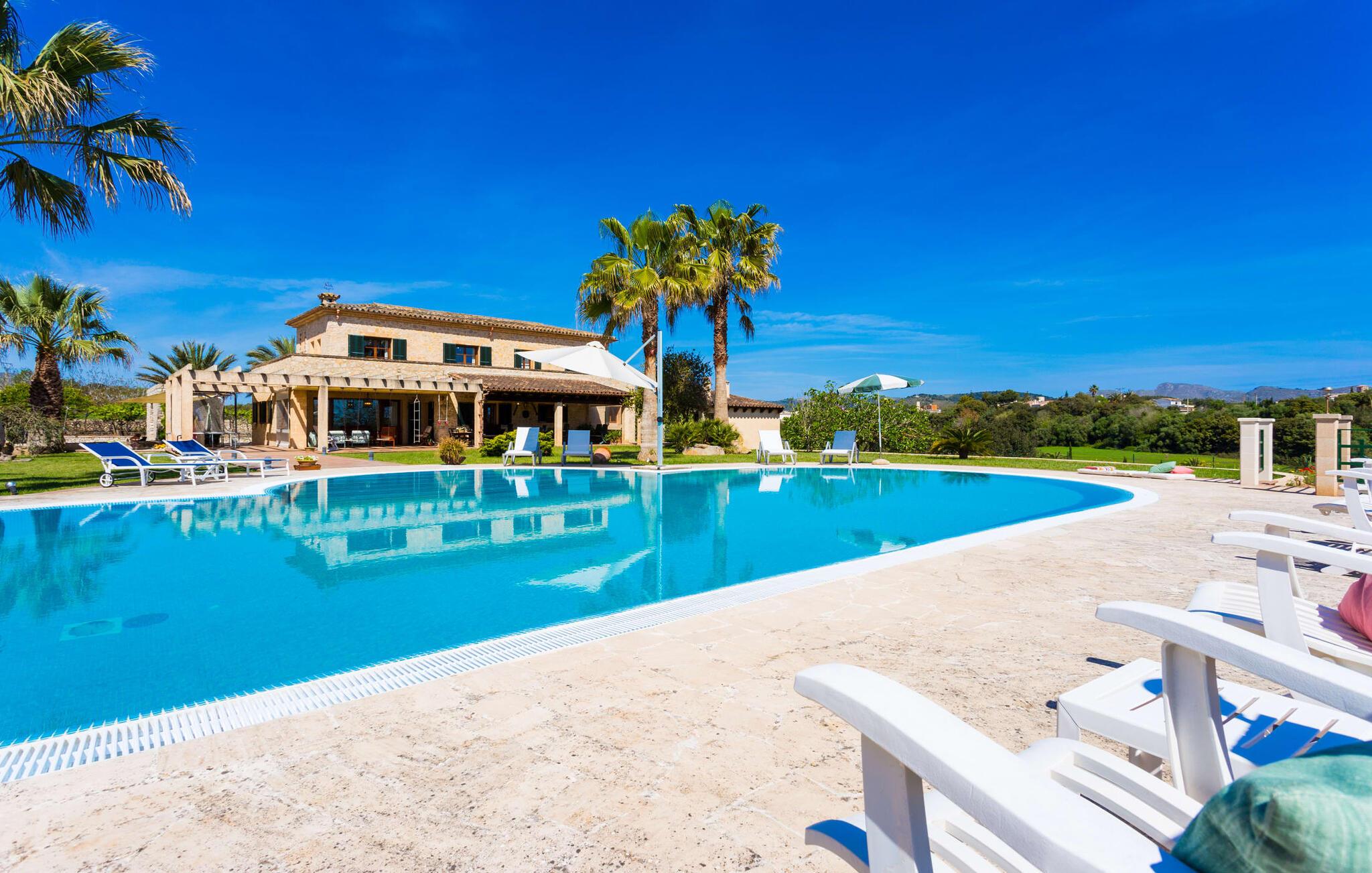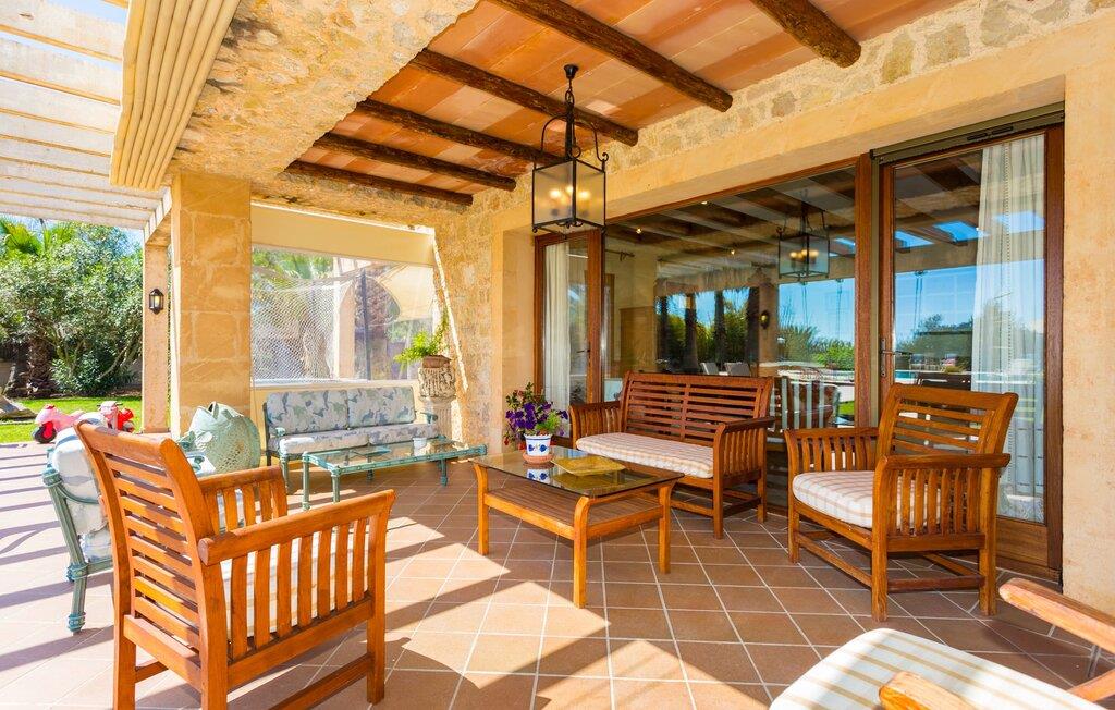 Når I nærmer jer fincaen "Els Mitjans", vil I straks bemærke de høje palmer, der giver de rolige omgivelser et tropisk præg. Den velholdte have har en stor græsplæne, der fører til den elegante, afrundede pool. Det er omgivet af en stor solterrasse med liggestole og tilbyder et perfekt sted at slappe af, svømme eller se børnene plaske rundt. Nyd en betagende udsigt over det bølgende landskab fra poolområdet og fordyb jer i den fredelige landlige atmosfære. Den store terrasse, der strækker sig over to sider af villaen, har to sofagrupper, to spiseborde og masser af plads til udendørs sjov med legetøj til børnene, en trampolin og et bordtennisbord. Til udendørs madlavning er der et skyggefuldt grillområde til rådighed for grillning af lokale råvarer. Til øjeblikke af afslapning er der parasoller og et glasoverdækket område med udtrækkelige parasoller. Indvendigt åbner stuen direkte ud til haven, med smagfuld indretning og pejs til hyggelige aftener. De mallorcanske træbjælker og rustikke fliser skaber en varm, indbydende atmosfære. Det moderne køkken er veludstyret, og spisebordet er kun få skridt væk. Tre soveværelser, herunder et på nederste etage med eget badeværelse, tilbyder komfort og moderne badeværelser. Soveværelserne ovenpå har adgang til tagterrassen med en vidunderlig udsigt. Villaen "Els Mitjans" ligger afsondret på en ejendom på den østlige del af øen, cirka en kilometer fra Artà, hvor et landmandsmarked finder sted om tirsdagen. Strande og byer i den østlige del af øen er nemme at nå herfra. Der er ikke langt til Cala Ratjada, og den velkendte, smukke bugt Cala Torta ligger kun 5 km væk.