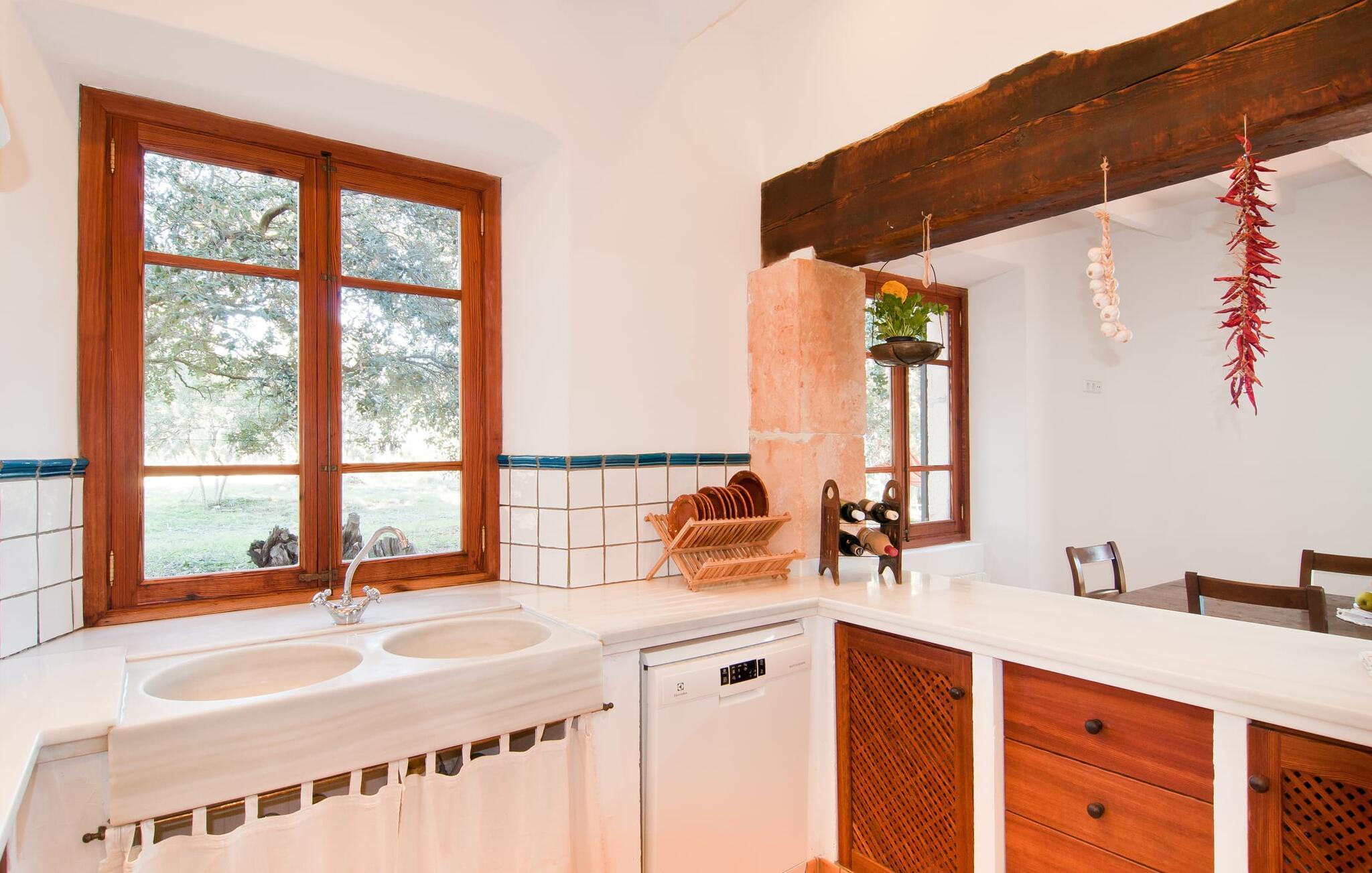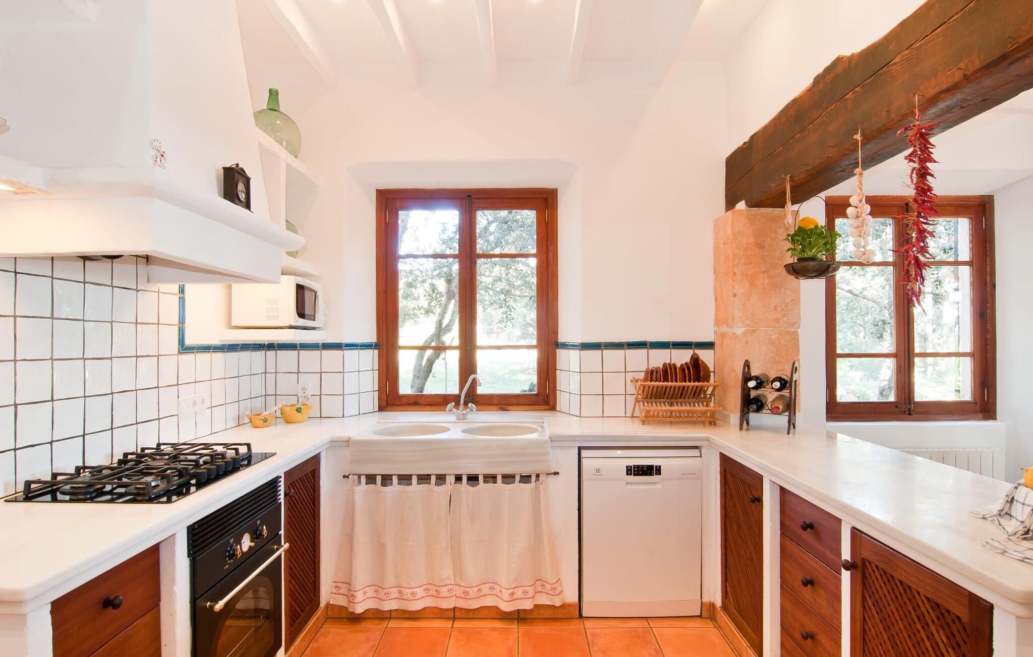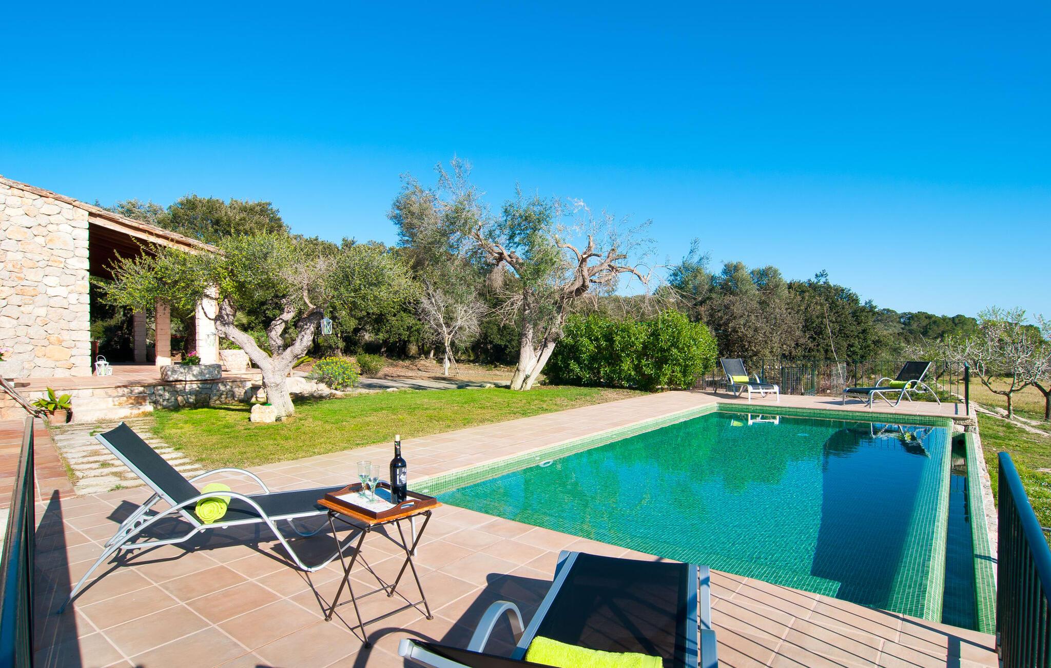 Har I altid drømt om at vågne op om morgenen i et herskabshus og starte dagen med en gåtur gennem landskabet? Så er I kommet til det rigtige sted i villaen “Els Nou Cortons”. Selvom havet næsten er inden for rækkevidde af kysten, og man oven i købet kan se det fra ejendommen, har man den skønne følelse af at kunne forkæle sig selv med en pause fra civilisationen – midt i appelsin- og citronplantagerne. Og alt dette uden at skulle give afkald på nogen bekvemmeligheder: foran jer ligger den turkise pool og hviler sig i morgensolen, og nu og da kruser vandoverfladen, når vinden skifter og bringer et frisk pust ind i dag. I bor omgivet af natur; Når I ser jer omkring, kan I se de frodige planters frodige planter og det knudrede træ fra de gamle træstammer. Der er endda en hængekøje bag huset, hvor I kan nyde solen gennem de svajende grene. Poolen er omgivet af en terrasse med liggestole, så I kan nyde dette særligt smukke sted og tage lidt fred og ro med jer hjem, når I går. Takket være grillhjørnet er jeres “ranch” naturligvis også ideel til ildsjæle grillaftener, hvor I kan afslutte dagen ved et bord under stjernehimlen med et romantisk glas rødvin. Store poolfester er forståeligt nok ikke tilladt på denne idylliske beliggenhed og ville unødigt forstyrre den fredelige natur. Bag naturstensvæggen er der en rummelig kaskade af hyggelige rum, der flyder ind i hinanden - den solide arkitektur skaber et særligt smagfuldt levende flair og sikrer samtidig hyggelige, hyggelige hjørner. Det gælder især inglenook pejsen, hvor I kan slappe af på elegante sofaer, mens pejsen knitrer søvnigt. Ved siden af i køkken-alrummet er søndagsstegen måske allerede ved at lave mad og fylder hele gulvet med fristende dufte. Den rustikke konstruktion med de fritlagte træbjælker gør, at I ikke et øjeblik glemmer, at I befinder jer i en stilfuld mallorcansk villa, som legende kombinerer denne stil med lysstyrken fra lyse trætoner. I stueetagen finder I to soveværelser og to badeværelser, mens overetagen udstråler teltagtig charme takket være lofterne til kip. Der er endnu et soveværelse med to enkeltsenge og det tredje badeværelse, så I ikke behøver at rejse langt om morgenen, når de morgenfriske gør klar. Et andet rum med et lille vindue står til rådighed for jer - måske til at opbevare gaver, som I tager med hjem fra jeres udforskninger. Den landlige beliggenhed garanterer jer en absolut rolig ferie - over en noget stenet skråning når I vejen, der fører jer til Son Servera på 2,3 km til ærinder eller til den livlige kystby Cala Millor på kun 4 km. Udover de mange muligheder for at tage ud, byder byen på adskillige fritidsaktiviteter, især for familier, og når de lokale delikatesser tilbydes på det ugentlige marked om torsdagen, er alderen ligegyldig. Den lange strand med fint, hvidt sand og blid adgang til havet er en fornøjelse, og den fremragende vandkvalitet er prikken over i'et. Placeringen af villaen på øen er også strategisk ideel: på kun 5 minutter kan I nå den lille landsby Costa de los Pinos. Fantastiske shoppingmuligheder findes i Manacor (17 km). Tingene er meget roligere i den idylliske by Artà (18 km), hvor den maleriske gågade er særdeles velegnet til slentreture. Sidst, men ikke mindst, kan I kigge efter sportslige udfordringer på Pula golfbane, kun 8,5 km væk. Villaen "Els Nou Cortons" imponerer med sin utraditionelle, rustikke arkitektur og den fantastiske beliggenhed: På den ene side en komplet landlig idyl midt mellem appelsin- og citrontræer, på den anden side kun 4 km fra Cala Millor, fuld af det høje liv og de perfekte forhold Tilbring afslappende dage på stranden. Havet er udsigten! Der er kun omkring 9 km til Costa de los Pinos, hvis I vil nyde et mere afsondret sted ved havet. Palma de Mallorca lufthavn ligger 67 kilometer væk.
