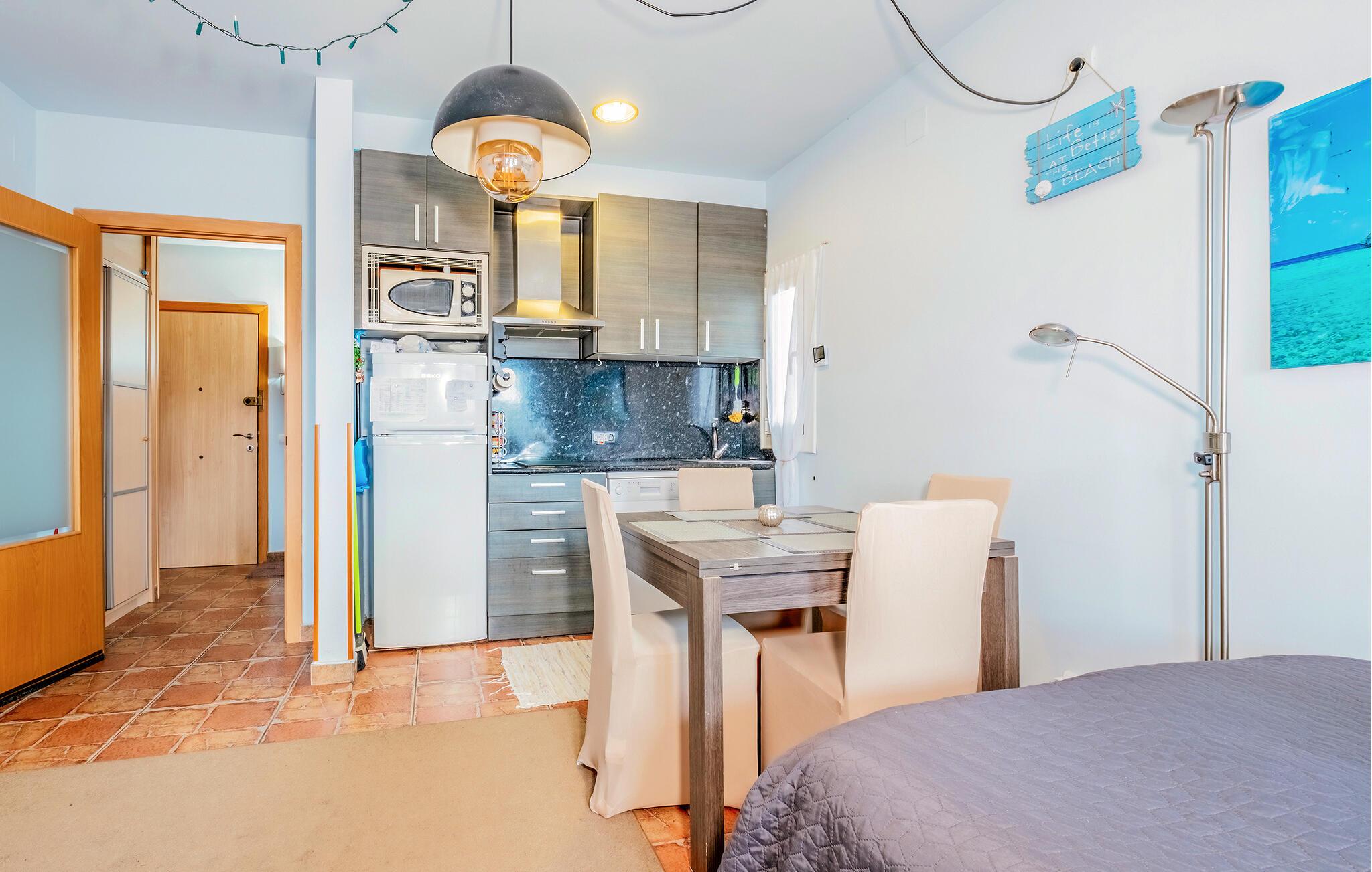 Denne ferielejlighed i Empuriabrava er det ideelle udgangspunkt for mange skønne udflugter i jeres ferieregion. Her finder I mange dejlige strande og en lang række spændende kulturelle attraktioner. Den hyggelige, kompakte lejlighed ligger i en af de smukkeste kystbyer i Spanien. Begynd jeres feriedage med en lækker morgenmad i det veludstyrede køkken og nyd dagens måltider ved det tilstødende spisebord. I kan også tilberede små snacks til jeres udflugter i køkkenet.