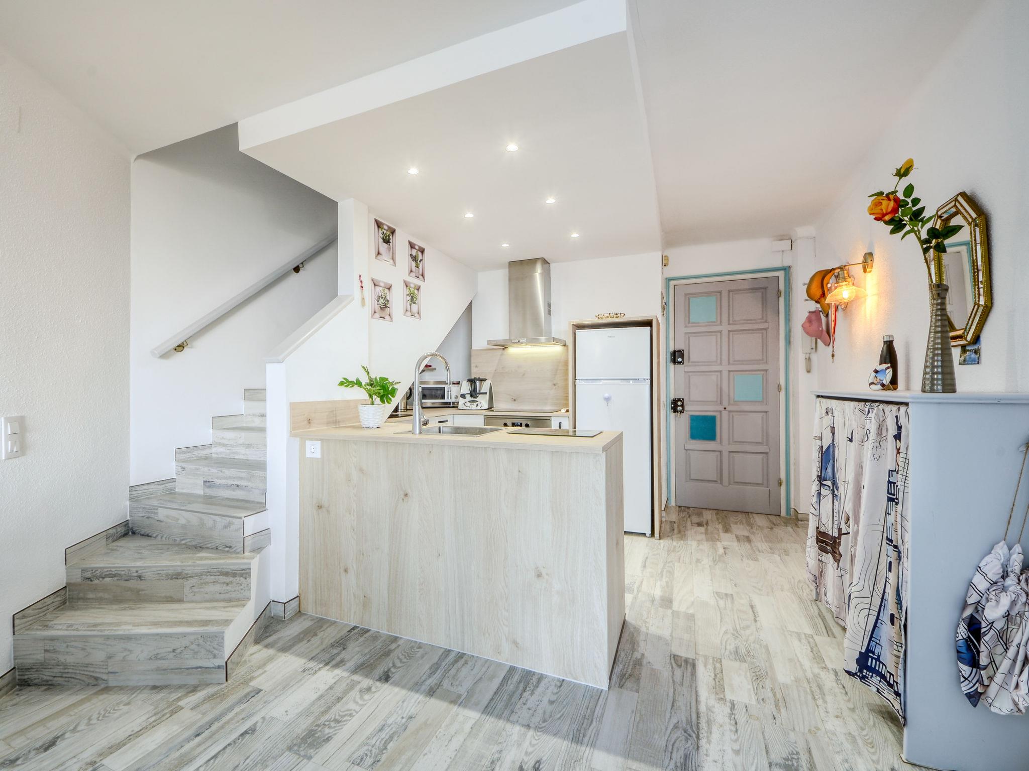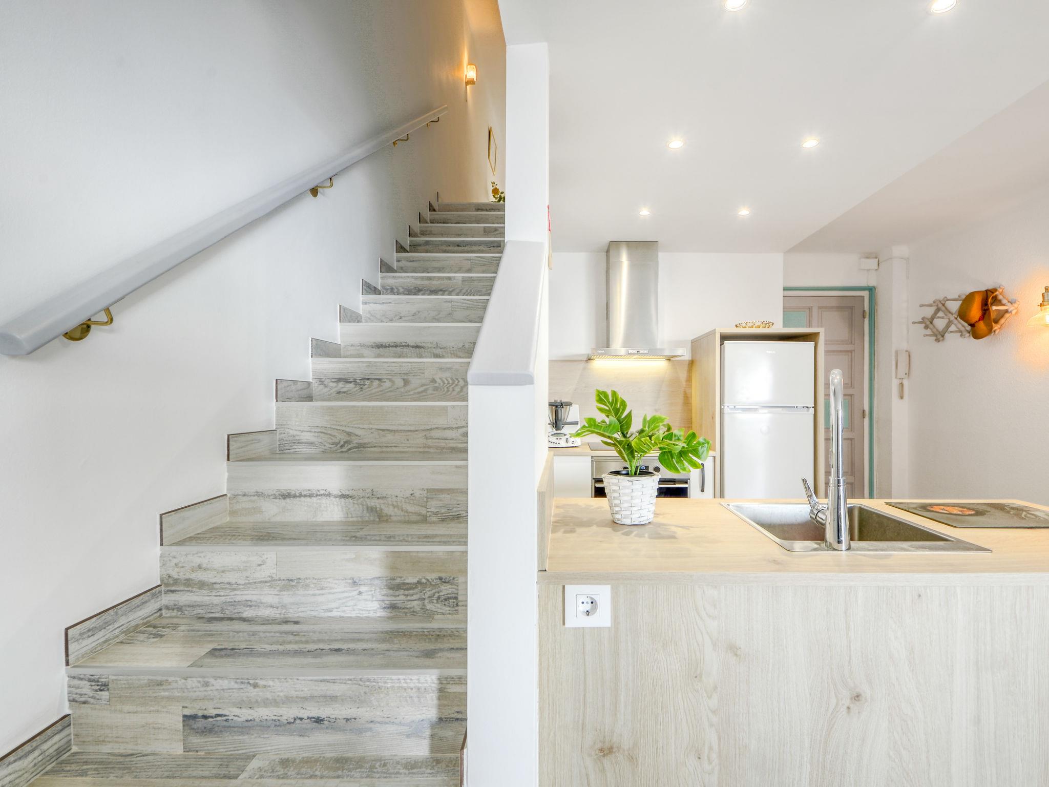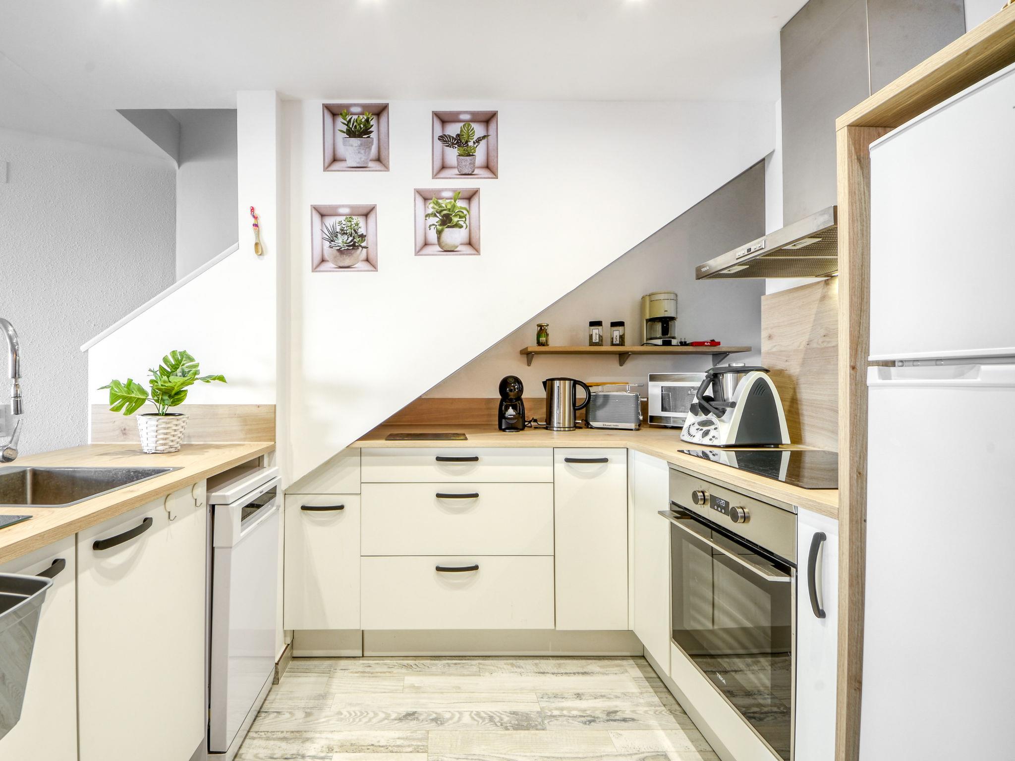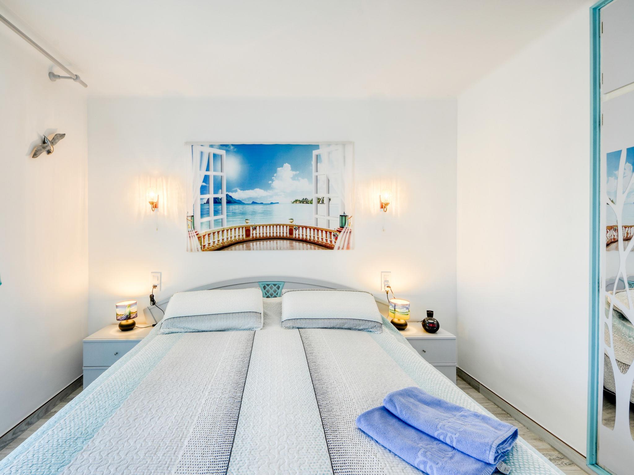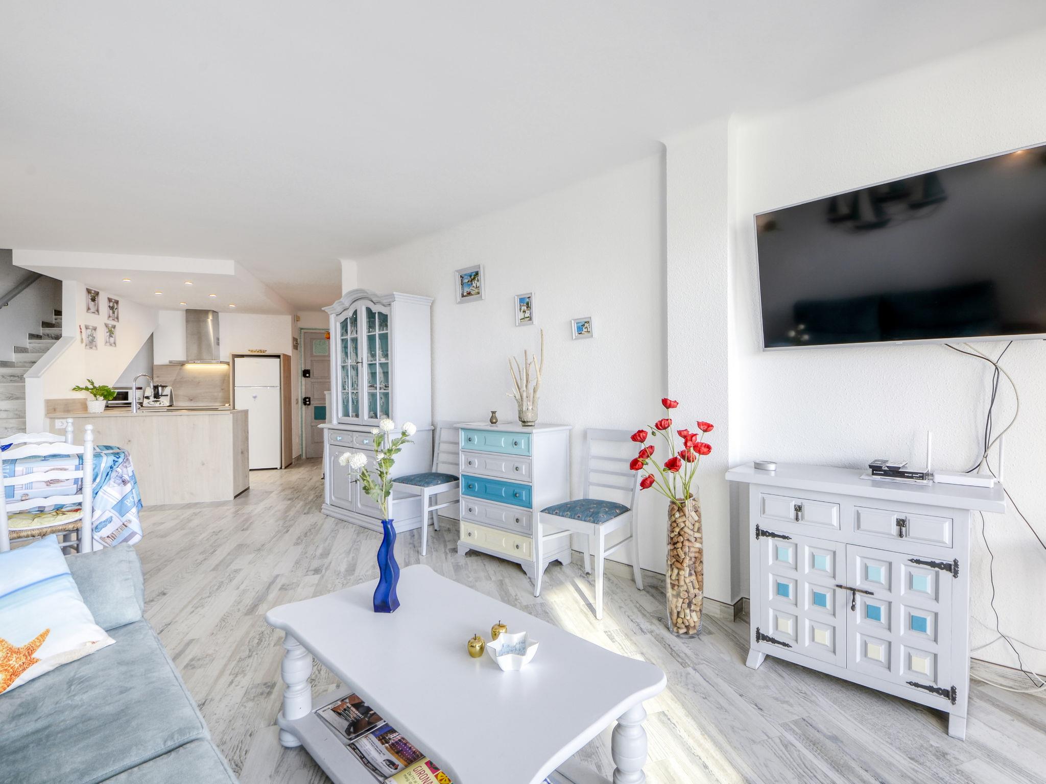 2-room maisonette 63 m2 on 2 levels. Bright, comfortable furnishings: living/dining room with 1 double sofabed (140 cm, length 190 cm), dining table, satellite TV and digital TV (flat screen), air conditioning and forced-air heating. Exit to the terrace, south facing position and west facing position. Small, open kitchen (oven, dishwasher, 3 induction hot plates, kettle, microwave, freezer, electric coffee machine). Upper floor: 1 room with 1 french bed (160 cm, length 190 cm), air conditioning and forced-air heating. Exit to the balcony, north facing position. Shower/WC. Terrace 10 m2, south facing position and west facing position terrace 6 m2, north facing position. Terrace furniture. Panoramic view of the sea, the mountains and the canal. Facilities: washing machine, iron, hair dryer. Internet (WiFi, free). Please note: non-smokers only. TV only FR, ES. HUTG-061182 // Reg. Nr.: ESFCTU00001702000013009500000000000000000HUTG-0611829