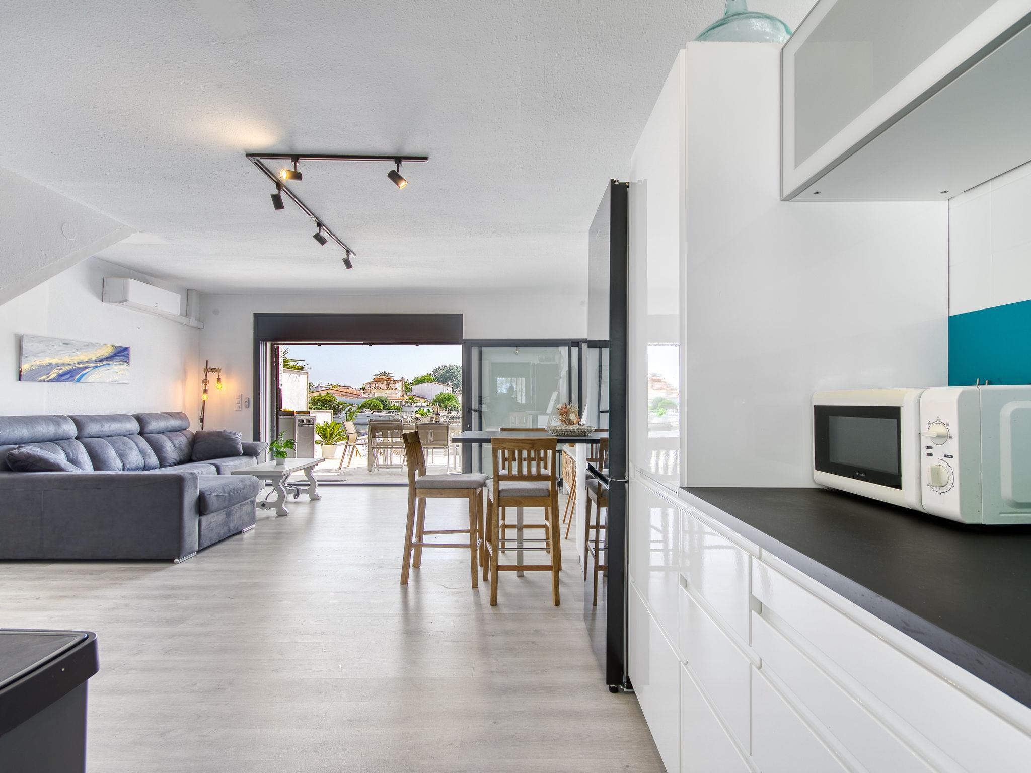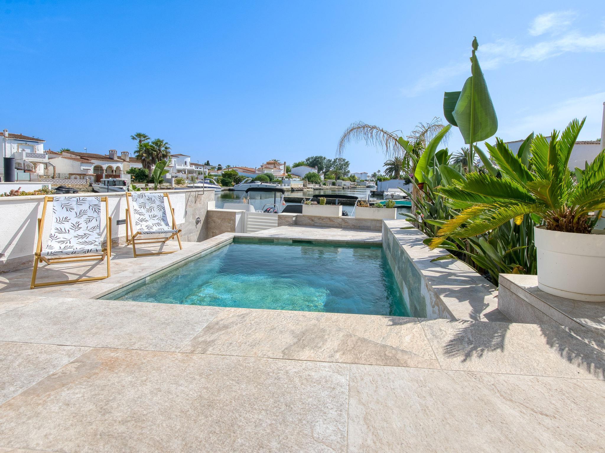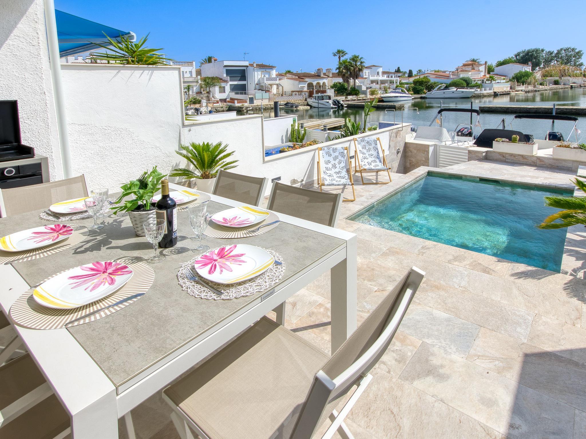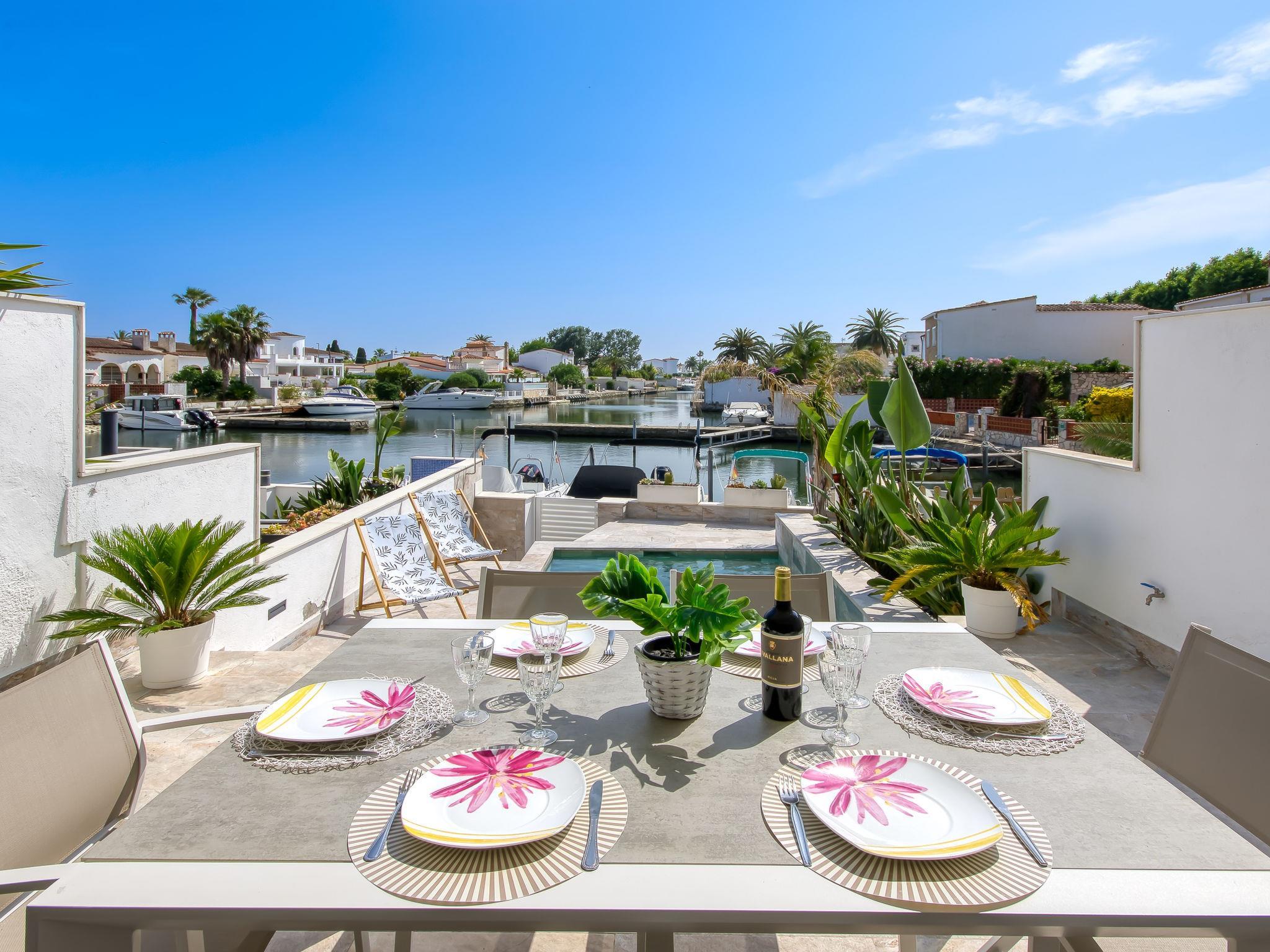 Casa al canal: Beautiful, comfortable terraced house "Port Llobregat", 2 storeys, renovated in 2025. In the district of Llobregat 2.5 km from the centre of Empuriabrava, in a quiet, sunny position residential area (villas), 1.7 km from the sea, 1.7 km from the beach, directly by the canal. Private: swimming pool (3 x 3 m, depth 110 - 150 cm, seasonal availability: 01.Jan. - 31.Dec.). Outdoor shower, terrace, garden furniture. Shop 1.5 km, grocery 1.5 km, supermarket 2 km, restaurant 1.5 km, bar 1.5 km, bicycle rental 2.7 km, bus stop "Empuriabrava" 2 km, railway station "Figueres Renfe Adif" 15 km, sandy beach "La Rubina" 1.7 km. Sports harbour 2 km, golf course (18 hole) 15 km, surf school 2.7 km, sailing school 2.7 km, tennis 1 km, minigolf 1.4 km, riding stable 2 km, walking paths from the house, cycle lane 25 m. Nearby attractions: Centro paracaidismo y túnel del viento 1 km, Parque Acuático Roses 6 km, Museo Dalí Figueres 15 km, Castillo de Perelada 12 km, Ruïnas de St. Martí de Empúries 21 km, Cadaques y Cap de Creus 21 km. Please note: no lift. Groups of teenagers on request only. The keys‘ handover takes place by the agency Interhome in Empuriabrava.