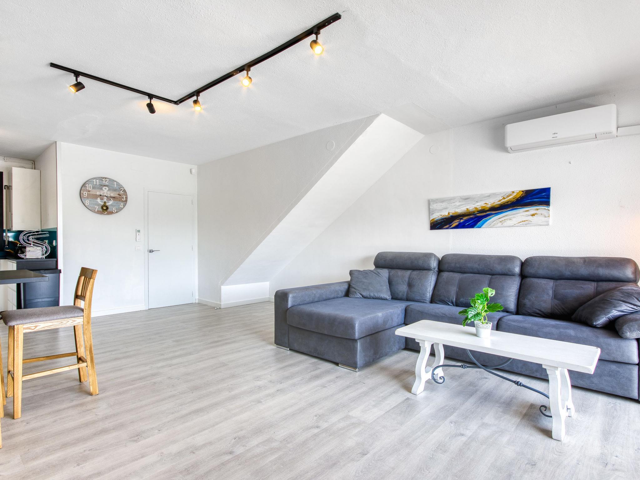 4-room terraced house 82 m2 on 2 levels. Object suitable for 4 adults + 4 children. Bright, partly renovated in 2025, comfortable and modern furnishings: living/dining room with dining table, satellite TV, air conditioning and forced-air heating. Exit to the terrace, to the swimming pool, south facing position and west facing position. Kitchen (dishwasher, 2 induction hot plates, toaster, kettle, microwave, freezer, electric coffee machine, Capsules for coffee machine (Nespresso) extra). Sep. WC. Upper floor: 1 room with 1 french bed (140 cm, length 190 cm), air conditioning and forced-air heating. 1 room with 1 french bed (140 cm, length 190 cm), air conditioning and forced-air heating. 1 children's room with 2 x 2 bunk beds (90 cm, length 190 cm), air conditioning and forced-air heating. Shower/WC, double hand-basin. Small terrace. Terrace furniture. Beautiful view of the canal. Facilities: washing machine, iron, hair dryer. Internet (WiFi, free). Please note: non-smoking house. TV only FR, ES. No lift. HUTG-012766 // Reg. Nr.: ESFCTU00001702000011120900000000000000000HUTG-0127661