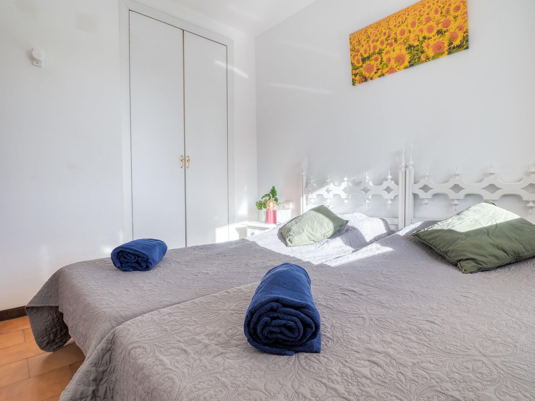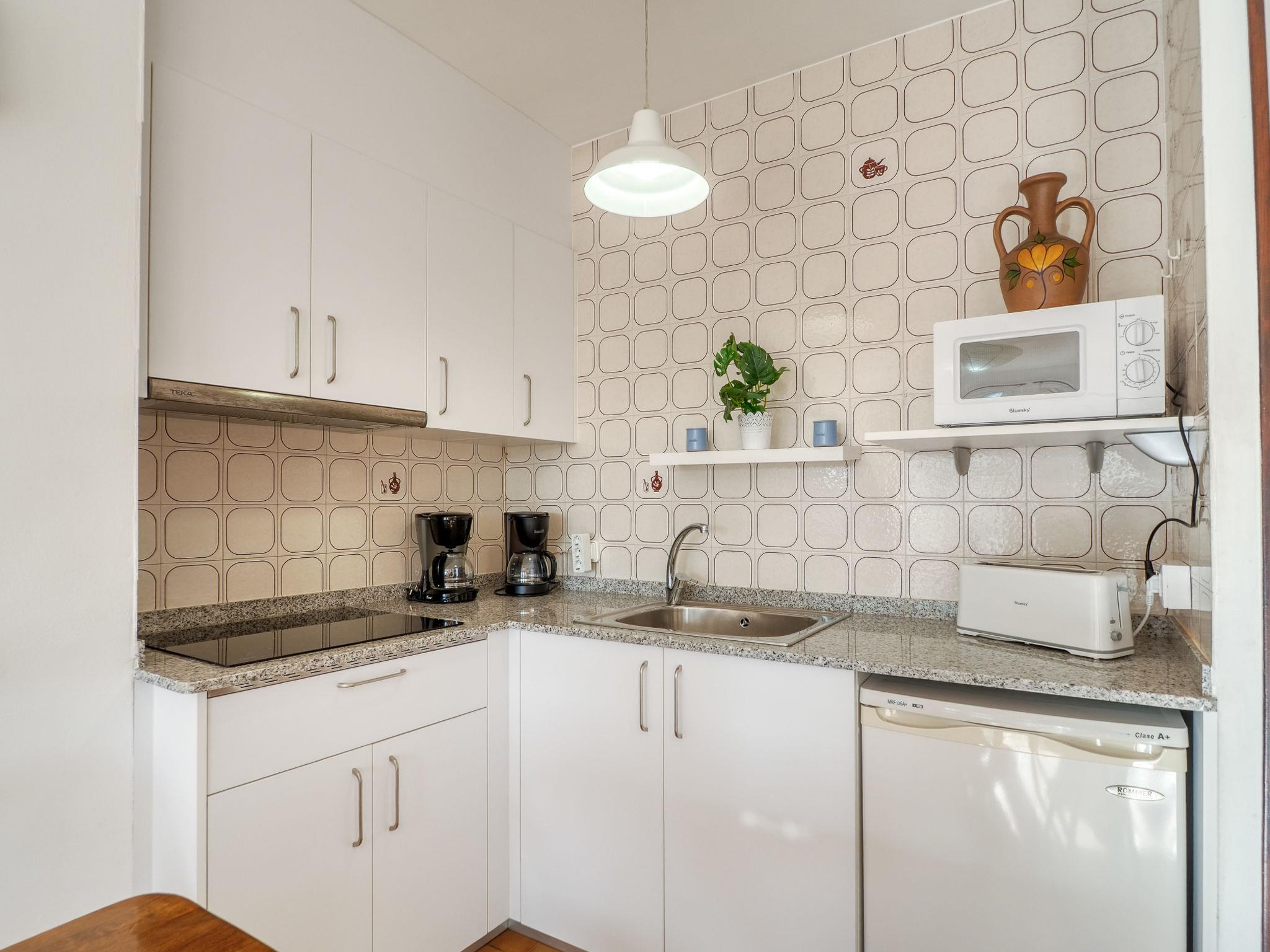 2-room apartment 40 m2. Bright, comfortable and cosy furnishings: living/dining room with 1 double sofabed (1 x 140 cm, length 180 cm), dining table, air conditioning and forced-air heating. Exit to the balcony. 1 room with 2 beds (90 cm, length 190 cm). Open kitchen (3 ceramic glass hob hotplates, toaster, kettle, microwave, electric coffee machine). Bath/WC. Small balcony. Balcony furniture. View of the garden. Facilities: washing machine, iron, hair dryer. Internet (WiFi, free). Please note: non-smokers only. TV only FR. No lift. HUTG-028476 // Reg. Nr.: ESFCTU00001702000044229700000000000000HUTG026476410