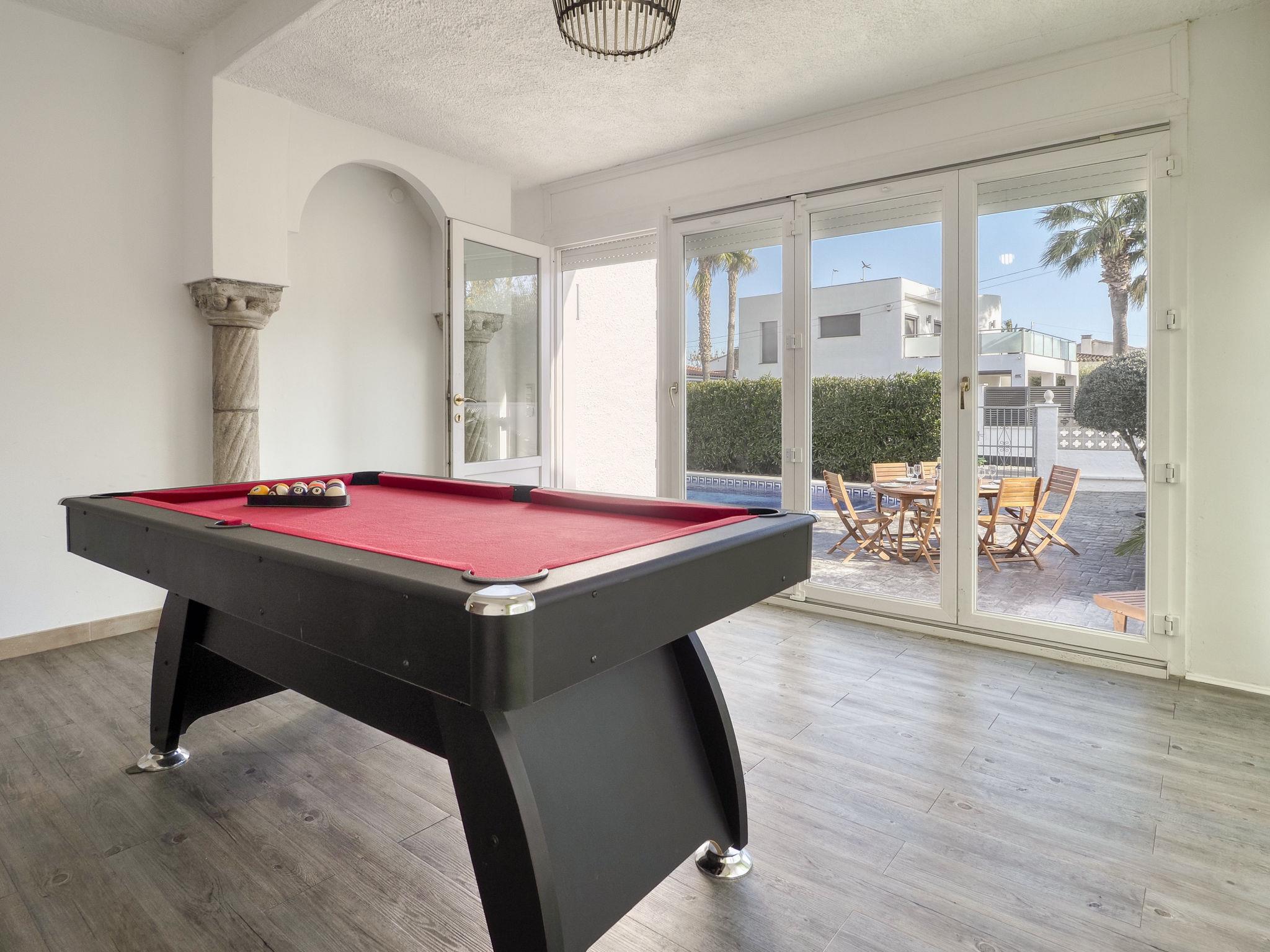 Modern, cosy, comfortable single-family house "Montgri". In the district of Montgri 900 m from the centre of Empuriabrava, in a quiet, sunny position residential area (villas), traffic calmed area, 1 km from the sea, 1 km from the beach, 500 m from the canal, 200 m from the river. Private: property 400 m2 (fenced), wildlife garden, swimming pool (8 x 4 m, depth 160 cm, seasonal availability: 30.Apr. - 30.Oct.). Outdoor shower, terrace, garden furniture, barbecue. In the house: billiard table. Parking on the premises. Grocery 300 m, supermarket 300 m, restaurant 200 m, bar 200 m, bakery 300 m, café, internet café, bus stop 2.7 km, sandy beach "Empuriabrava" 1 km. Sports harbour 1.5 km, golf course (18 hole) 13 km, tennis 2 km, minigolf 1.5 km, walking paths from the house, cycle lane 240 m. Nearby attractions: Túnel del Viento y aeródromo Skydive 2 km, Parque Acuático Roses 6 km, Museo Dalí Figueres 15 km, Casino y Festival de Perelada 12 km, Ruinas St. Martí Empuries 21 km, Monasterio de Sant Pere de Rodes 23 km. The keys‘ handover takes place by the agency Interhome in Empuriabrava.