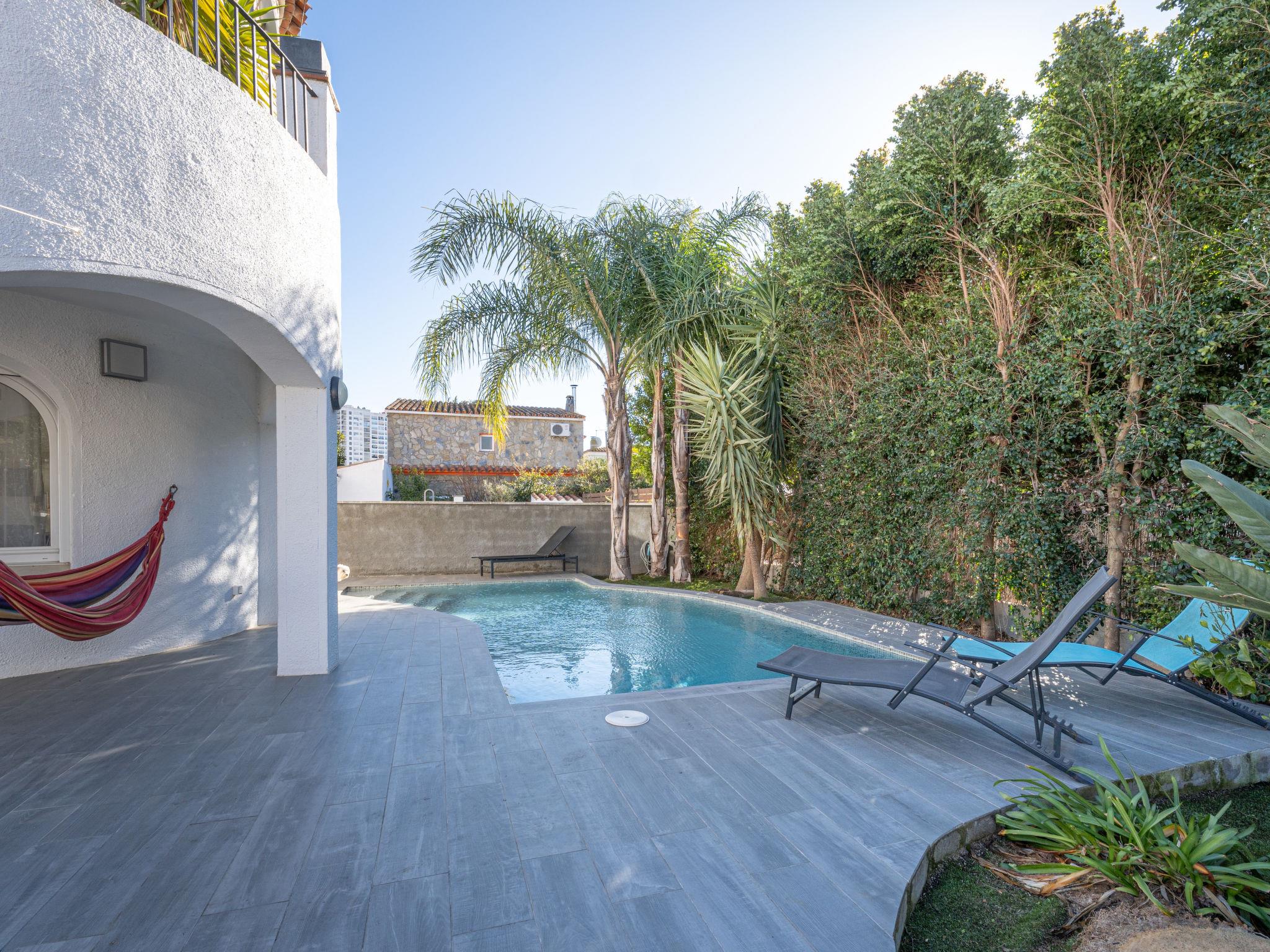 Modern, cosy, comfortable 2-family house "Dreams". In the district of Montgri, 450 m from the centre of Empuriabrava, in a quiet, sunny position residential area (villas), traffic calmed area, 800 m from the sea, from the beach, 300 m from the river, in a cul-de-sac. Private: property (fenced), beautiful, well-kept garden with wildlife garden, swimming pool angular (3 x 6 m, depth 110 - 140 cm, seasonal availability: 01.Apr. - 30.Oct.) with internal staircase. Outdoor shower, pergola, terrace, garden furniture, barbecue. In the house: washing machine. Parking on the premises. Shop, grocery 300 m, supermarket 1 km, shopping centre 800 m, restaurant, bar, bakery 300 m, café 300 m, pedestrian zone 200 m, bicycle rental 500 m, bus stop 300 m, sandy beach "Empuriabrava" 800 m. Sports harbour 1 km, golf course (18 hole) 15 km, surf school 800 m, sailing school, tennis 2 km, minigolf 800 m, walking paths from the house 100 m, cycle lane. Nearby attractions: Túnel del viento y skydive Empuriabrava 2 km, Parque Acuático Roses 8 km, Casino y festival de Peralada 12 km, Museo Dalí Figueres 15 km, Ruïnes de Empuries 21 km, Monasterio de Sant Pere de Rodes 23 km. Hiking paths: Cadaqués / Cap de Creus 20 km. The owner does not accept any youth groups. The keys‘ handover takes place by the agency Interhome in Empuriabrava.