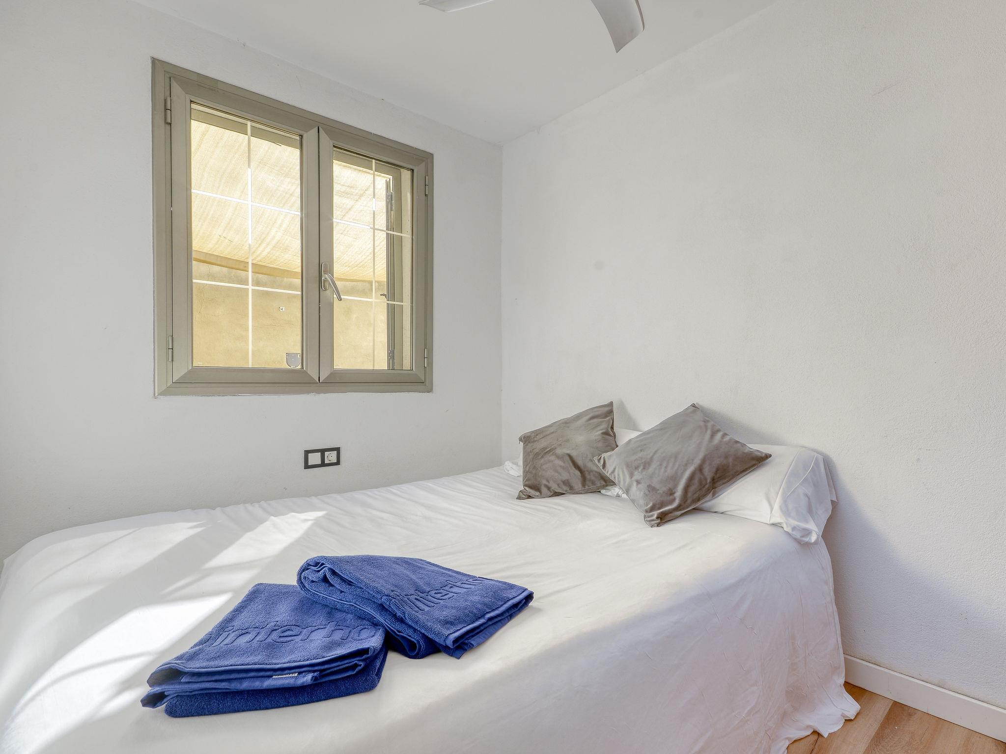 5-room terraced house on 2 levels. Spacious, comfortable furnishings: living/dining room with digital TV and flat screen. Exit to the terrace, to the swimming pool. 1 room with 1 french bed (150 cm, length 190 cm). Small kitchen (dishwasher, 3 induction hot plates, toaster, kettle, microwave, electric coffee machine, Capsules for coffee machine (dolce gusto) extra). Shower/WC. Upper floor: 1 room with 1 french bed (150 cm, length 190 cm). 1 room with 1 french bed (150 cm, length 190 cm). 1 room with 1 french bed (150 cm, length 190 cm). Bath/WC. Large terrace 90 m2, porch. Terrace furniture, barbecue, deck chairs. View of the canal. Facilities: washing machine, iron, hair dryer. Internet (WiFi, free). Please note: non-smoking house. Maximum 1 pet/ dog allowed. TV only ES. No lift. House without mooring. HUTG-066813