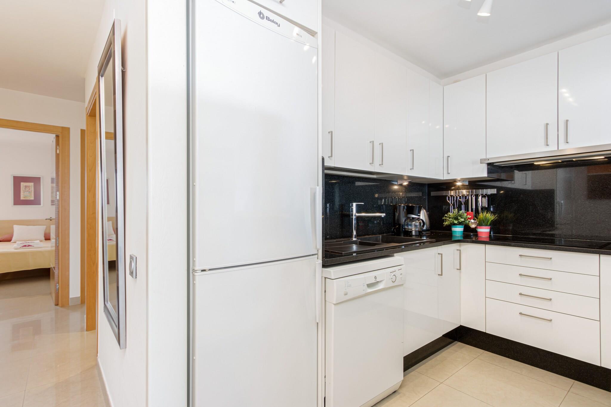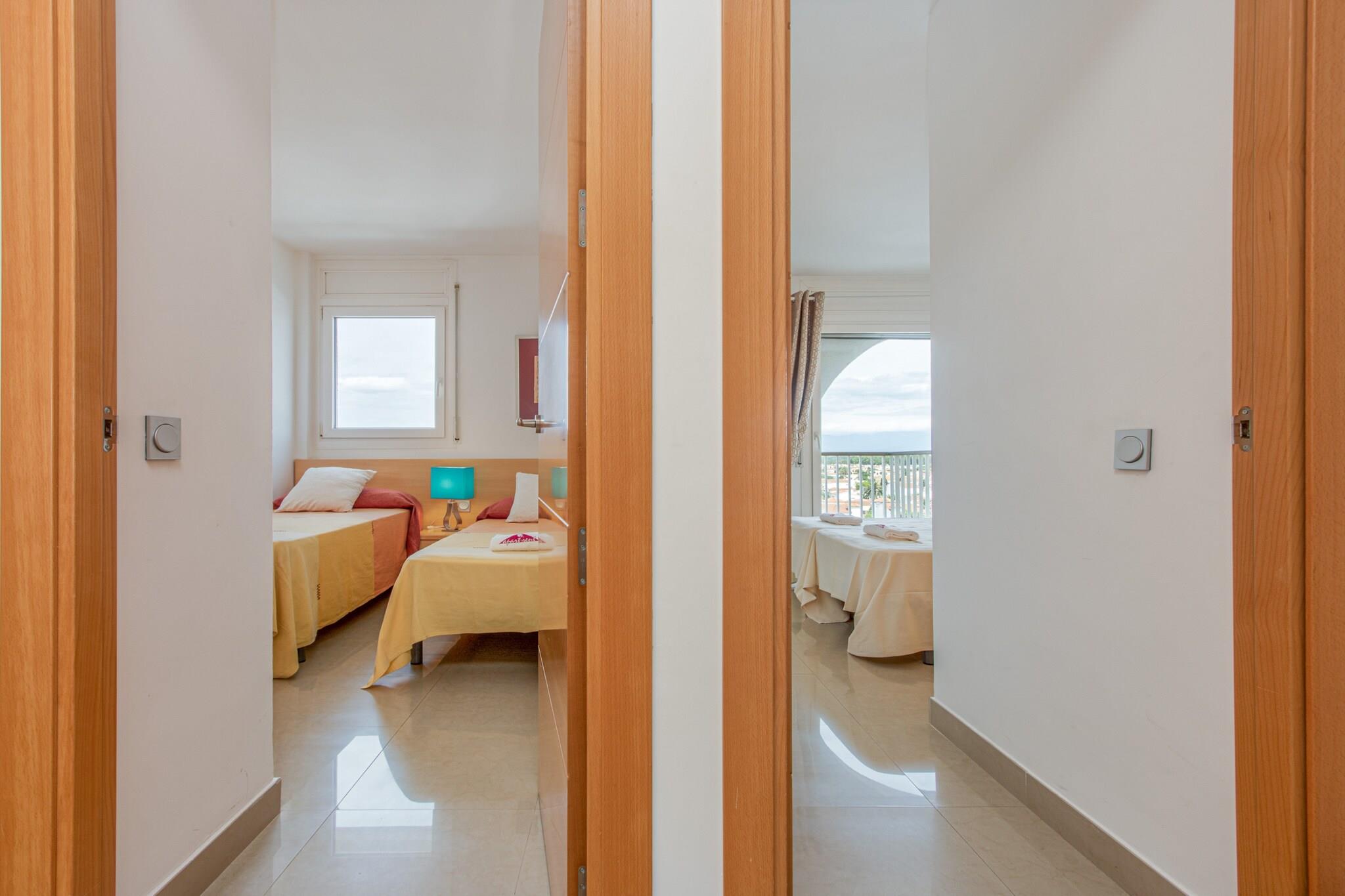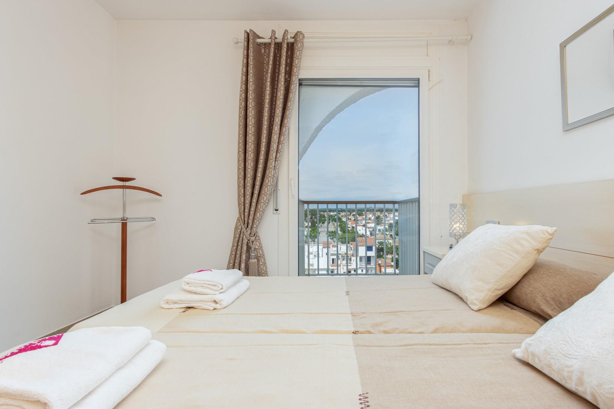 Denne rummelige lejlighed med 3 soveværelser i det centrale Empuriabrava tilbyder et komfortabelt og stilfuldt tilflugtssted for op til 6 gæster. Lejligheden ligger på 5. sal med elevatoradgang og har to soveværelser på stueetagen og et soveværelse ovenpå, alle med hyggelige sovepladser. Gæsterne kan slappe af på en stor privat terrasse med udsigt over både kanalen og havet. Lejligheden har aircondition i stuen, Smart TV med satellitkanaler, Wi-Fi og overdækket parkering i samme bygning, ideelt for familier, der søger et moderne ophold nær kysten. Lejligheden har en perfekt beliggenhed kun 1 km fra Empuriabravas sandstrand og inden for 600 m af lokale butikker og restauranter. Det er en god base for at udforske Costa Brava. Nærliggende attraktioner omfatter vandlandet Aquabrava (8 km), golfbanen Peralada (16 km) og de kulturelle seværdigheder i Figueres, hjemsted for Dalí-museet, kun 20 km væk. For nem transport ligger Girona Lufthavn 65 km væk, og AVE/TGV-togstationen i Figueres forbinder dig med større byer som Barcelona. Det fuldt udstyrede åbne køkken har keramisk kogeplade, køleskab, ovn, mikrobølgeovn, opvaskemaskine, vaskemaskine og alt nødvendigt køkkenudstyr til hjemmelavede måltider. Yderligere bekvemmeligheder omfatter varme, strygejern og elkedel. Bemærk venligst: Ungdomsgrupper og kæledyr er ikke tilladt. Slutrengøring og valgfrie ekstraydelser som sengelinned og håndklæder er tilgængelige mod et tillægsgebyr. Turistskat er ikke inkluderet i prisen.