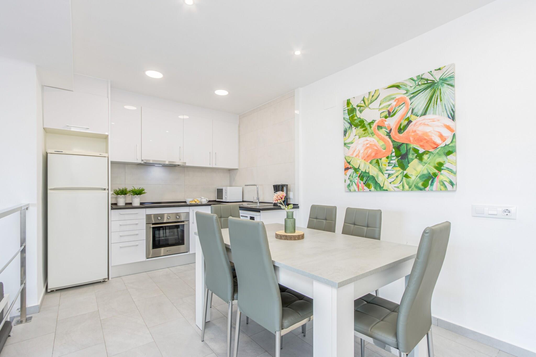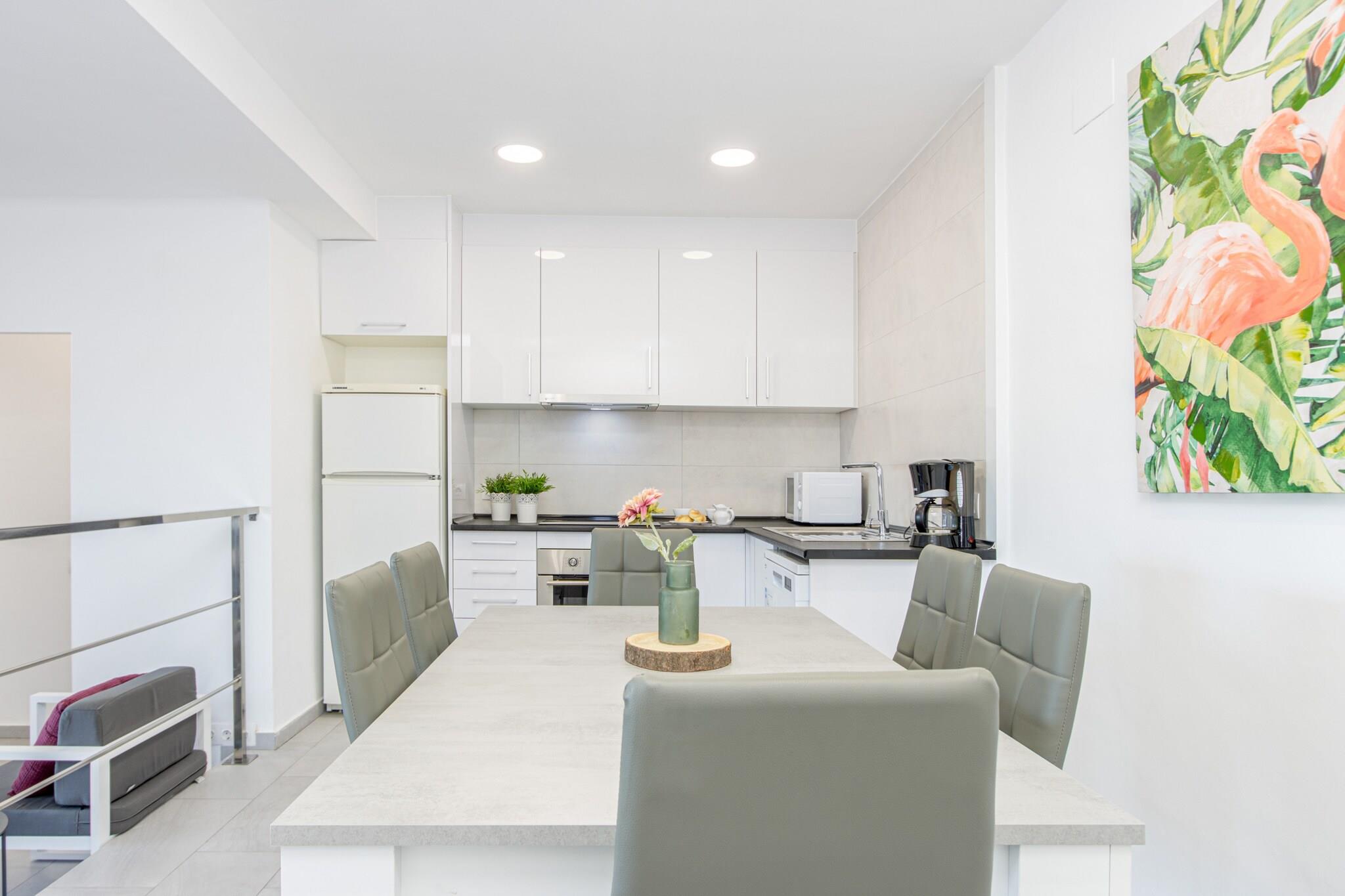 På 2. etage: (åbent køkken(elkedel, brødrister, kaffemaskine, ovn, mikrobølgeovn, opvaskemaskine , køleskab, fryser, ), stue / spisestue(Fjernsyn, spisebord, sofahjørne), soveværelse(enkeltseng, enkeltseng), soveværelse(enkeltseng, enkeltseng), soveværelse(dobbeltseng), badeværelse(bruser), badeværelse(bruser)) Internetadgang, Havemøbler, vaskemaskine, klimaanlæg, terrasse, swimmingpool(deles med andre gæster), strygejern, luft til luft-varmepumpe